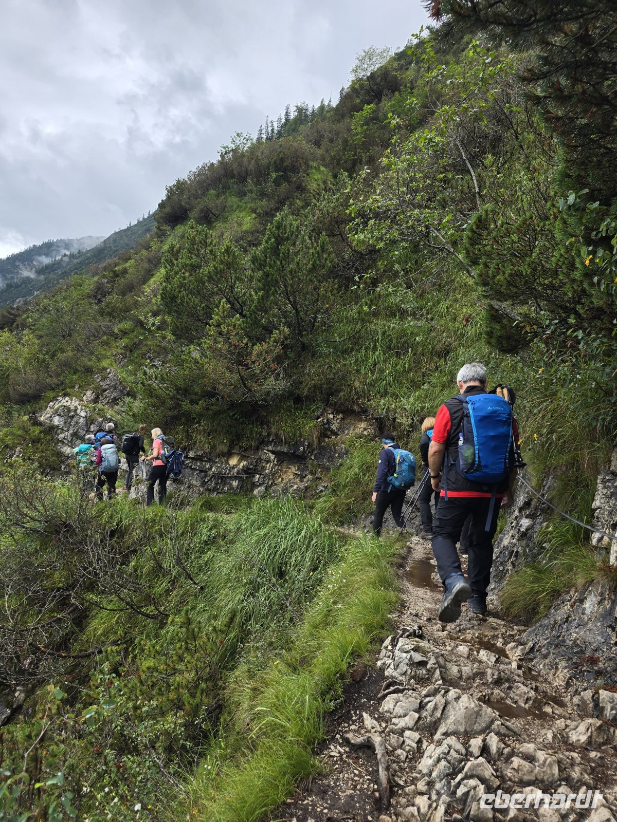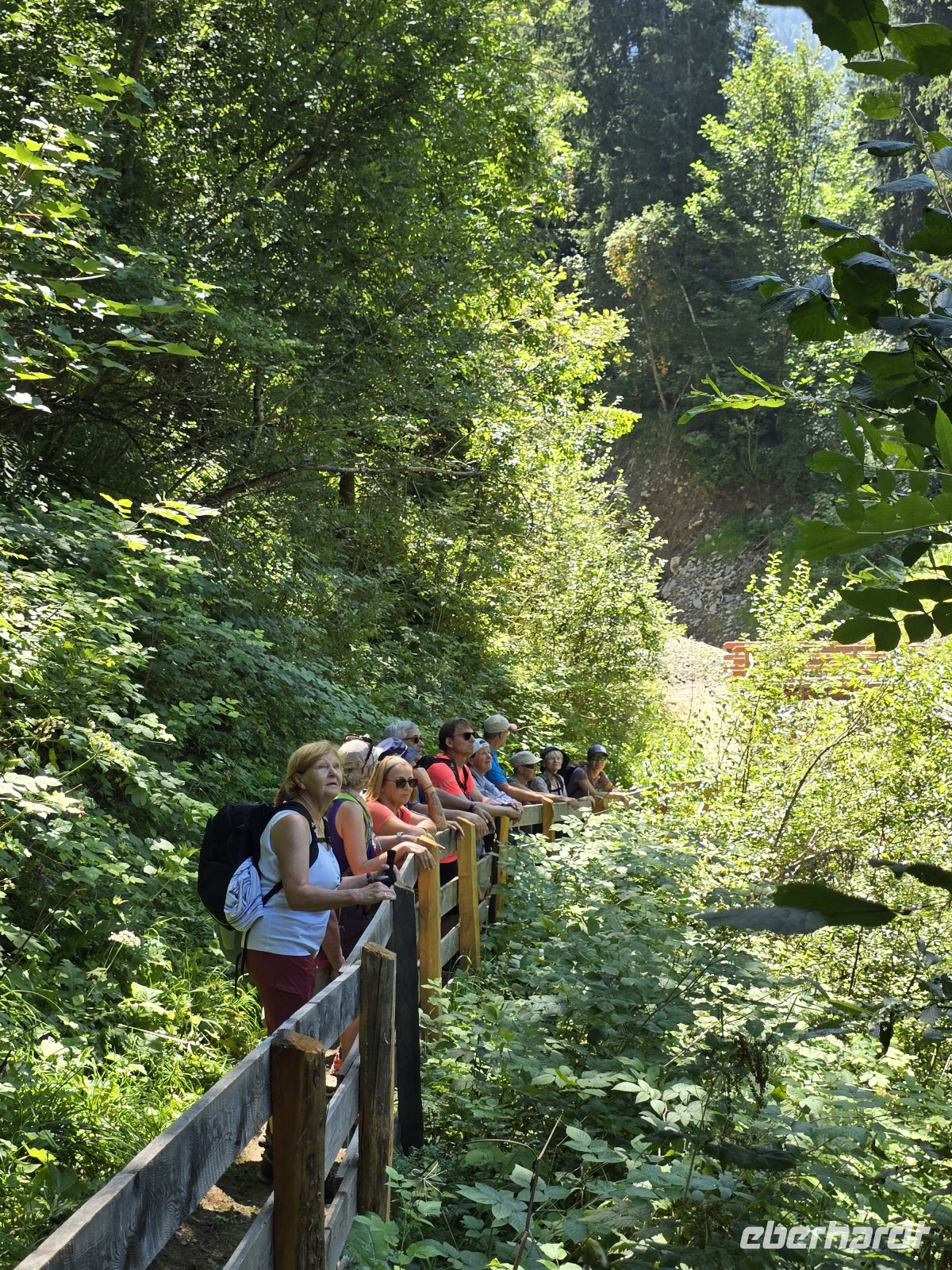 Auf einem abenteuerlichen Weg aus engen, nassen und teilweise klitschigen Stellen, die mit Handläufen gesichert waren, gelangten wir entlang des wunderschönen Achensees schließlich zur Geisalm, die nur zu Fuß oder per Schiff zu erreichen ist, und gönnten uns hier erstmal Erfrischungsgetränke und eine Kleinigkeit zum Essen. Auch das Stempeln durfte nicht fehlen. Schließlich wollten wir ja unser Heft vollbekommen.