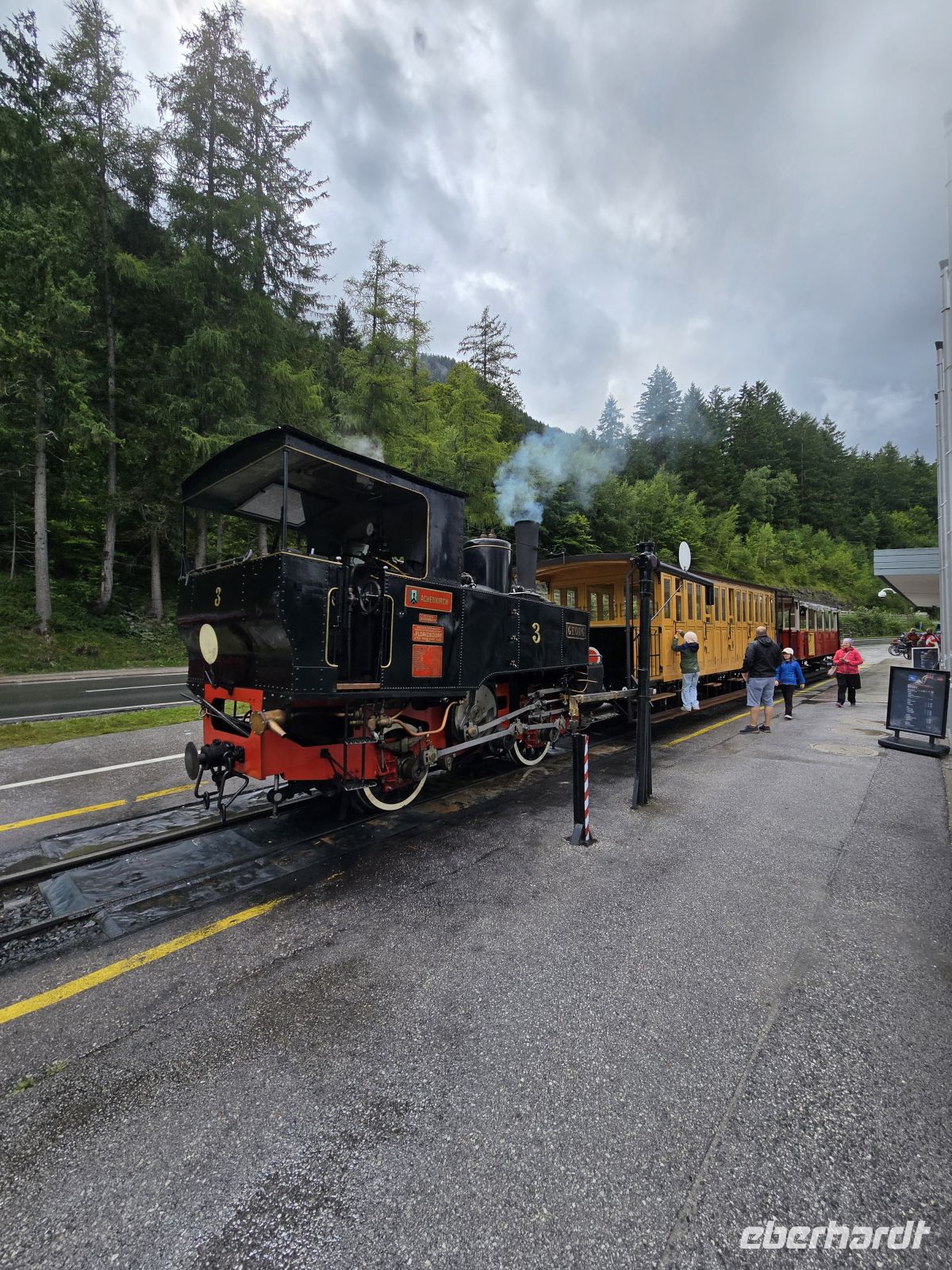 Der Wanderweg führte uns anschließend in einen schönen Mischwald und entlang des in den Fels geschlagenen Steiges in Richtung Pertisau. Hier angekommen holten wir uns natürlich gleich noch einen Stempel und danach gönnten wir uns ein Eis. Hier holte uns dann doch wieder etwas Regen ein, trotzdem entschieden wir uns frohen Mutes, unsere Wanderung bis zum Stadtrand in Maurach fortzusetzen. Hier stiegen wir in den Bus nach Jenbach und von da ging es weiter mit dem Zug ins Zillertal nach Fügen.