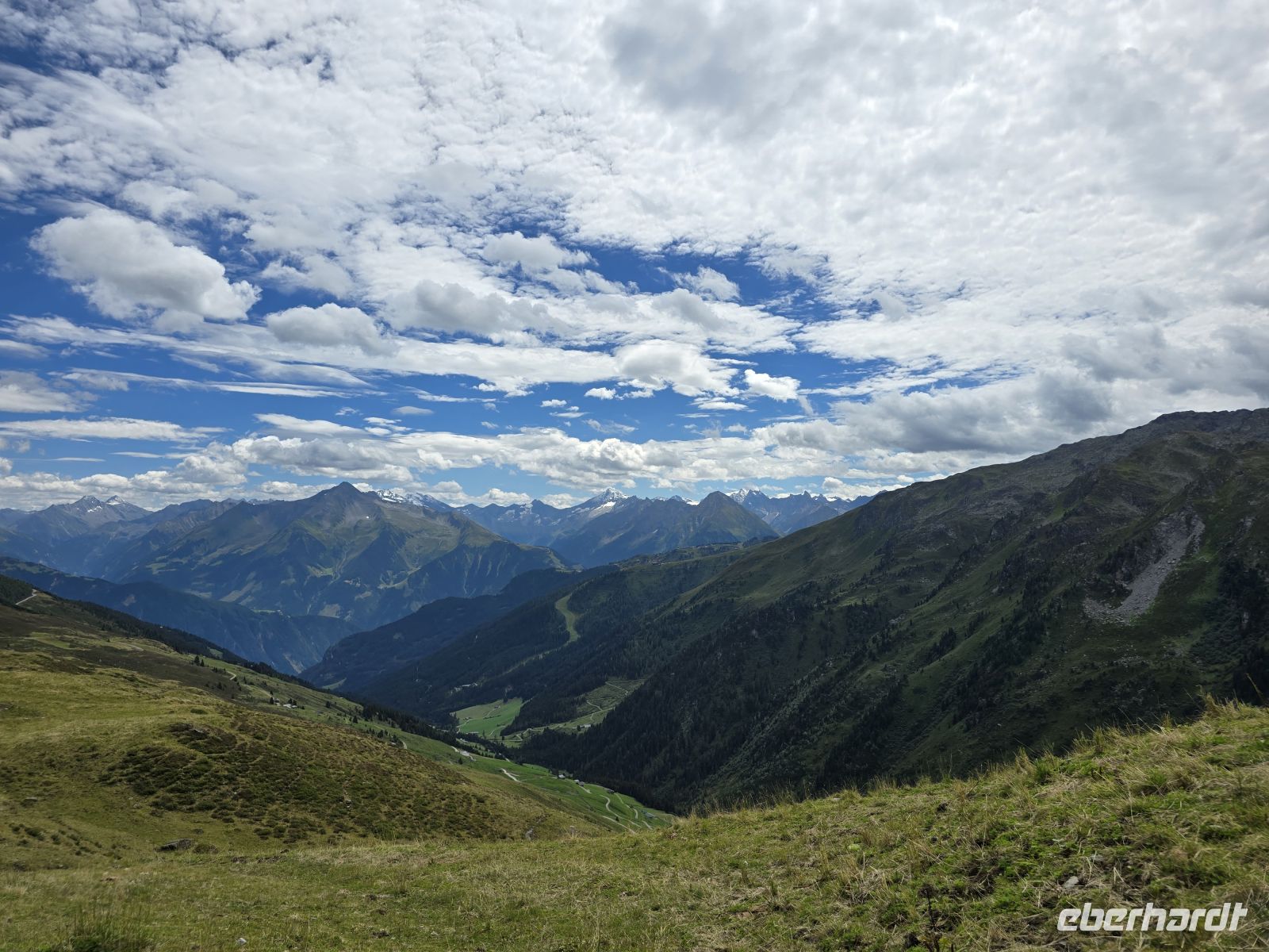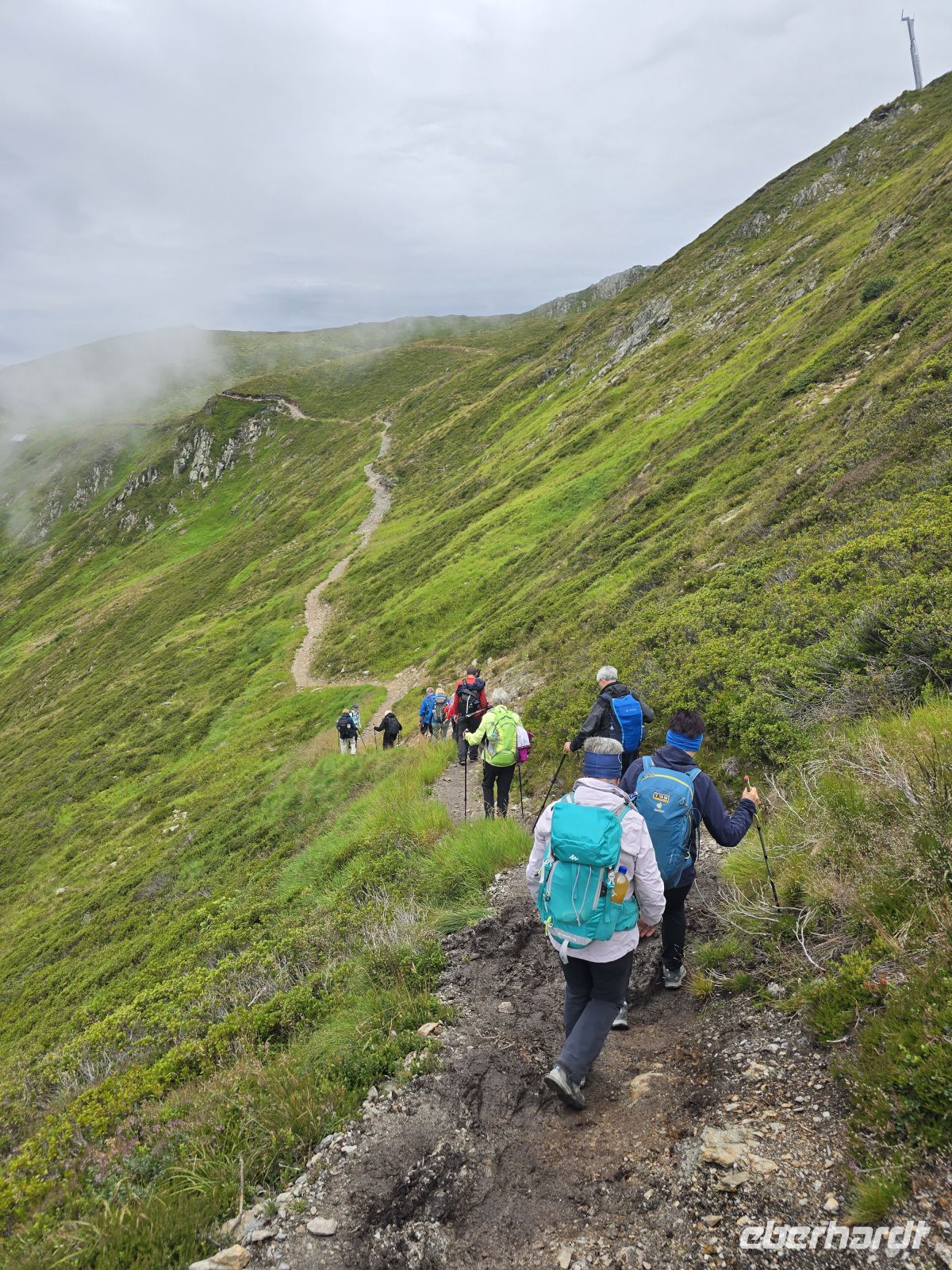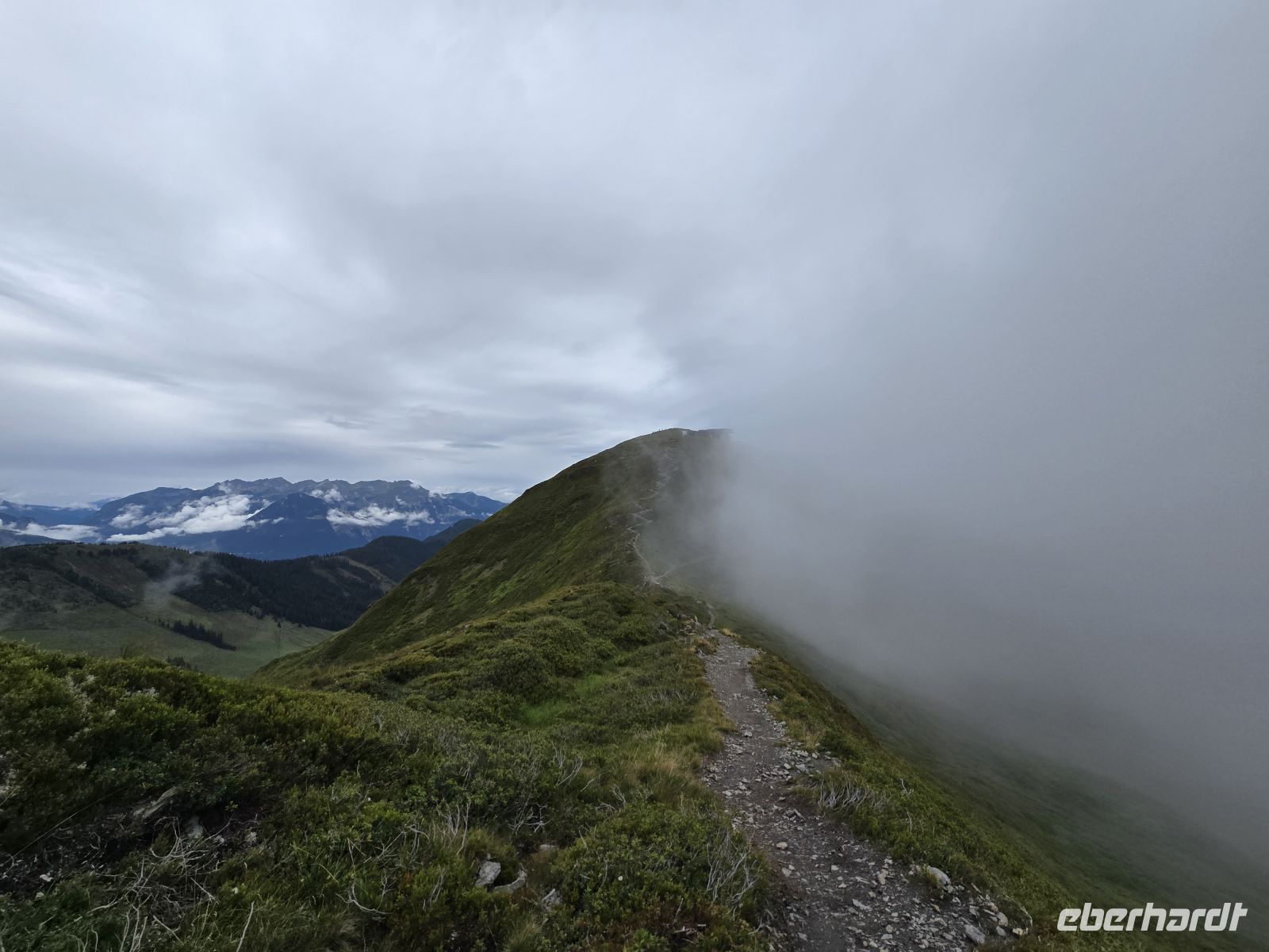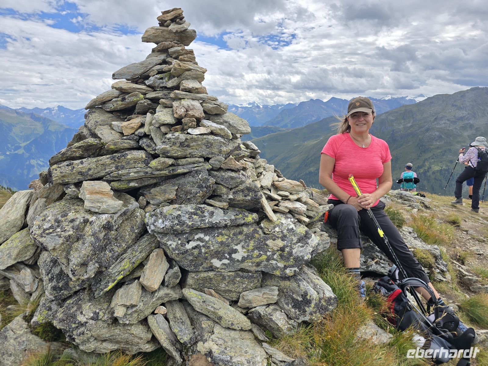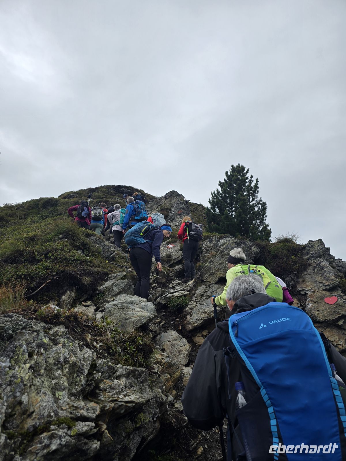 Das haben wir uns alles beim nächsten Aufstieg zum Mitterwandkopf, der mit 2280 Metern heute der höchste Punkt auf unserer Tour war, gleich wieder abgewandert. Es war herrlich, auf dem Sattel unterhalb des Kreuzjoches zu laufen, aber auch sportlich.