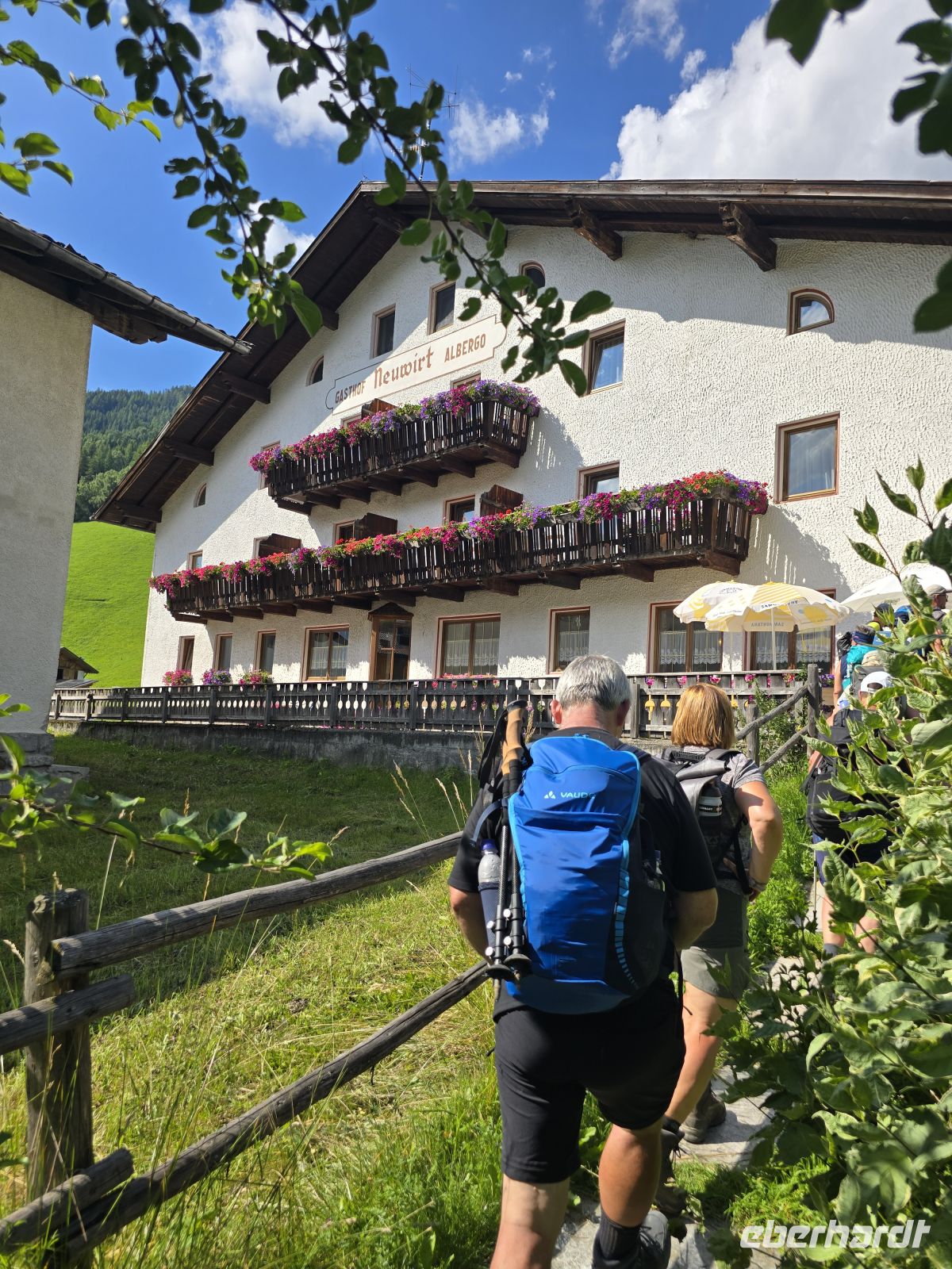 Im Gasthof Neuwirt erwartete man uns schon. Nach einem Check-in mit „Überraschungen“ stürmten wir den Biergarten und genossen ein kühles Getränk. Trotz der heißen Temperaturen heute war es für einige nicht heiß genug, und die Wirtin heizte für uns die Sauna an.