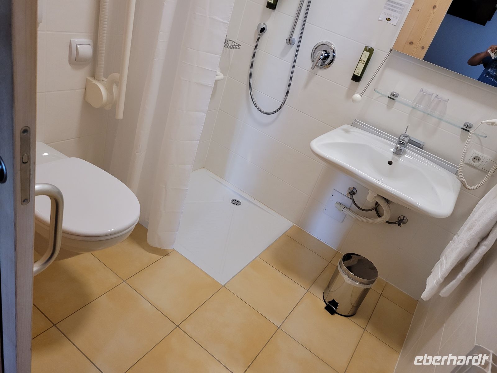 Wieder am Hotel angekommen, entschließen sich einige den Nachmittag im herrlich barrierefreien Wellnessbereich des Hotels zu verbringen. Einige setzen den Ausflug ins nahegelegene Kaltenbrunn fort. Die dortige Kirche ist ein Ort der Marienwallfahrt und außerdem zurzeit wunderbar in Vorbereitung der Erntedankprozession geschmückt. Vom Kirchplatz aus unternehmen wir dann eine kleine Rollstuhlwanderung zurück zum Hotel.