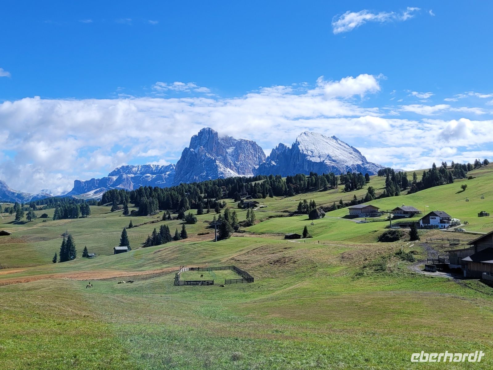 Die Seiser Alm, die größte Hochalm Europas, ist Ziel am heutigen Tag. Mit einer bestens für Rollstuhlfahrer geeigneten Gondelbahn geht es aufwärts. Die Sicht auf die einzigartige Landschaft der Dolomiten ist einfach überwältigend. Langsam nähert sich die Gondelbahn der Bergstation. Auf der Bergstation der Seiser Alm angekommen, eröffnet sich Ihnen ein spektakulärer Panoramablick auf die umliegenden Gipfel wie Langkofel, Plattkofel, den Sellastock und die weite Hochalm selbst.