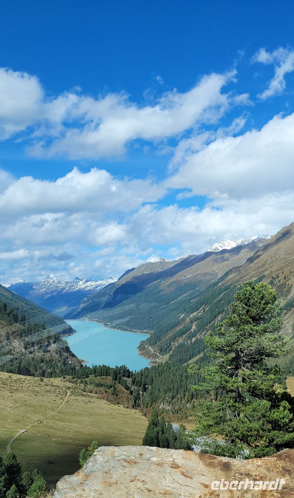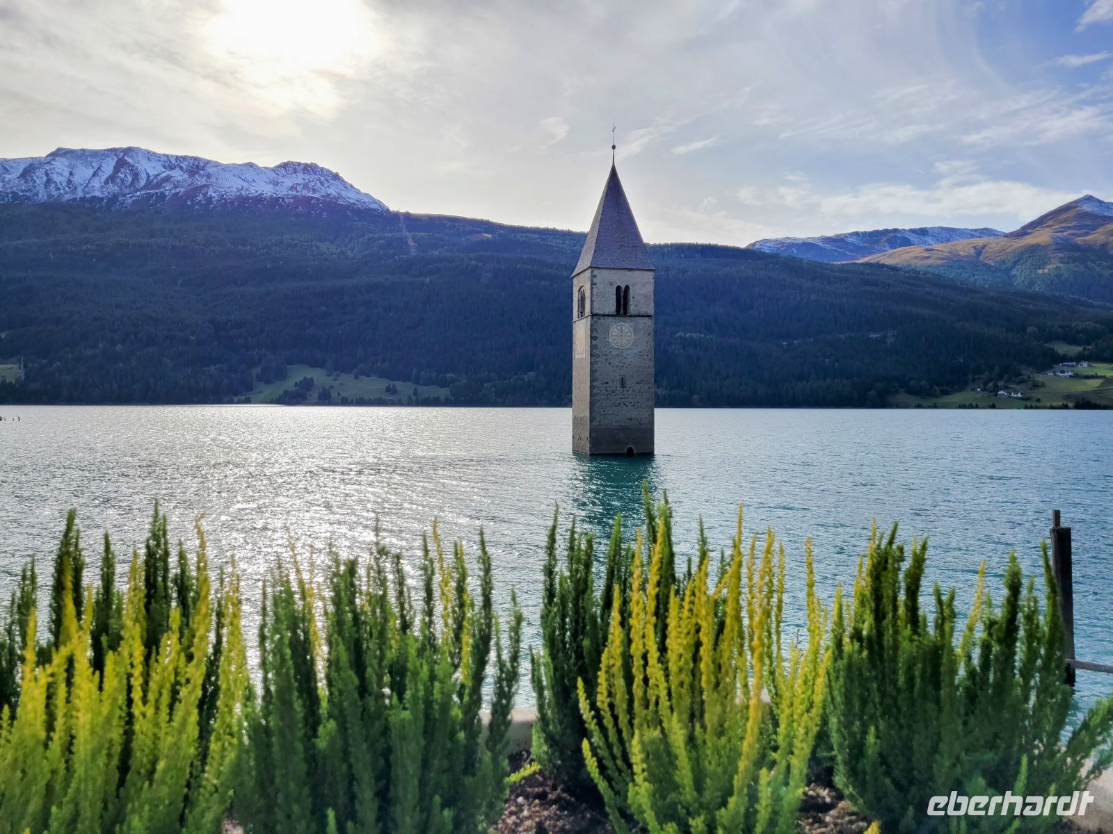 Die Stadt liegt in einem breiten Tal, umgeben von majestätischen Bergen der Südtiroler Alpen. Die Kombination aus mediterranem Flair und alpinem Charakter verleiht Meran eine einzigartige Atmosphäre. Die Altstadt ist geprägt von historischer Architektur, mit gepflasterten Gassen, hübschen Plätzen und beeindruckenden Bürgerhäusern. Hier gibt es zahlreiche Geschäfte, Boutiquen, Cafés und Restaurants, die zum Bummeln und Verweilen einladen. Eines der Wahrzeichen von Meran ist die Passerpromenade, eine wunderschöne Uferpromenade entlang des Flusses Passer. Die Promenade ist von prächtigen Palmen und mediterranen Pflanzen gesäumt und bietet einen erholsamen Ort zum Spazieren und Entspannen. In Meran gibt es auch eine Vielzahl von historischen Gebäuden und Sehenswürdigkeiten, darunter die Kurpromenade mit ihren eindrucksvollen Jugendstilgebäuden und das Schloss Tirol auf einem Hügel über der Stadt. Die Region rund um Meran ist berühmt für ihre zahlreichen Apfelplantagen und ihre ausgezeichneten Weine. Nach unserem Aufenthalt durchqueren wir das gesamte Vinschgau, den oberen Abschnitt des Etschtals. Die Straßen schlängeln sich entlang des Flusses Etsch und durch grüne Täler, die von imposanten Gipfeln umgeben sind. Wir halten am Reschensee, einem der bekanntesten Seen in Südtirol. Der Reschensee ist berühmt für den versunkenen Kirchturm, der aus dem klaren Wasser emporragt. Dieses beeindruckende Wahrzeichen bietet eine faszinierende Kulisse für Fotografen und Naturliebhaber gleichermaßen. Beim Dreiländereck von Hochfinstermünz erreichen wir wieder das Inntal und zweigen schon bald in das das Kaunertal ab, wo sich das Hotel "Weisseespitze" befindet.