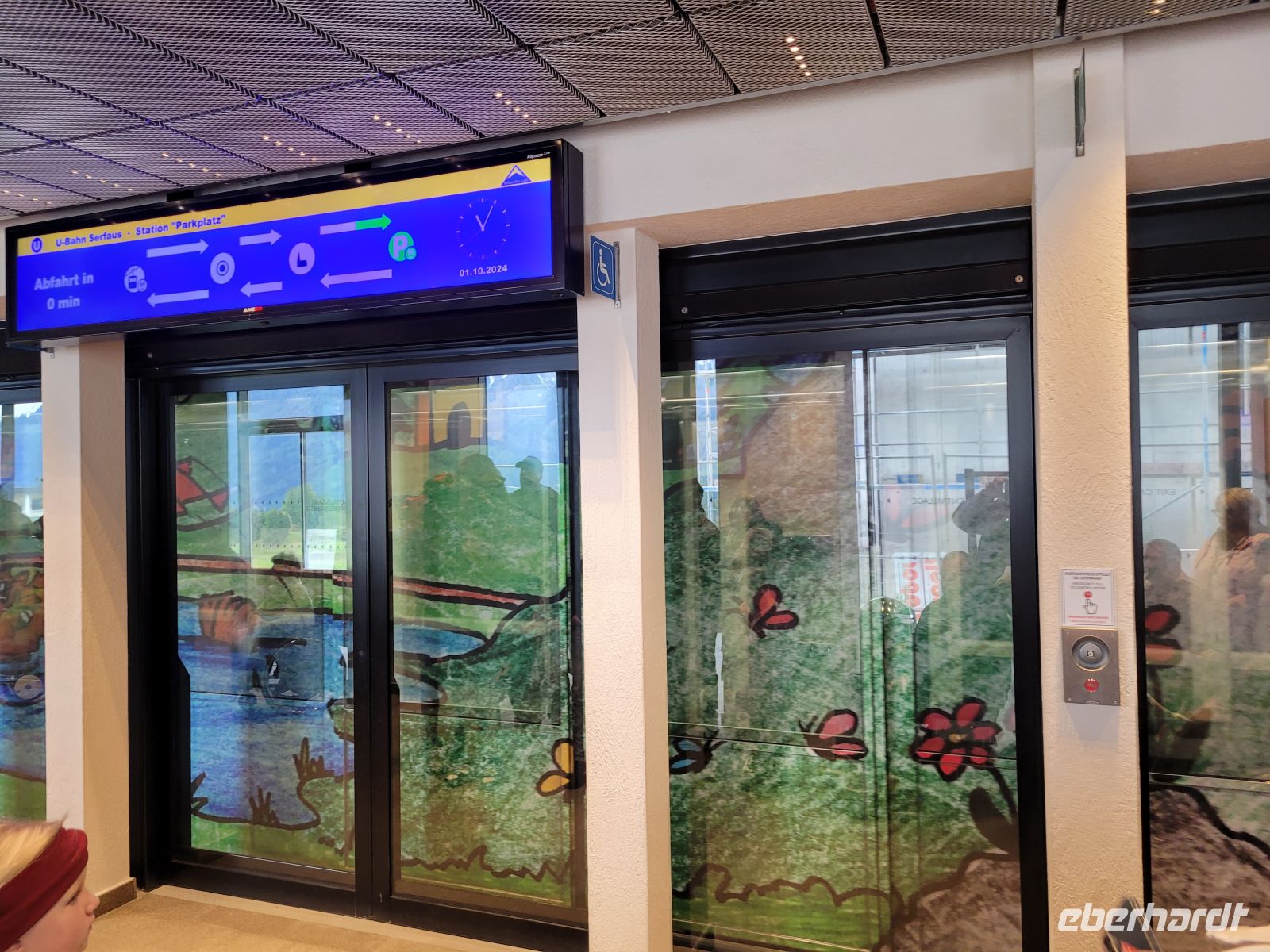 Früher ein Landwirtschaftsgebiet, bekannt für robuste Gerste, heute mondäne Urlaubsregion in deren Hauptort Serfaus sogar eine U-Bahn verkehrt. Diese nutzen wir um den Ort vom Großparkplatz bis zu den Aufzugsanlagen des Skigebietes zu unterqueren.