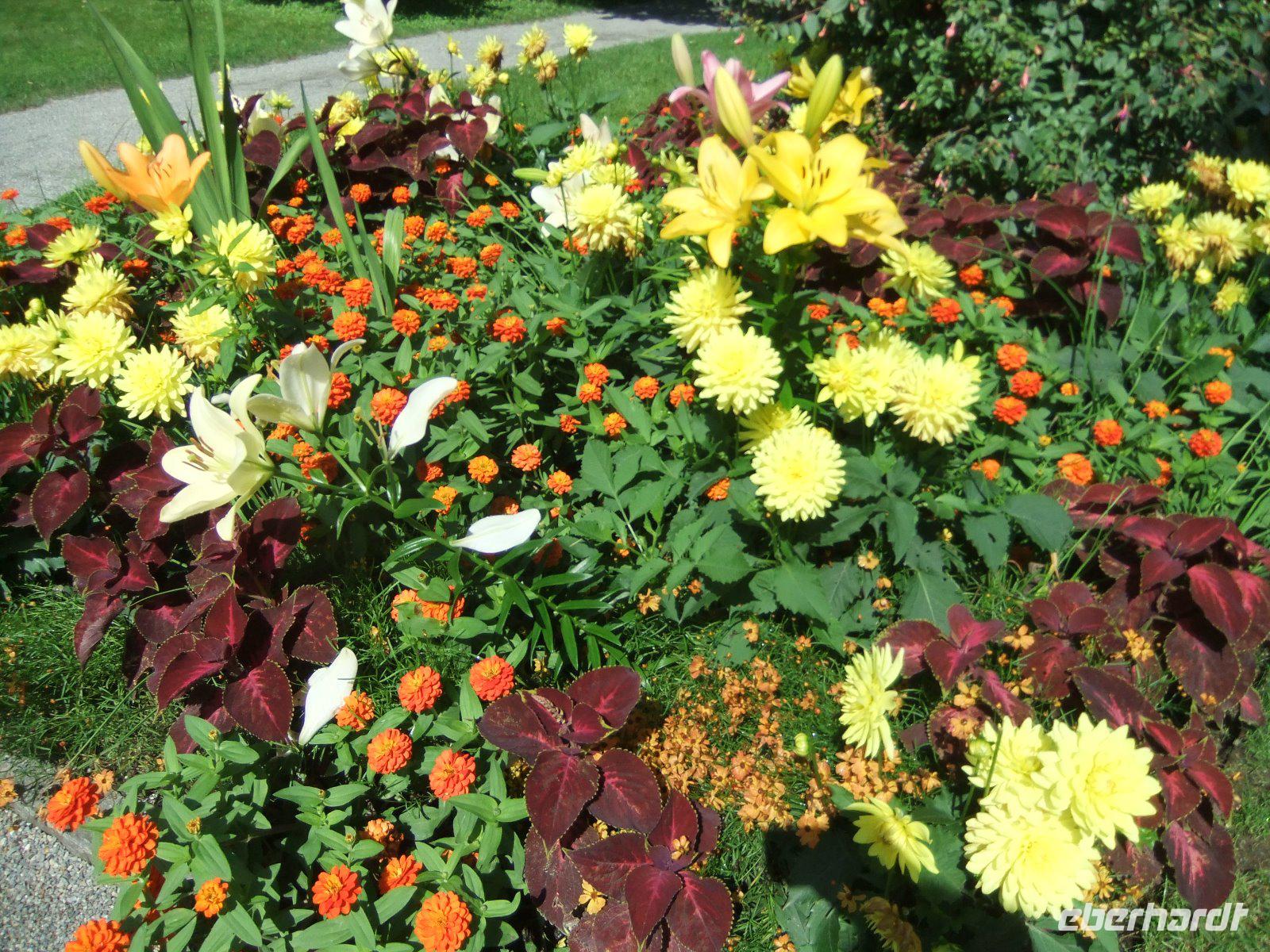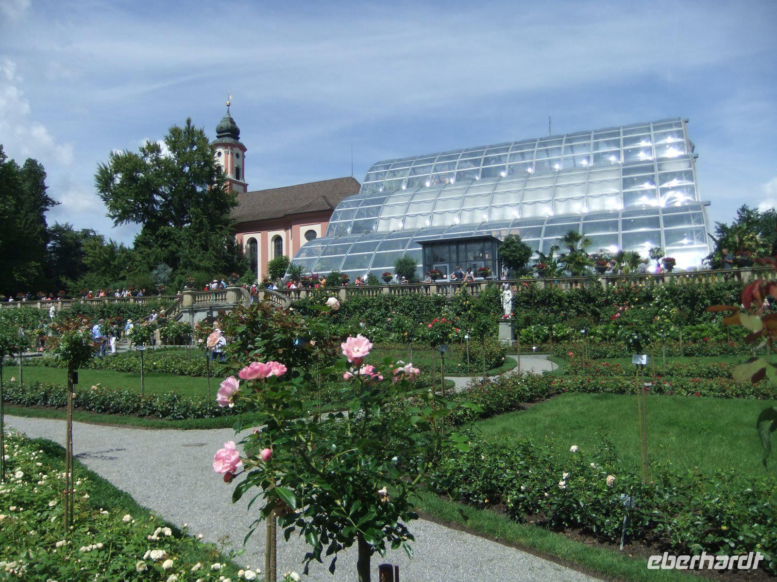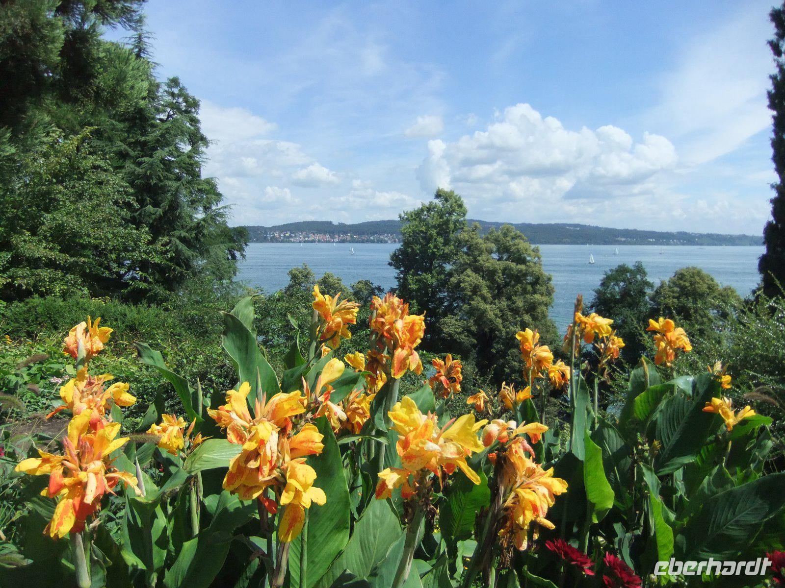 Nach dem Frühstück starten die meisten Gäste zu einer Fahrt entlang des Bodensees. Vorbei an Lindau und Friedrichshafen geht es nach Meersburg. Hier „stechen wir in See". In 20 Minuten bringt uns das Motorschiff „München" zur Insel Mainau. Schon von weitem sehen wir das Barockschloss. Vom Schiffsanleger aus starten wir zu unserem Bummel über die Insel. Der 2004 verstorbene Graf Lennart Bernadotte nannte sie auch „Blumenschiff" und beschrieb sie einst mit folgenden Worten: „Sie ist eine kokette kleine Dame, diese Mainau, die stets und ständig große Aufmerksamkeit fordert, noch mehr Liebe und vor allem unaufhörlich neue Kleider". Auch für uns hat sie sich schön gemacht. Wir spazieren durch den Rosengarten, bestaunen die italienische Wassertreppe, bewundern die zahlreichen Dahlien, fotografieren den großen Pfau und die bunten Blumenenten. Es bleibt auch Zeit für eine Rast in einer der zahlreichen Gaststätten und für den Besuch der Schlosskirche. Natürlich besuchen wir auch das Schmetterlingshaus. Je nach Saison fliegen hier 700 bis 1000 bunte Falter durch die tropische Umgebung. Wir erkunden weiterhin den Kräutergarten und bestaunen die riesigen alten Bäume.