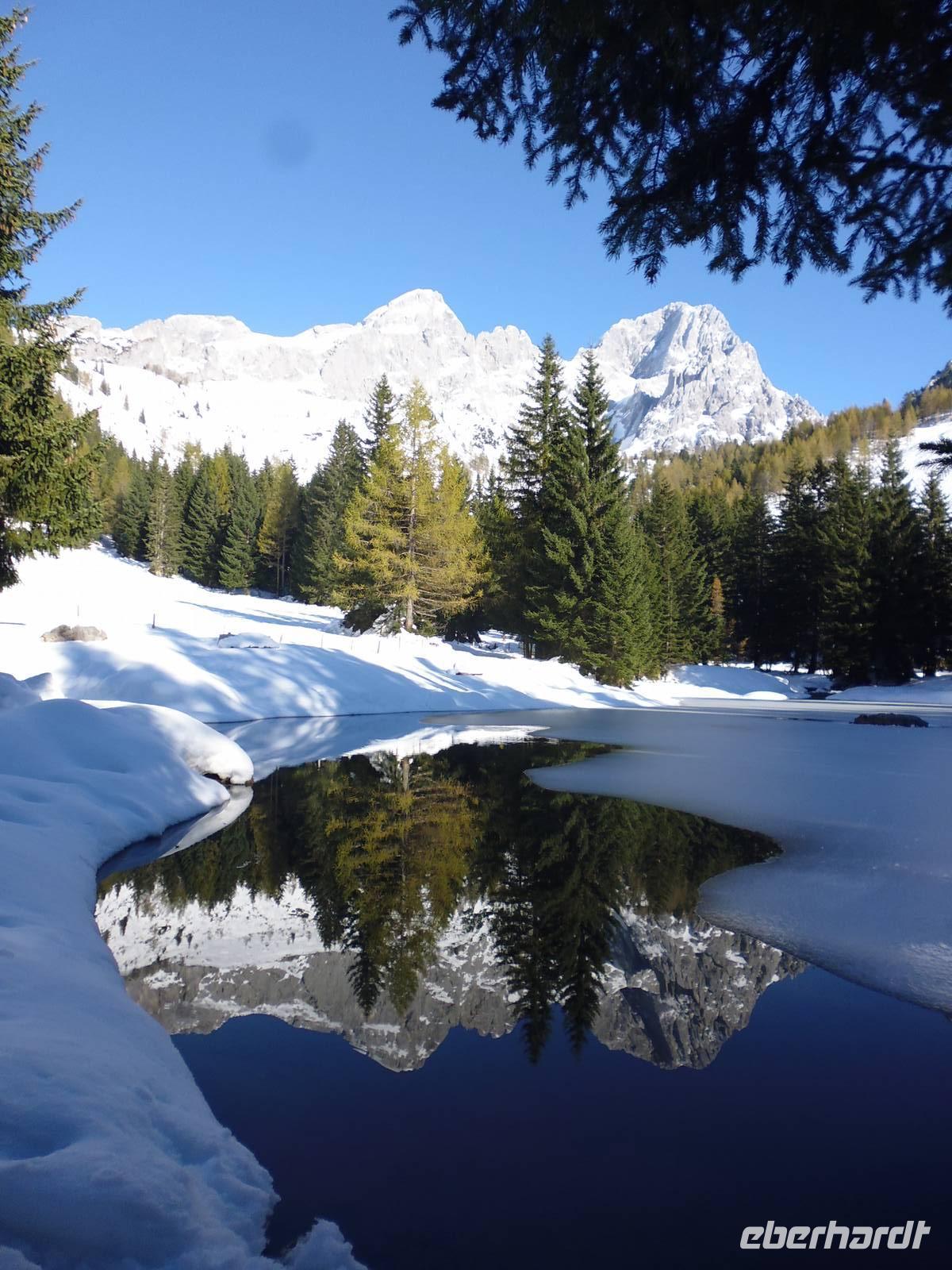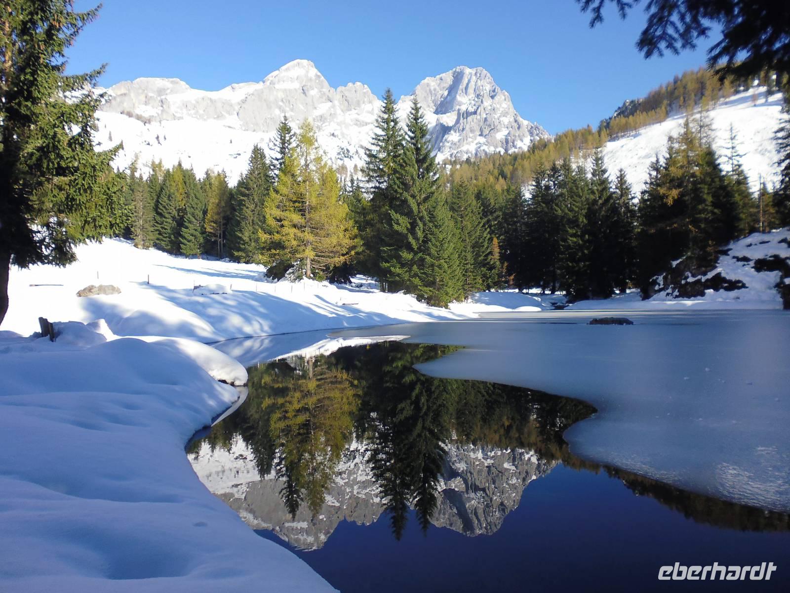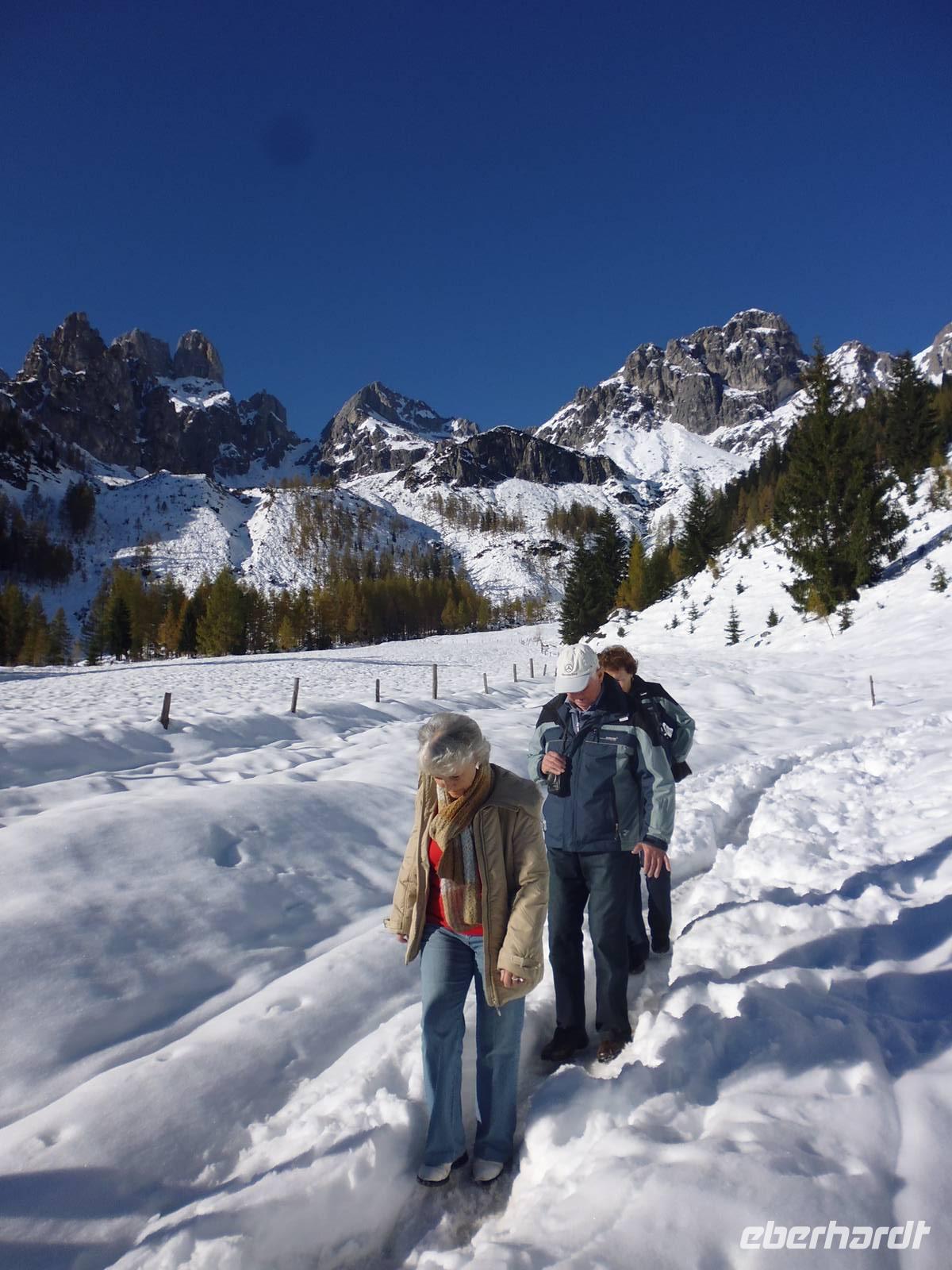 Bei herrlichem Sonnenwetter fuhren wir anschließend durch verschneite Alpenlandschaft in den Wintersportort Obertauern und als Zugabe an den herrlich gelegenen Jägersee, wo viele die Bergluft bei einer kleinen Wanderung genießen konnten. Zurück im Hotel erholte man sich im Ort, auf dem Zimmer oder in der tollen Saunalandschaft mit Whirlpool. Mit Appetit ging es zum Abendbrot. Ab halbneun überraschte uns das Hotel mit einem Heimatabend. Junge Leute musizierten und brachten echte Volksmusik aus der Region, während kräftige junge Männer die dazu gehörigen Tänze zeigten und Interessantes aus dem regionalen Brauchtum darboten. Es versteht sich wohl von selbst, dass neben hervorragenden Vertretern aus der Gästeschaft auch beide Reiseleiter ins aktive Geschehen mit einbezogen wurden.Sonnabend,