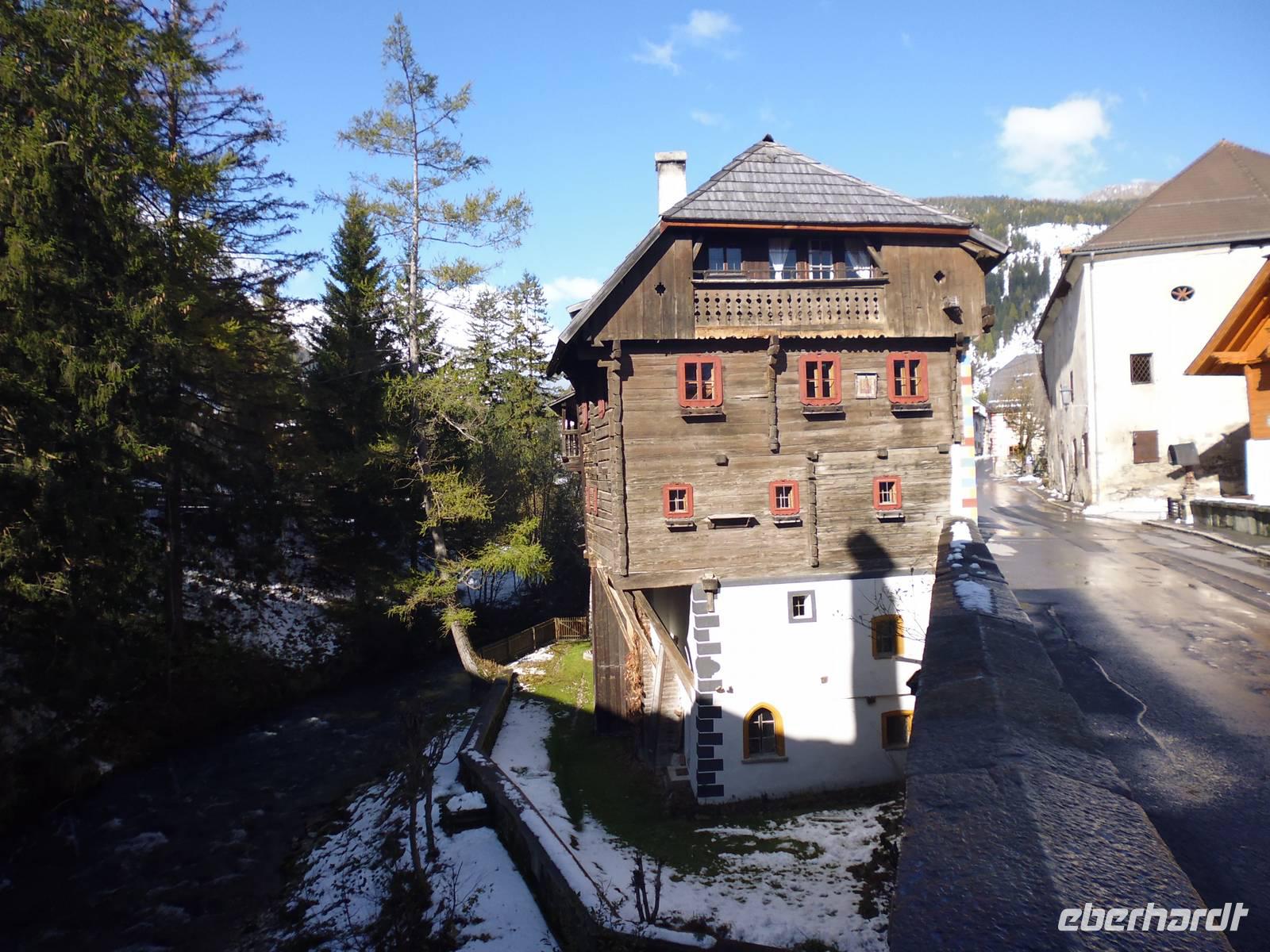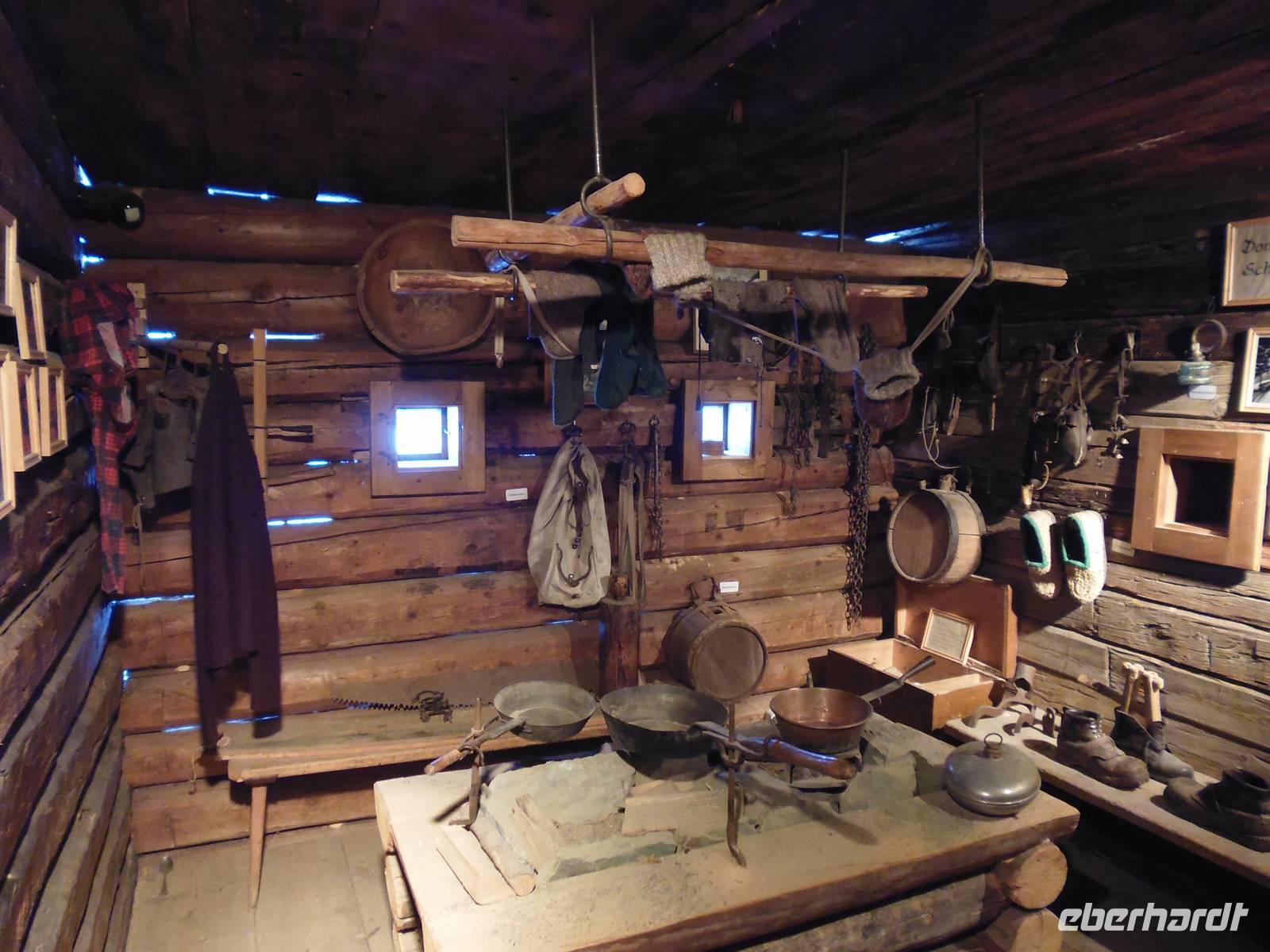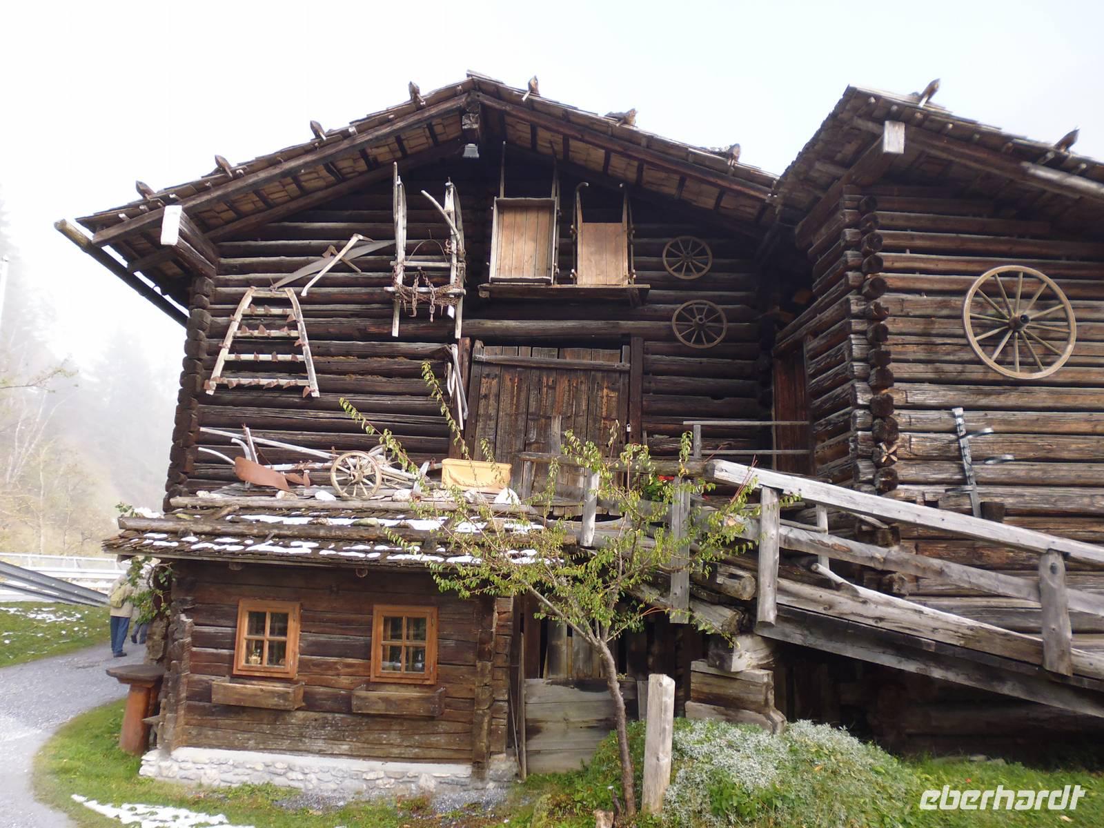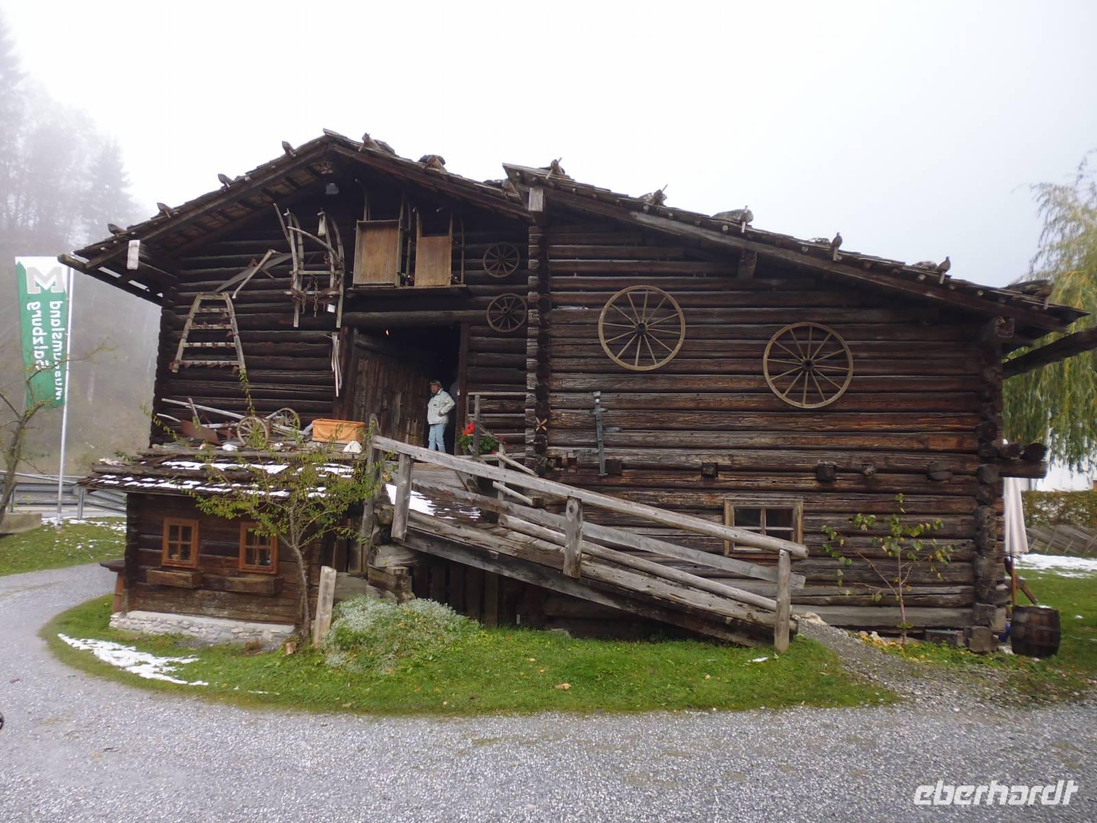 GroßarltalDa die für diesen Vormittag geplante Klamm nicht zugänglich war, galt es zu improvisieren. Der größte Teil der Gäste fuhr mit der unmittelbar beim Hotel gelegenen Panoramabergbahn auf 1840 Höhenmeter und konnte vom Plateau aus eine grandiose Fernsicht auf die umliegenden Tauerngipfel genießen. Eine zweite Grußße fuhr mit dem Bus in den nahe gelegenen Ortsteil eben, wo im so genannten Kösslerhäusl ein kleines, aber feines Heimatmuseum eingerichtet ist. Eine Bergknappenfamilie durfte sich um 1600 dieses kleine Bauernhaus bauen und im Nebenerwerb etwas Vieh halten. Viele landwirtschaftliche Geräte, meist selber aus Holz gefertigt, gibt es zu bestaunen und schon die Blockbauweise des Hauses nötigt Bewunderung ab. Trotz aller Romantik werden die durchaus schweren Lebensumstände der einfachen Bergbauern und Knappen deutlich.