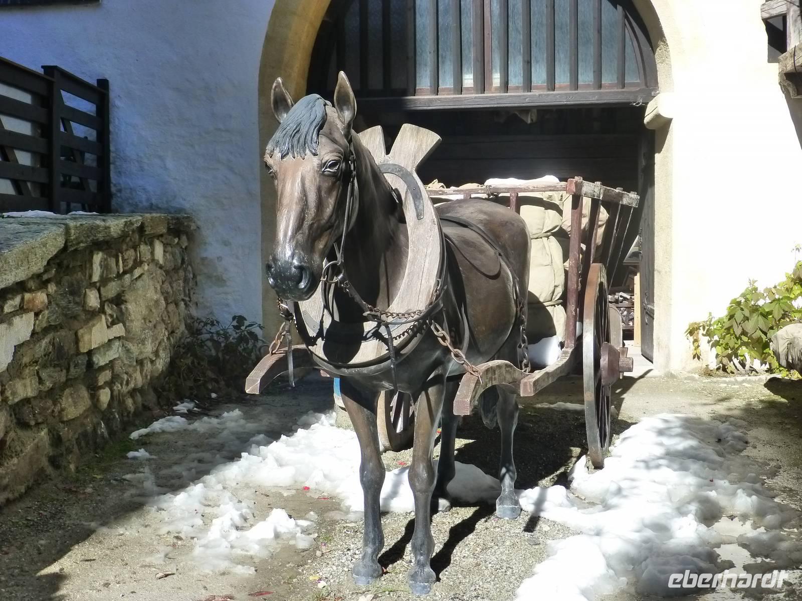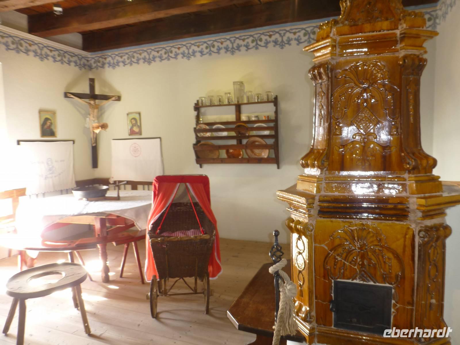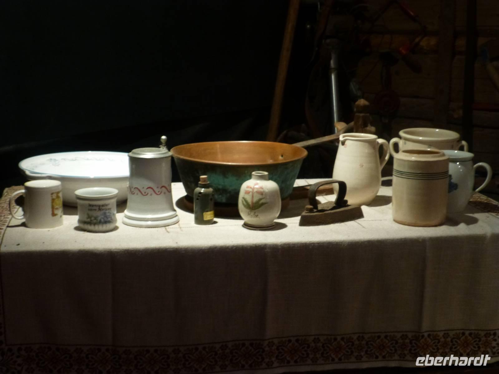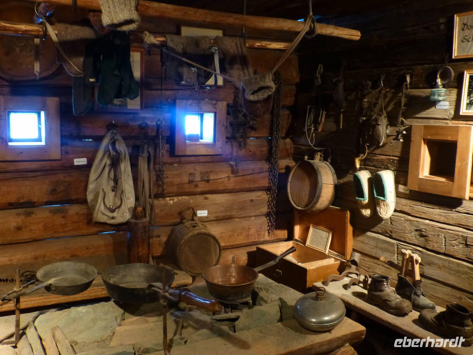 GroßarltalDa die für diesen Vormittag geplante Klamm nicht zugänglich war, galt es zu improvisieren. Der größte Teil der Gäste fuhr mit der unmittelbar beim Hotel gelegenen Panoramabergbahn auf 1840 Höhenmeter und konnte vom Plateau aus eine grandiose Fernsicht auf die umliegenden Tauerngipfel genießen. Eine zweite Grußße fuhr mit dem Bus in den nahe gelegenen Ortsteil eben, wo im so genannten Kösslerhäusl ein kleines, aber feines Heimatmuseum eingerichtet ist. Eine Bergknappenfamilie durfte sich um 1600 dieses kleine Bauernhaus bauen und im Nebenerwerb etwas Vieh halten. Viele landwirtschaftliche Geräte, meist selber aus Holz gefertigt, gibt es zu bestaunen und schon die Blockbauweise des Hauses nötigt Bewunderung ab. Trotz aller Romantik werden die durchaus schweren Lebensumstände der einfachen Bergbauern und Knappen deutlich.