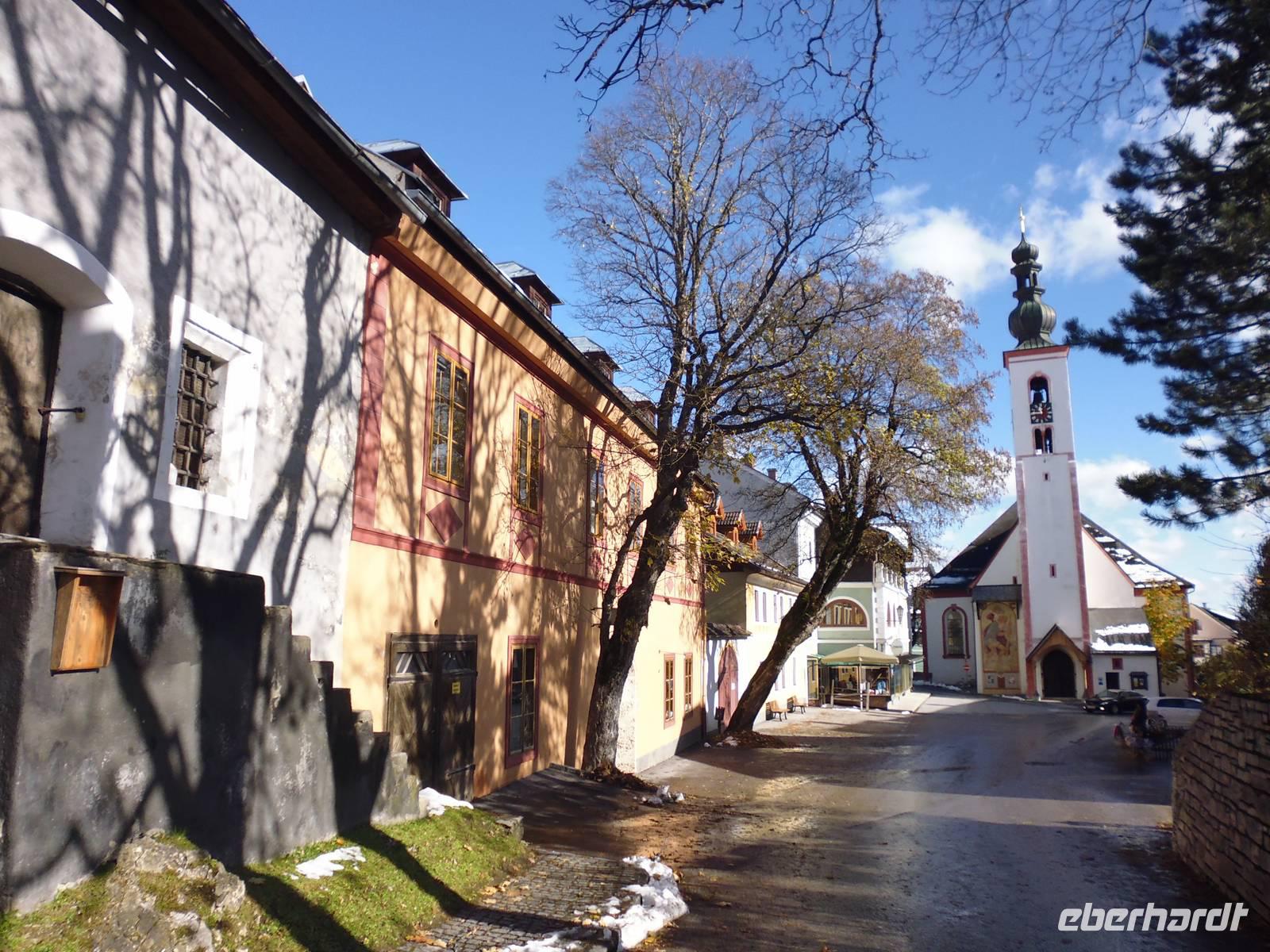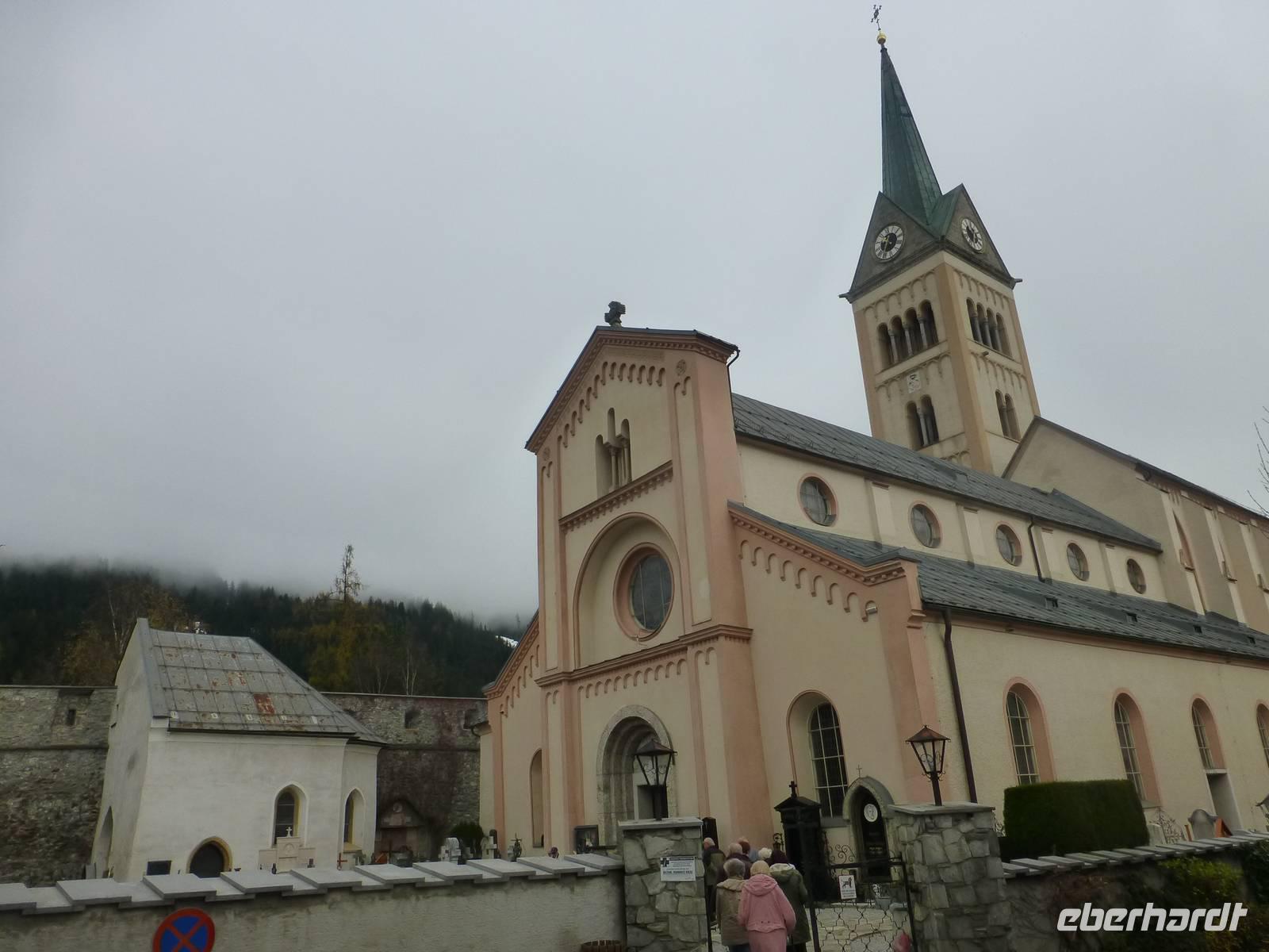 Österreichischer NationalfeiertagGanz entspannt begann dieser Sonntag, der zugleich der Nationalfeiertag der Republik Österreich war. Dort feiert man auch den Tag aller Kriegsteilnehmer und diese Feierlichkeiten beginnen mit der heiligen Messe, zu der die örtlichen Vereine mit Blasmusik marschieren. Unser Hotelwirt war so freundlich, mit uns einen kleinen Spaziergang durch den Ort zu unternehmen, bei dem er viel Wissenswertes über die Geschichte des Tals zum Besten gab. Auch über die Vertreibung der Protestanten 1732, die gerade in den Bergarbeiterdörfern den Großteil der Bevölkerung bildeten- ein wirtschaftlicher und kultureller Aderlass ohnegleichen. Der Spaziergang führte zur barocken Kirche von Großarl, die bereits rappelvoll war mit in Trachten gekleideten Gläubigen.