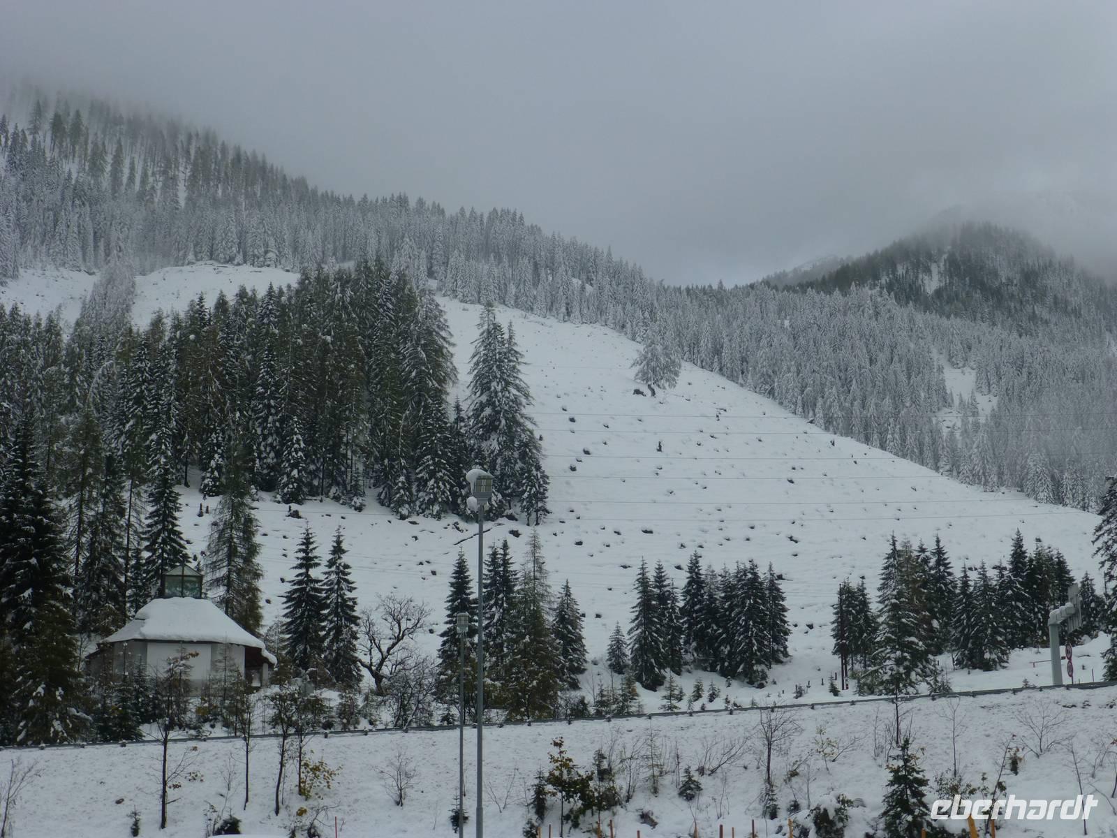 Von Sachsen ins Salzburger Land. Anreise.Pünktlich um acht Uhr waren alle für Dresden gebuchten Mitreisenden am Flughafen und bei leider nicht so schönem Wetter ging es über München und die Tauernautobahn ins Großarltal im Salzburger Land. Bereits in den Voralpen sah man die ersten frisch beschneiten Berge und als wir ins Großarltal abbogen, nahm der Schnee immer mehr zu. Gegen halbsechs waren beide Busse beim Hotel und nachdem alle ihr Zimmer bezogen hatten, traf man sich um 19 Uhr zum Abendessen. Nach einem langen Fahrtag gingen viele bald auf ihre Zimmer, während einige Gäste noch allerhand auszuwerten hatten.