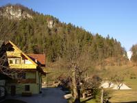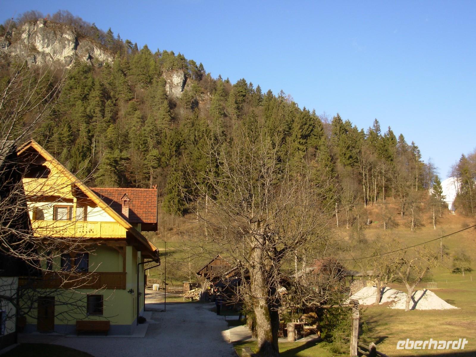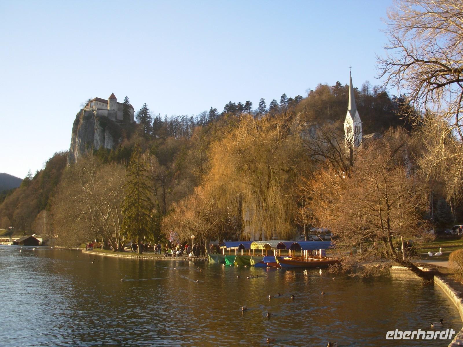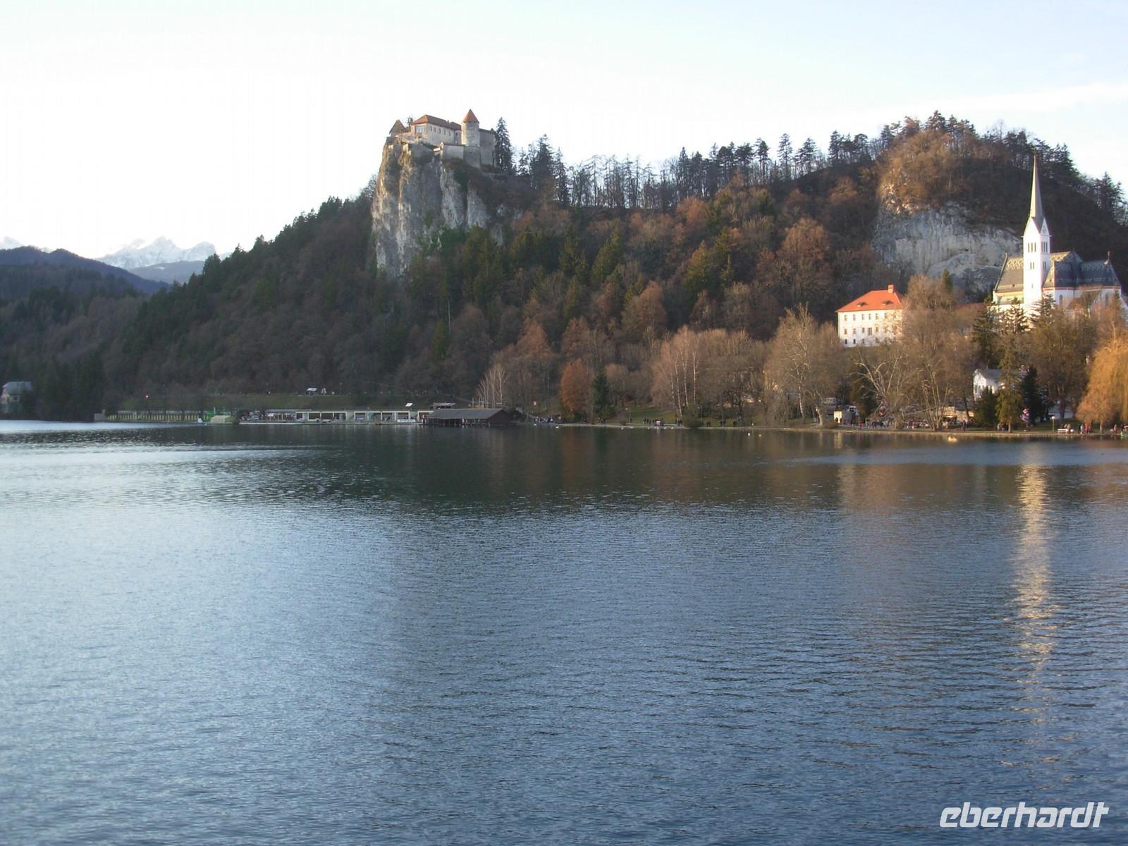 Anschließend führte uns die Fahrt in eines der schönsten Orte Sloweniens nach Bled. Am Ortseingang von Bled erwartete uns schon unser Jausenwirt Herr Soklic und geleitete unseren Bus zu seinem Bauernhof, wo wir bei strahlendem Sonnenschein mit einem kräftigen Obstler empfangen wurden und wir interessantes über das Leben auf dem Lande in Slowenien erfuhren. Es gab eine Jause mit selbst hergestellter Wurst, Käse, Kuchen ,Brot und Salat. Auch den frischen Apfelsaft und den köstlichen slowenischen Wein ließen wir uns munden. Einige von uns nutzten die Möglichkeit des Kaufes von Bioprodukten die auf dem Hof von Soklics hergestellt wurden. Wir verabschiedeten uns von Familie Soklic und fuhren um den See und genossen den Blick über den gleichnamigen See mit der Insel inmitten des Sees von der Bleder Burg. Der Ort Bled war sehr gut besucht, und wir besichtigten die Kirche und nutzten die anschließende Freizeit zum Kaffee trinken und zum Spazieren an der Strandpromenade. Von der Burg, in der ein Museum eingerichtet ist hat man einen überwältigenden Ausblick über den See und auf die Südhänge der Karawanken.