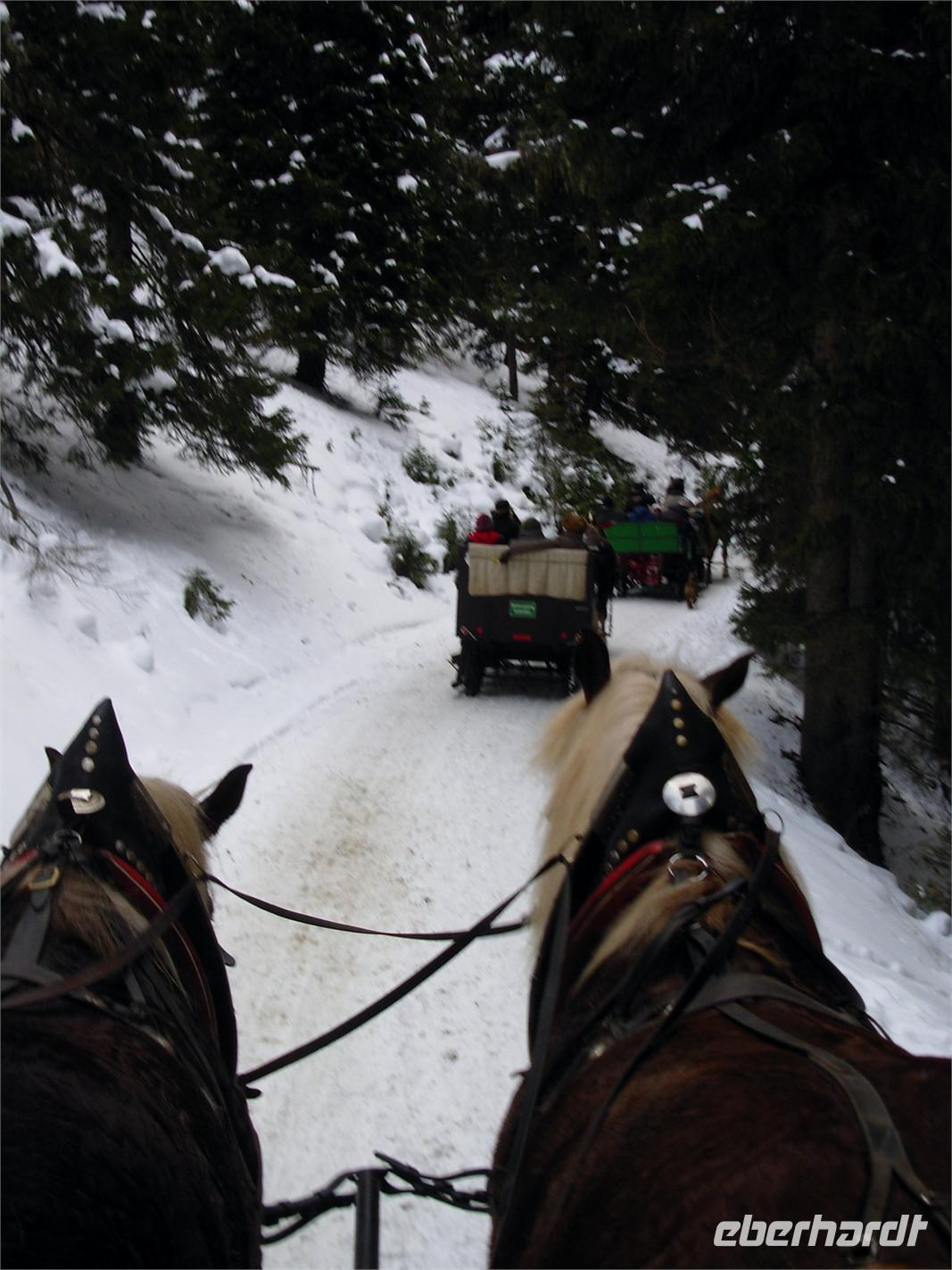 Es erwartete uns eine phantastische und wildromantische Pferdeschlittenfahrt ins tief verschneite Naturschutzgebiet Gonntal vorbei am Wintersportzentrum zur urigen Pritzhütte. Hier war für unsere Stärkung bestens gesorgt und schon eine typische Brettljause bei kärntnerischer Stimmungsmusik vorbereitet. Gut gestärkt kehren wir am Abend zum Hotel zurück.