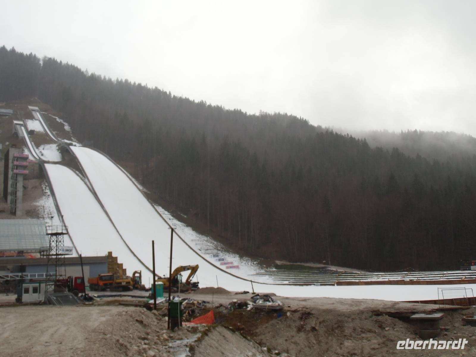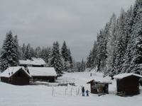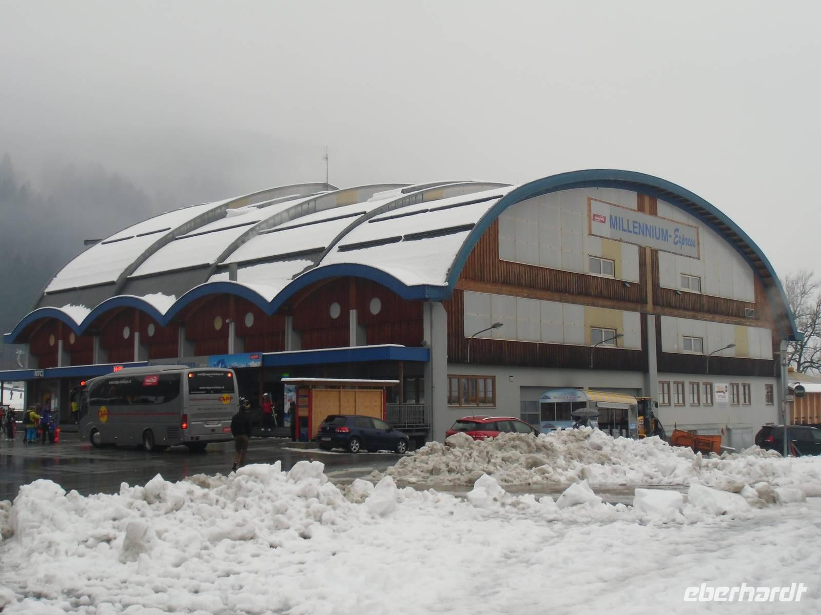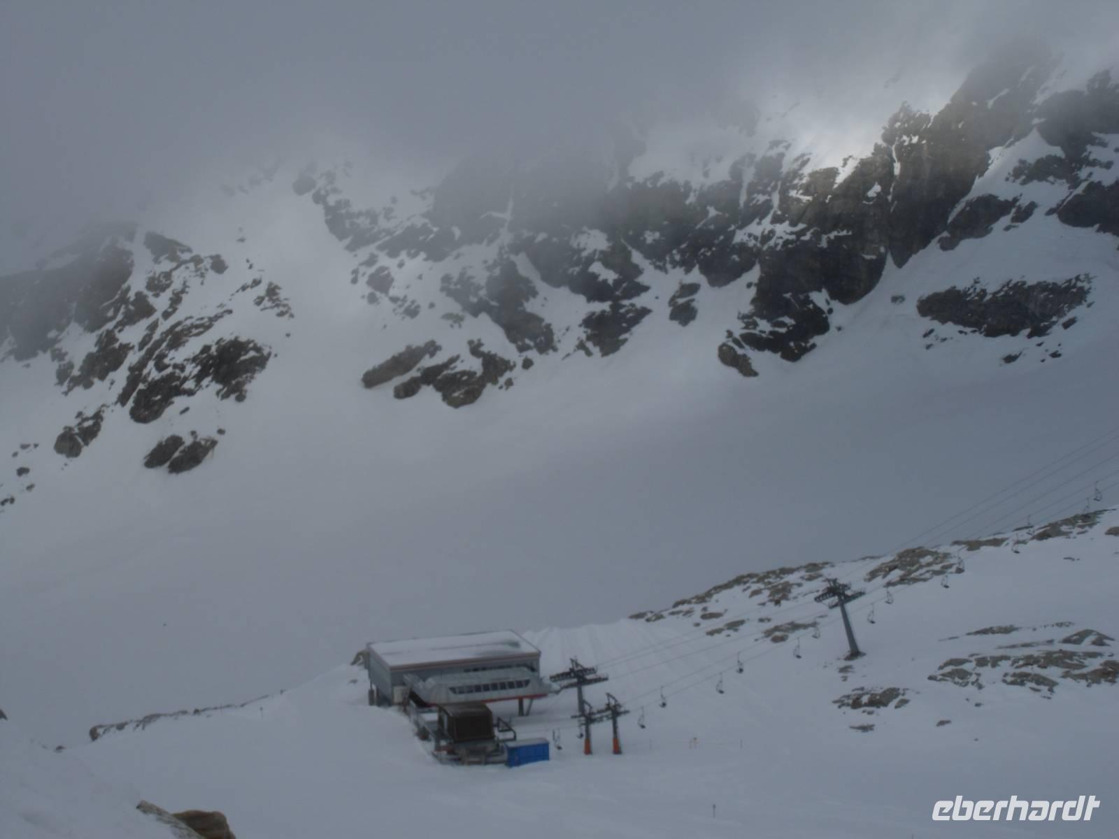 Das Nassfeld liegt in den Karnischen Alpen auf Kärntner Seite, oben jedoch schon an der italienischen Grenze. Es hat sich in den letzten Jahren zu einem der modernsten Skigebiete entwickelt, wie an den neuerbauten Hotelanlagen abzulesen ist. Unten war es tatsächlich nass (leicher Nieselregen), doch je weiter wir mit der längsten Kabinenbahn der Alpen in die Höhe schwebten, desto winterlicher präsentierte sich die Landschaft. In knapp 2.300 m Höhe schließlich lagen ungefähr anderthalb Meter Schnee. Wir wollten ja auch in den Winter! Und auch der heiße Jagertee in der Bergbaude war lecker.