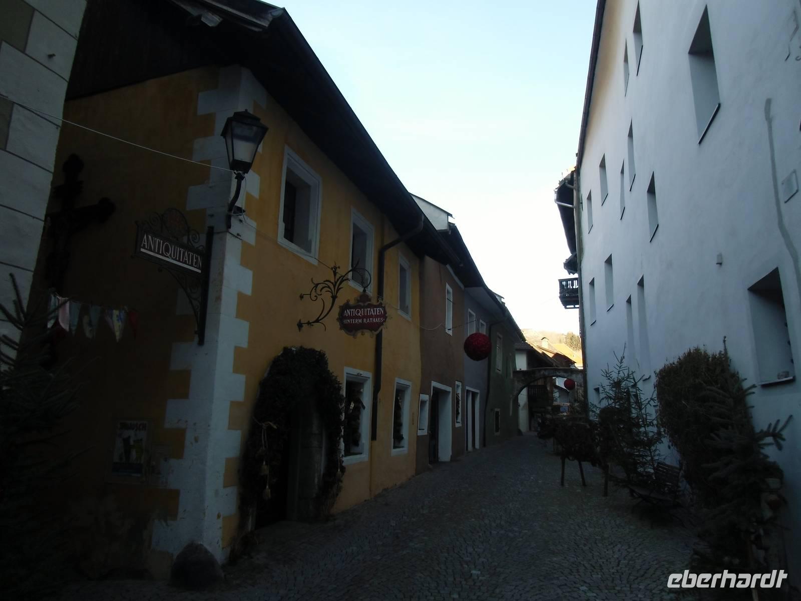 Bei weiterhin freundlichem Wetter besichtigten wir zunächst die mittelalterliche Stadt Gemünd; der Straßen-Markt mit seinen engen Nebengassen, die vollständig erhaltene Stadtmauer, die Burgruine über der Stadt und andere Sehenswürdigkeiten (Porsche-Museum; die Firma hatte von 1944 bis 1950 ihre Konstruktionsabteilung in Gemünd) waren wirklich sehenswert. Und heute gelangten wir ohne Schwierigkeiten auf den Katschberg, die Pferdekutschen standen auch bald bereit - und durch den Winterwald ging es mit zwei PS zur ganz aus Holz gebauten urigen Pritzhütte. Die frische Luft hatte Appetit gemacht; und so wurden die liebevoll angerichteten Bretteljausen vollständig abgeräumt. Im Dunkeln zogen uns die Pferde zum Katschberg zurück, durch den vielfach noch weihnachtlich beleuchteten Ferienort - ein verzaubertes und verzauberndes Bild.
