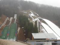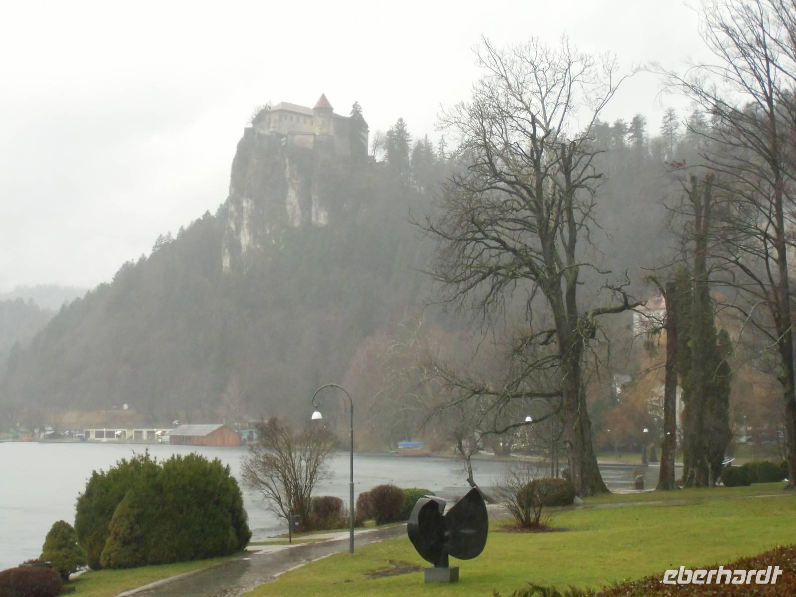 Heute regnete es nur einmal - und zwar den ganzen Tag lang - Pech; es konnte uns jedoch nicht in unserem Tatendrang bremsen. Die Drei-Länder-Fahrt stand auf dem Programm; zunächst nach Fusine, den nordöstlichsten Ort in Italien. Kurios, dass uns Gäste aus Weißenfels in Sachsen-Anhalt darauf aufmerksam machten, dass es in Fusine ein Unternehmen mit dem Namen "Weissenfels" gibt - ein Fotostopp war selbstverständlich. Ein solcher wurde auch in Planica in Slowenien an einer der größen Skiflugschanzen der Welt eingelegt. 2013 sind dort umfangreiche Bauarbeiten vonstatten gegangen, um noch größere Weiten zu ermöglichen. Außerdem wurden noch kleinere Schanzen hinzugefügt. Auf dem Bauernhof der Familie Soklic in einem Dorf bei Bled erwarteten uns in der "guten Stube" Brot und Wein, Wurst und Käse, und Obstler und und und. Da ließ sich der Regen draußen schon aushalten. Vom Bus aus beäugten wir dann noch das Zentrum von Bled mit seinen mondänen Hotels, dem Casino und der Insel im See. Durch den Karanwankentunnel erreichten wir wieder unser Hotel in Kärnten.