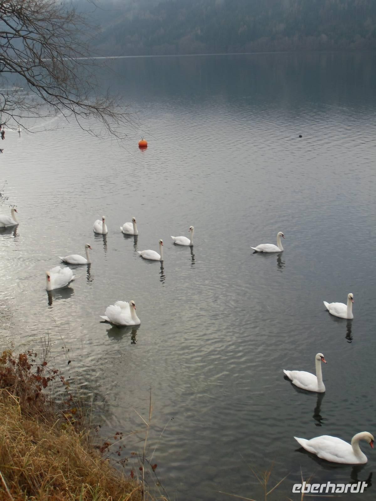 Heute begann das Ausflugsprogramm. Am Millstätter See vorbei, über dem dichter Nebel lagerte, durch Bad Kleinkircheim und Feldkirchen erreichten wir den Ort und den Dom Gurk. In der romanischen Basilika aus dem 12. Jahrhundert beeindruckte neben dem reich vergoldeten Hochaltar insbesondere die Krypta mit ihren vielen Marmorsäulen und der ganz eigenartigen Atmosphäre. Im Shop des Domes gab es einen original Gurktaler Kräuterschnaps zu verkosten - lecker! In Klagenfurt war dann noch Gelegenheit über den Weihnachtsmarkt mit seinen speziell Kärntner Spezialitäten zu bummeln, wie auch die Innenstadt mit zahlreichen altehrwürdigen Sehenswürdigkeiten (u.a. Landtag, Jugendstil-Theater) zu erforschen. Am Wörther See entlang, der sich ebenfalls in Nebel gehüllt hatte, gelangten wir zum Weißensee zurück.