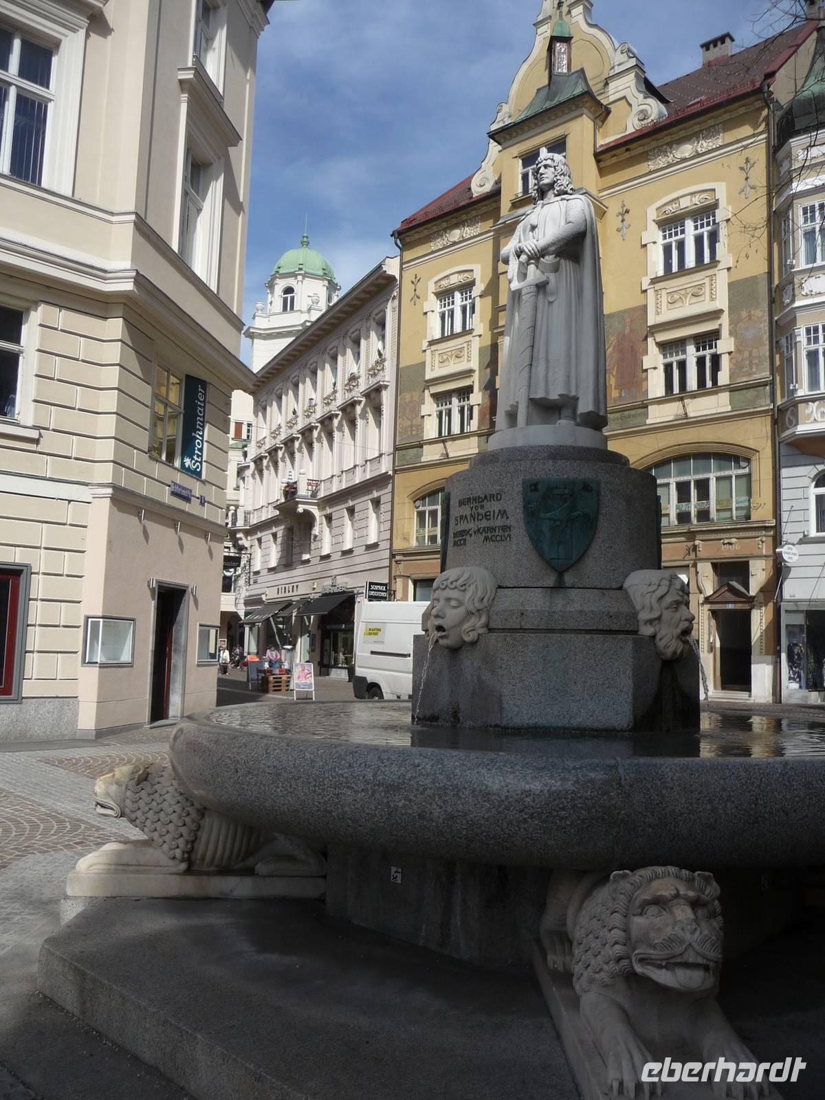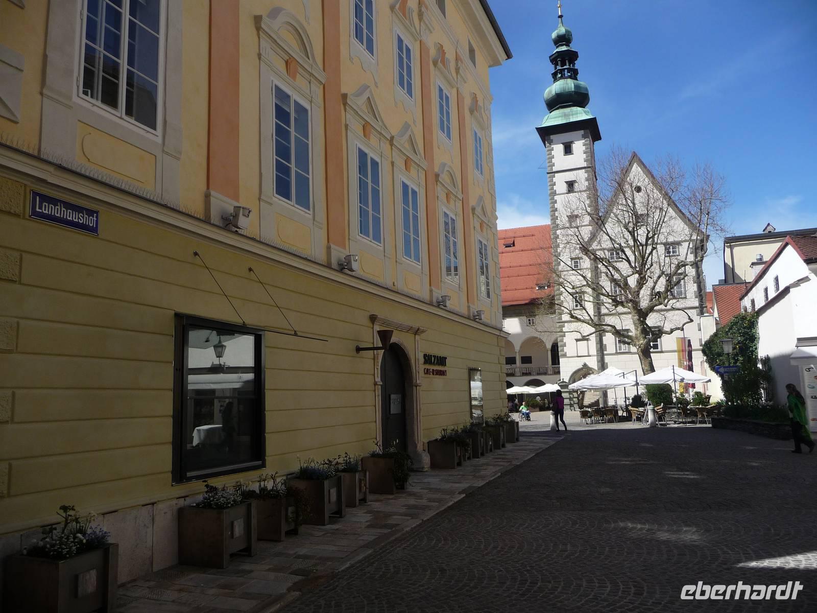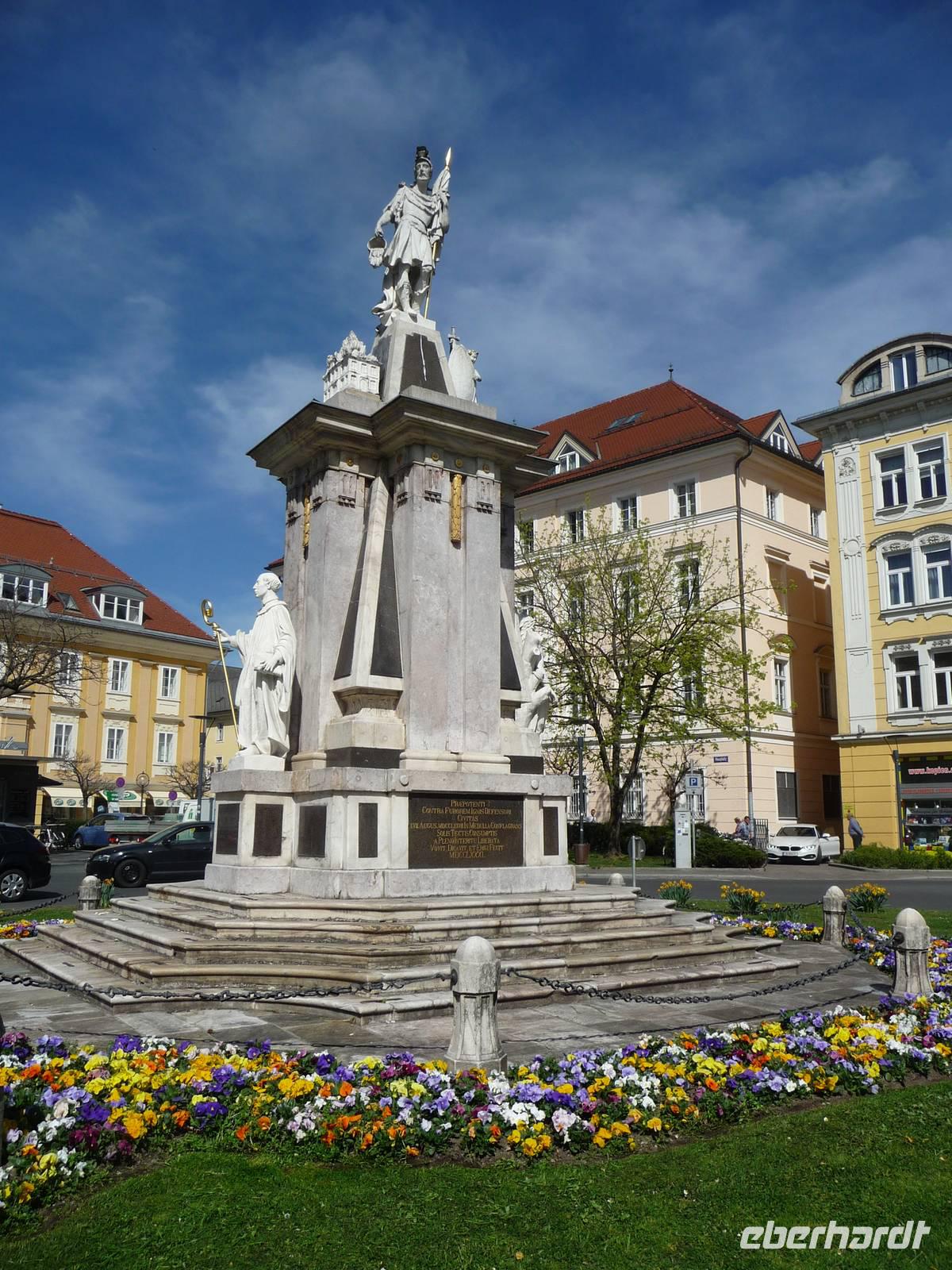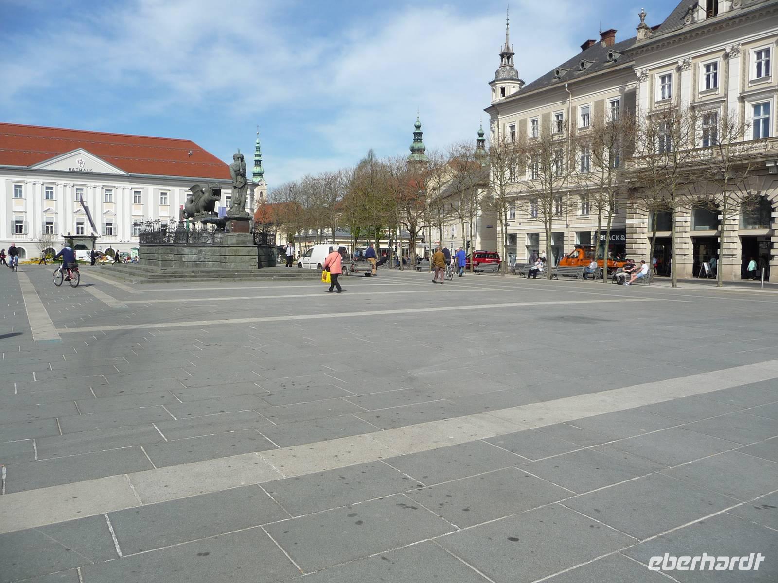 Durch die Wienergasse, eine Geschäftsstrasse mit sehr schönen Altbauten aus dem 16./17.Jh., geht es weiter zum Alten Platz, dem Kern der Innenstadt. Schließlich erreichen wir den Neuen Platz, in dessen Mitte das Wappentier der Stadt steht, der Lindwurm als Erinnerung an die Sage der Gründung der Stadt an der "Furt der Klagen". Auf der Westseite des Neuen Platzes ist das erste Denkmal der "Kaiserin" Maria Theresia in Österreich im Jahre 1764 errichtet worden.