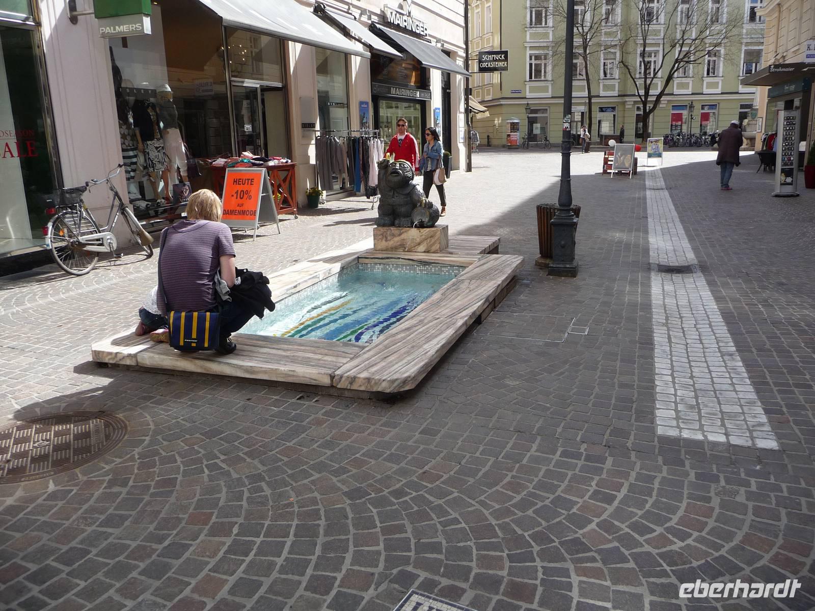Einwohner groß. Besonders schön der Hauptplatz, der auf 200m Länge wunderschöne Architektur zu bieten hat. Neben einer Pestsäule von 1715 und zwei Brunnen, dem Vogelweidebrunnen und dem Schlüsselbrunnen, ragt beonders das spätgotische Rathaus mit einer aufwendigen Fassadengestaltung hervor. Wer Muße hatte, konnte sich auch noch den Ernst-Fuchs-Palast von außen betrachten, ein Werk des fantastischen Realismus, einer Wiener Kunstrichtung aus dem 20.Jh.