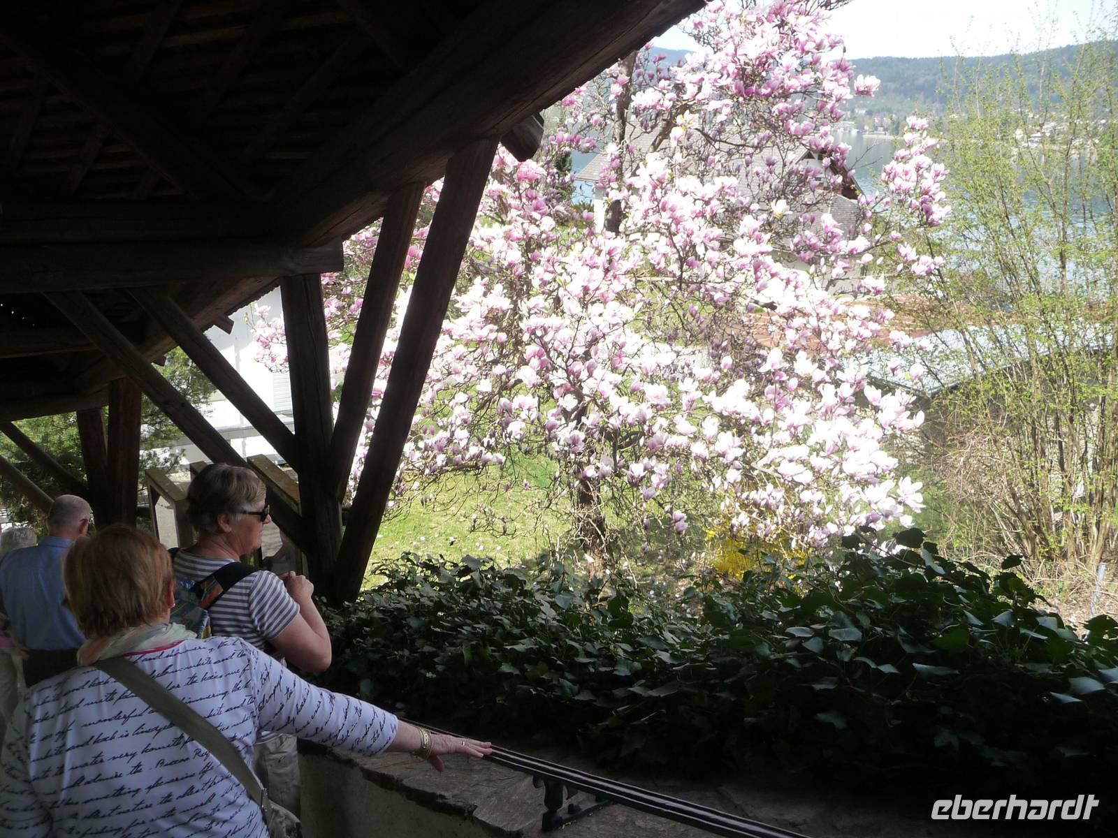 Wir lassen Klagenfurt hinter uns und fahren an den Wörthersee, wo wir auf der Halbinsel Maria Wörth einen Spaziergang zur gotischen Wallfahrtskirche unternehmen. Es ist Frühling, die Magnolien sind erblüht und wir genießen bei strahlender Sonne die wunderbare Umgebung am Wörthersee. Automatisch fällt einem das Operettenlied ein "Du bist die Rose, die Rose vom Wörthersee ...".