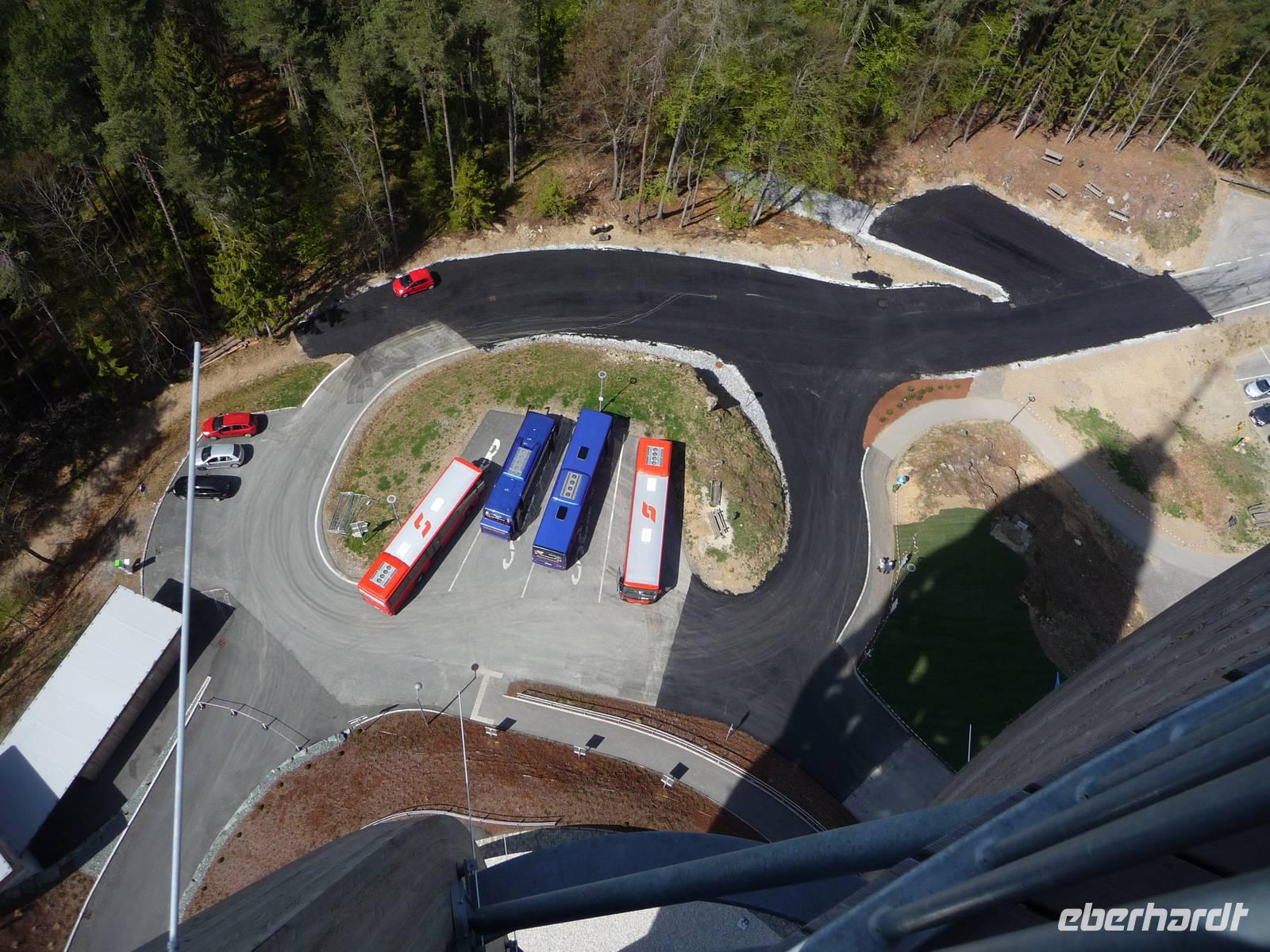 Hinauf, wie nun auch wieder hinunter, kamen wir mit einem Lift, den mancher unserer Gäste mit Skepsis ob seines windigen Aussehens betrachteten. Die Skepsis war unnötig, immer zu Siebent wurden wir glänzend befördert.