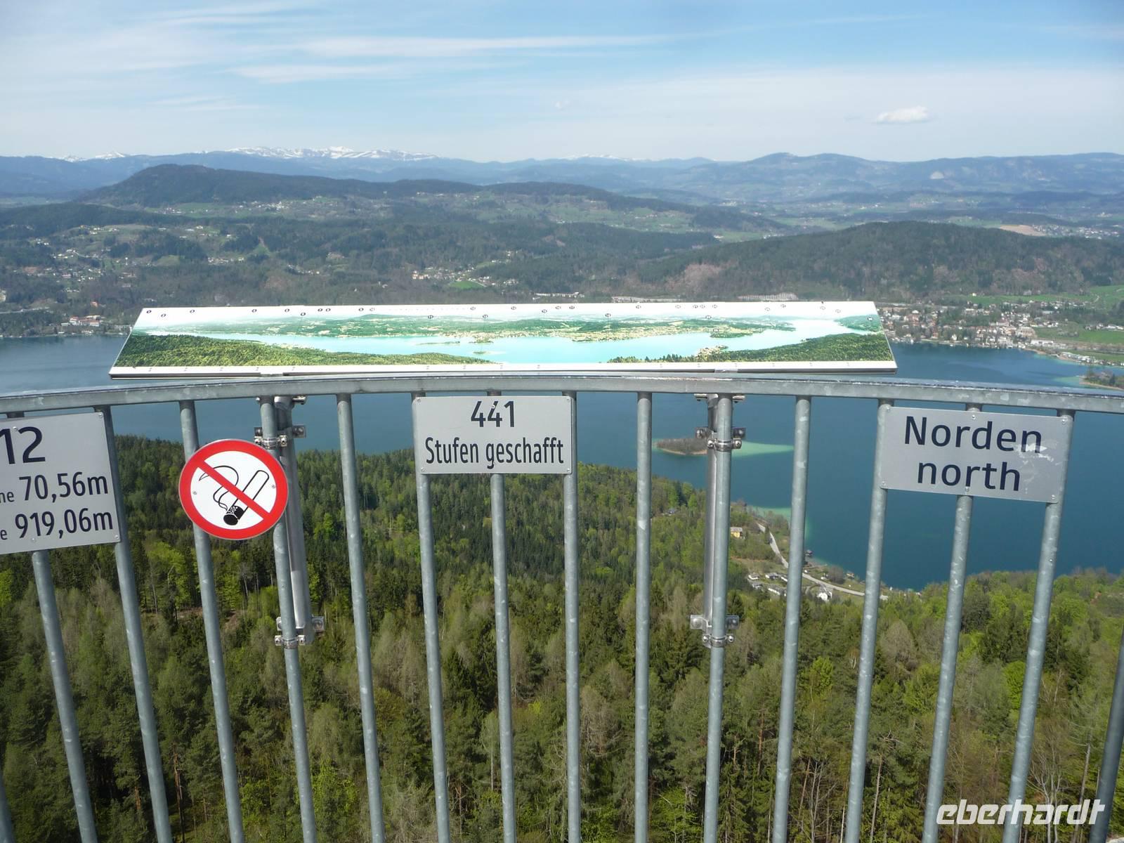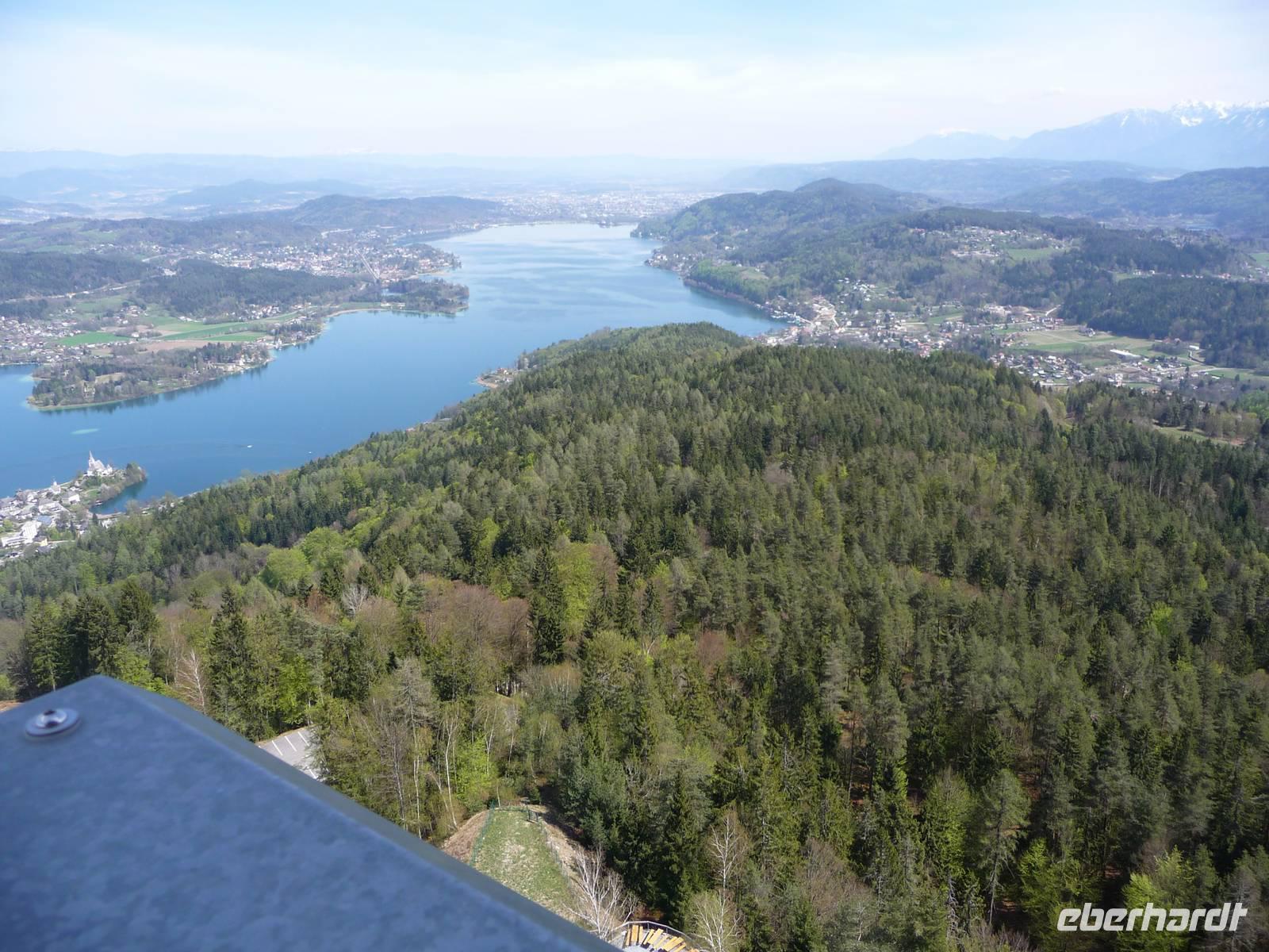 Ein Höhepunkt im wahrsten Sinne des Wortes ist anschließend der Besuch des vor zwei Jahren eröffneten Pyramidenkogels im Seental Keutschach. Mit dem Lift geht es hinauf zur Aussichtsplattform, von wo aus man nun in 905 m Höhe einen fantastischen Ausblick auf die Kärntner Seenlandschaft genießen kann.