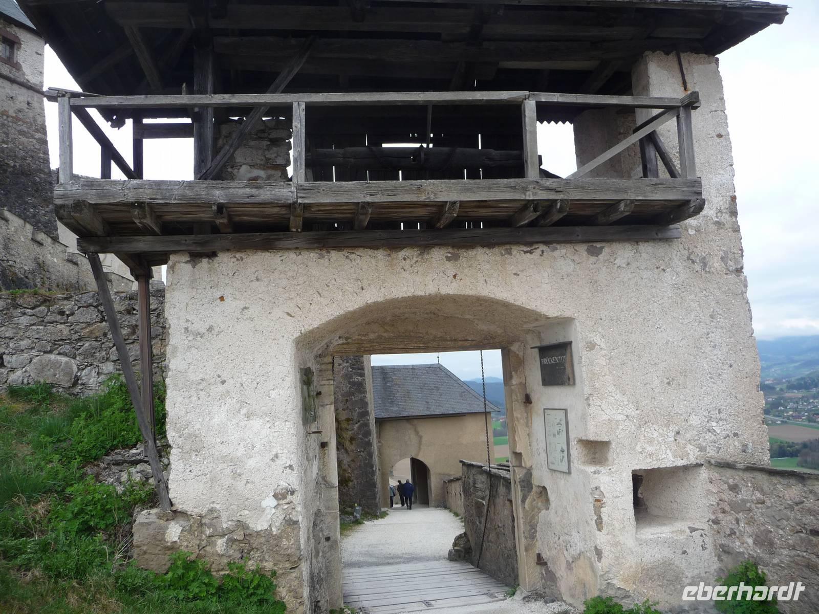 Nächstes Ziel ist die Burg Hochosterwitz. Die weithin sichtbare Burg steht auf einem 185m hohen Dolomitfelsen, sie wurde bereits 860 erstmals erwähnt. Wesentlich dafür, dass die Burg niemals eingenommen werden konnte, sind die 14 Torbauten, zum Teil mit Zugbrücken versehen, die man überwinden mußte, um in die Burg zu gelangen.