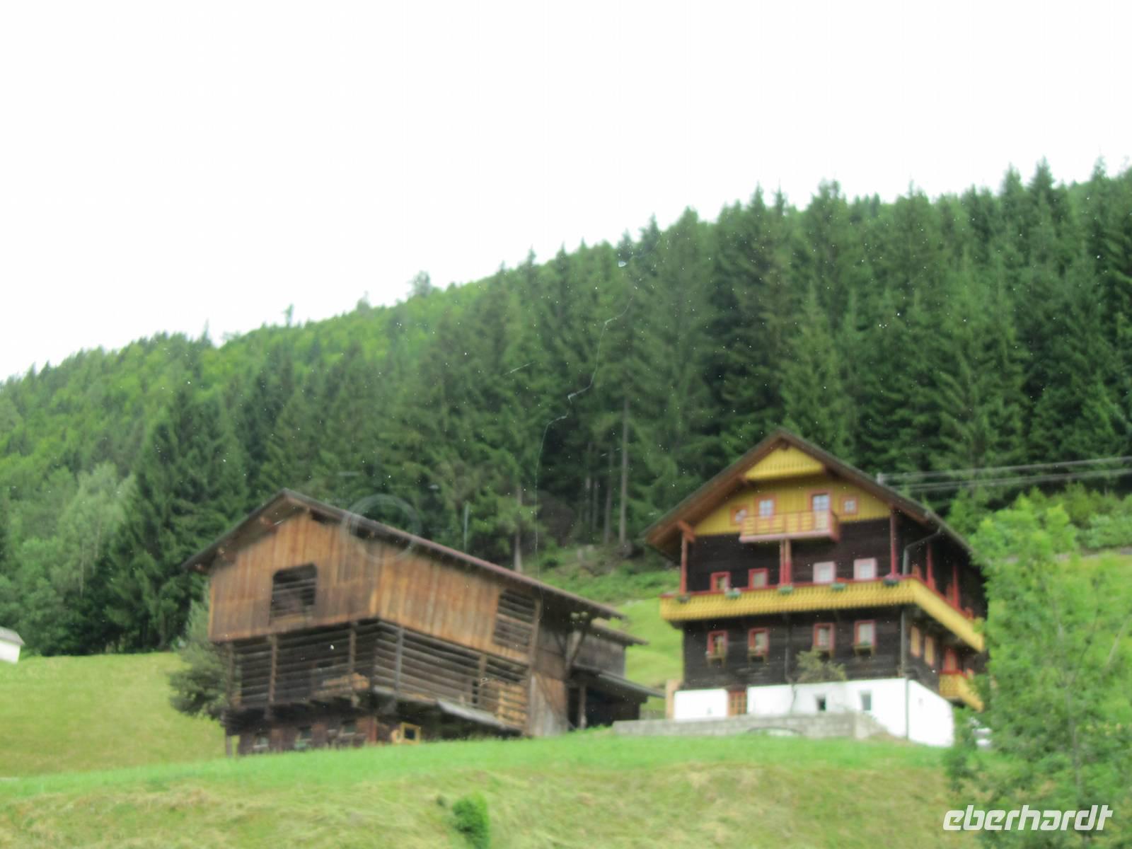 Auf unserem heutigen Ausflug begleitete uns Hotelchef Peter persönlich in das Lesach-Tal. Dieses Tal liegt eingebettet zwischen den Karnischen Alpen im Süden und den Lienzer Dolomiten im Norden im südwestlichsten Teil Kärntens an der Grenze zu Osttirol. In das doch noch etwas verschlafene Tal führt nur eine schmale Serpentinenstraße. Doch nach jeder Kurve stockte uns der Atem über das schöne Tal und die sich immer wieder veränderten Landschaft und wunderschönen Ausblicken. Das Lesach-Tal wurde im Jahr 1991 auf der Ferienmesse in Stuttgart zu "Europas umweltfreundlichster und naturbelassenster Alpengemeinde" ausgezeichnet. Das historische Zentrum des Tales ist Maria Luggau, gleichzeitig das religiöse Zentrum des Tales und ein vielbesuchter Wallfahrtsort. Dort werden wir schon von einer Bäuerin erwartet. Sie erzählte uns über das Leben im Tal von damals und heute. Die Menschen hier hatten es nicht einfach und mussten für ihren Lebensunterhalt hart arbeiten. Wir begannen unseren Rundgang mit dem Besuch der Mühlen: die 5 alten Wassermühlen werden noch immer zum Mahlen verwendet. Im Mühlenmuseum gibt es bäuerliches Werkzeug zu sehen und einen selbstgebrannten Obstler. Die Brechelstube und der Wasserbetrieb sind ebenfalls sehenswert. Eine der Mühlen war noch im Betrieb und wir konnten den Mahlvorang beobachten. Der Müller, ein typisches Original der Vergangenheit, beantwortete unsere Fragen. Wir liefen über herrlich blühende Almwiesen und besichtigten die Marienwallfahrtskirche im ehemaligen Servitenkloster. Die Runde schloss sich mit dem historischen Dorf (Malerei und Baukultur) und dem Besuch im Bauernladen, wo 60 Bauern ihre Produkte anbieten. Wir fuhren weiter durch das Tal und erreichten Osttirol. Doch bevor es zurück zum Weissensee ging besuchten wir noch den Werkseinkauf von Loacker, einem Hersteller der vorrangig Waffeln produziert.