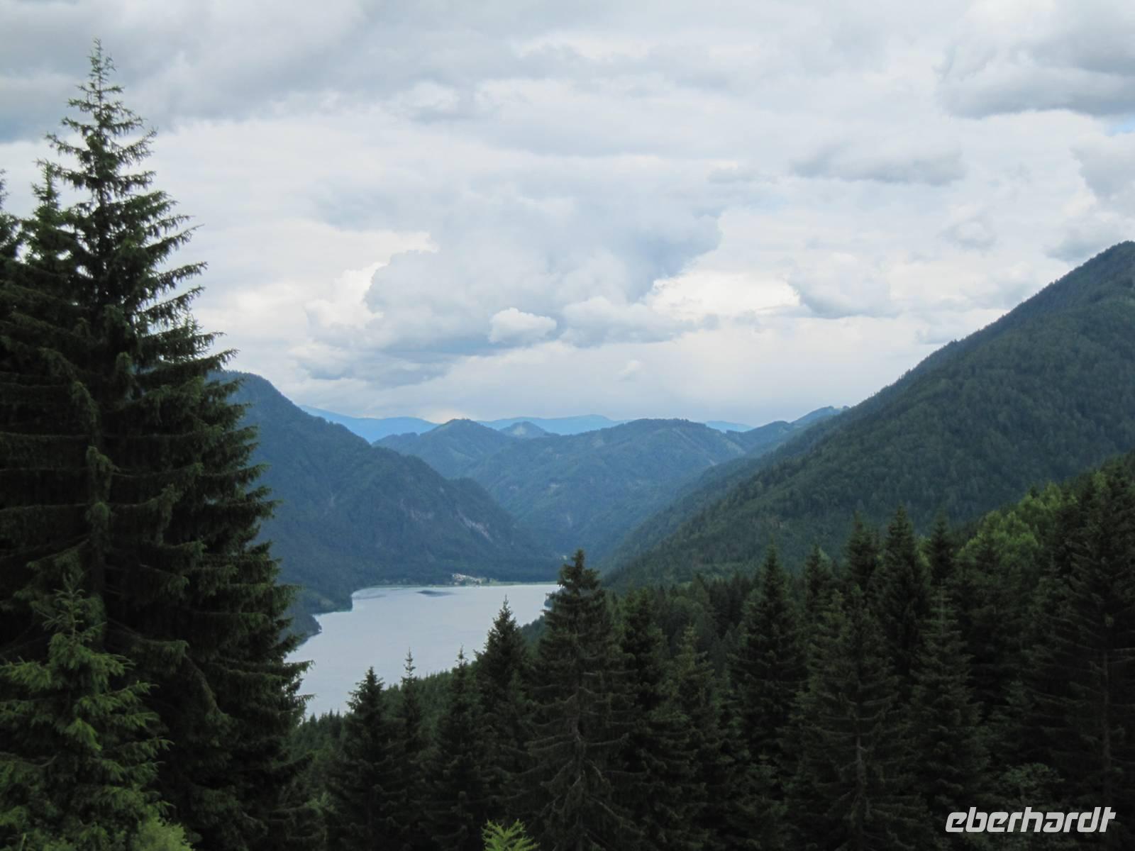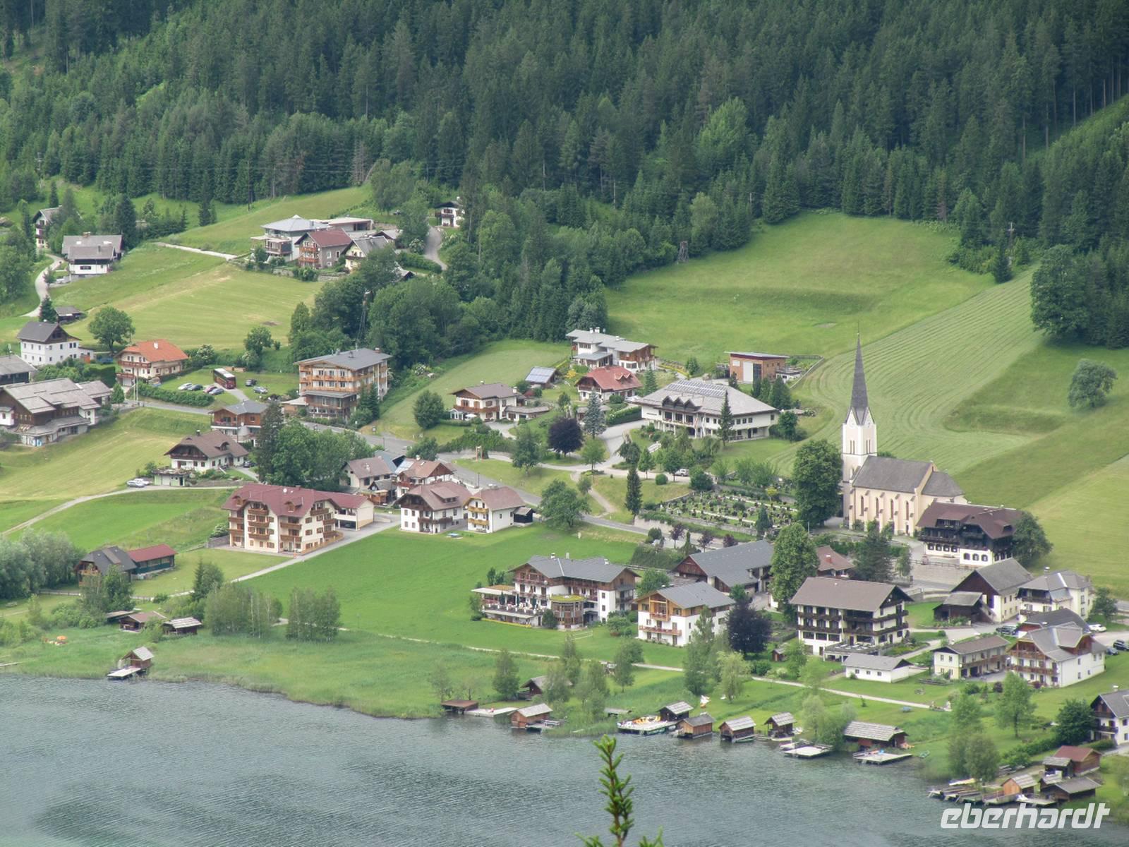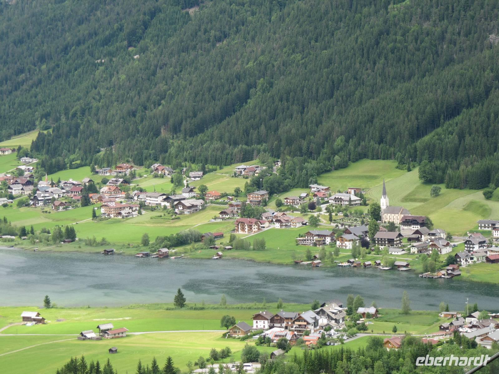 Heute fuhren wir zum Nassfeld. Nach einem kurzer Abstecher zum Presseger See erreichten wir über die Paßstraße das Nassfeld und besuchten dort eine Käserei. Nach den interessanten Ausführungen de Senners verkosteten die wir in der Hütte die verschiedenen Käsesorten. Zurück am Weissensee wartete schon ein Schiff auf uns. Die Sonne lacht und wir besteigen das Schiff für unsere Rundfahrt auf dem Weissensee. In einer Seehöhe von 930 m erstreckt sich der Weissensee im Gebiet der Gailtaler Alpen zwischen dem Drau- und dem Gailtal. Mit einer Länge von 11,6 km, der größten Breite von 960m, der tiefsten Stelle mit 99m und einer Fläche von 6,5 km² ist der Weissensee der viertgrößte Kärntner See. Das günstige Klima unterstützt eine einzigartige und reichhaltige Flora. Zwei Drittel des Seeufers sind vor allem im Ostteil des Sees unverbaut und naturbelassen. Im Jahr 2007 wurde der Weissensee zum Naturpark erklärt. Zu einer Besonderheit zählt, dass es keine Straßenverbindung zwischen dem West- und dem Ostufer und somit zwischen den beiden Naturparkgemeinden gibt. Der Kapitän gab uns Informationen und so erfuhren wir auch wie der See zu seinem Namen kam. Er leitet sich von seinem weißen, hellen Rand ab, der ihn umgibt. Der Kalkuntergrund schimmert in Ufernähe bis an die Oberfläche durch. Der Weissensee wurde auch als einer der ersten Kärntner Seen ringkanalisiert. Seit dem Jahre 1957 besteht ein generelles Motorbootfahrverbot. Über 2000 Sonnenstunden sowie Wassertemperaturen von bis zu 24°C laden zum Baden ein.