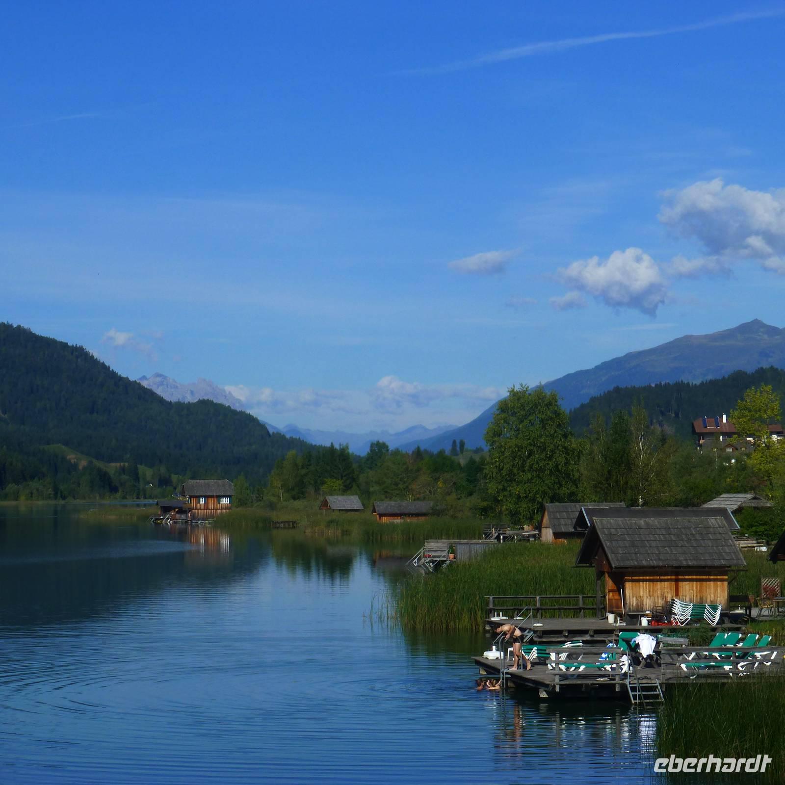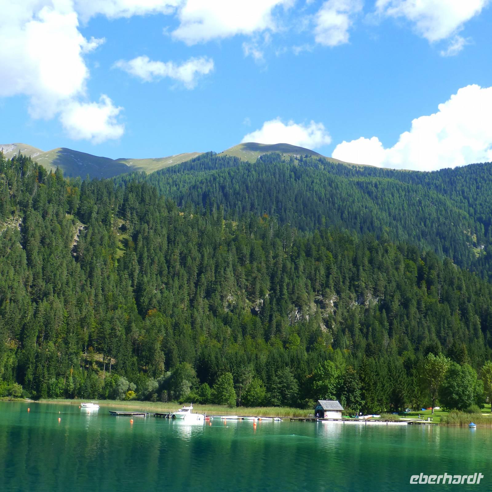 Natur pur! In einer unberührten Umgebung, abseits verkehrsreicher Landstriche, empfiehlt sich der der höchste Badesee der Alpen. Unverbaute Uferzonen geben dem unter Naturschutz gestellten Weissensee