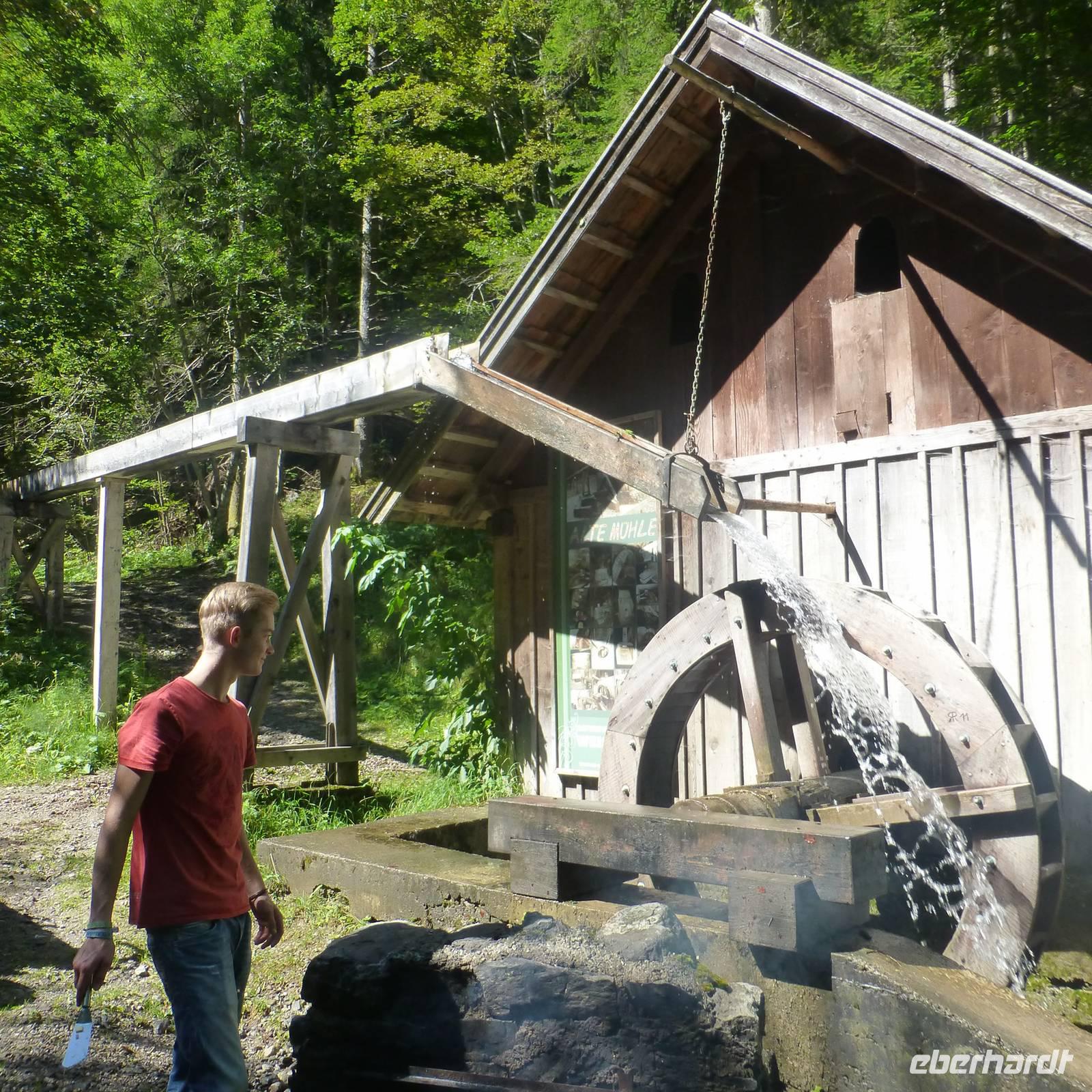 Heute entdeckten wir mit Oma Friedel den Weissensee. Gemeinsam spazierten wir entlang des Sees und Oma Friedel erklärte uns einige Kräuter und ihre Anwendung. Auch die eine oder andere Geschichte über Ihr Leben erheiterte unser Gemüt. Die Sonne lacht und wir besteigen das Schiff für unsere Rundfahrt auf dem Weissensee. In einer Seehöhe von 930 m erstreckt sich der Weissensee im Gebiet der Gailtaler Alpen zwischen dem Drau- und dem Gailtal. Mit einer Länge von 11,6 km, der größten Breite von 960m, der tiefsten Stelle mit 99m und einer Fläche von 6,5 km² ist der Weissensee der viertgrößte Kärntner See. Das günstige Klima unterstützt eine einzigartige und reichhaltige Flora. Zwei Drittel des Seeufers sind vor allem im Ostteil des Sees unverbaut und naturbelassen. Im Jahr 2007 wurde der Weissensee zum Naturpark erklärt. Zu einer Besonderheit zählt, dass es keine Straßenverbindung zwischen dem West- und dem Ostufer und somit zwischen den beiden Naturparkgemeinden gibt. Der Kapitän gab uns Informationen und so erfuhren wir auch wie der See zu seinem Namen kam. Er leitet sich von seinem weißen, hellen Rand ab, der ihn umgibt. Der Kalkuntergrund schimmert in Ufernähe bis an die Oberfläche durch. Der Weissensee wurde auch als einer der ersten Kärntner Seen Ring kanalisiert. In Naggl gehen wir von Bord. Ein kurzes Stück mit dem Bus und nach einem kleinen Spaziergang durch den Wald erreichten wir eine alte Mühle. Oma Friedel und Lukas erwarteten uns schon. Ein romantischer Platz zur Mittagspause. Das Feuer war schon angezündet und uns wurde eine leckere Frigga zubereitet. Bei Bier oder Wein schmeckte es besonders gut. Entlang des Weissensee spazierten wir zurück zum Hotel.