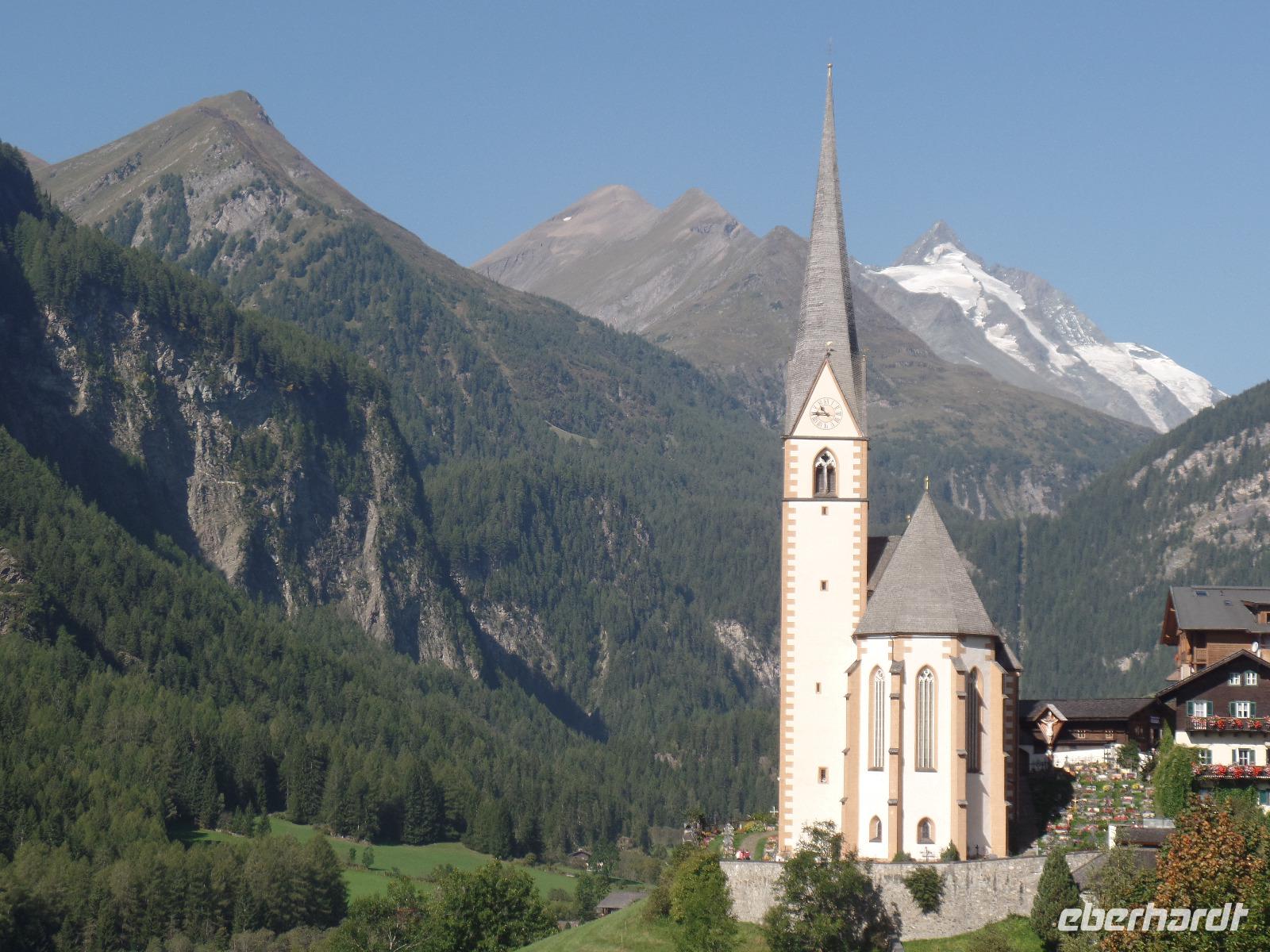 Heute sollte der schönste Tag am Großglockner werden. Also fuhren wir sehr optimistisch wieder durch das Drautal über den Iselsberg in den Nationalpark Hohen Tauern. Vorbei am Wasserfall „Jungfernsprung" und durch das Obere Mölltal erreichten wir Heiligenblut. Das bekannteste Gebirgsdorf in Kärnten musste noch auf unseren Besuch warten. Schnell ein Gruppenfoto vor der bekannte Kirche in Heiligenblut und dem Großglockner bei blauen Himmel und Sonnenschein. Von Heiligenblut führte uns die berühmteste Alpenstraße über mehrere Serpentinen zur Franz Josef Höhe. Wir konnten es gar nicht glauben, das schönste Wetter was man sich vorstellen kann. Wir genossen den Blick auf den Großglockner, den höchsten Berg Österreichs (3.798 Meter) und die Pasterze. Der Gletscher hat sich in den letzten Jahren sehr verändert. Einige Murmeltiere ließen sich auch Blicken. Nach einer kleinen Wanderung war die Swarowski Aussichtswarte unser Ziel. Leider wurden keine Steinböcke gesichtet. Unsere Mittagspause verbrachten wir auf dem Parkplatz an der Glocknerwiese. Für die Fotographen zeigten sich nun auch ein paar Wölkchen. In Heiligenblut spazierten wir durch den Ort und besuchten die Bergkirche und den Bergfriedhof. Die Rückfahrt führte uns durch das Untere Mölltal vorbei an der Reißeck- und Kreuzeckgruppe und das Drautal zurück zum Weissensee.