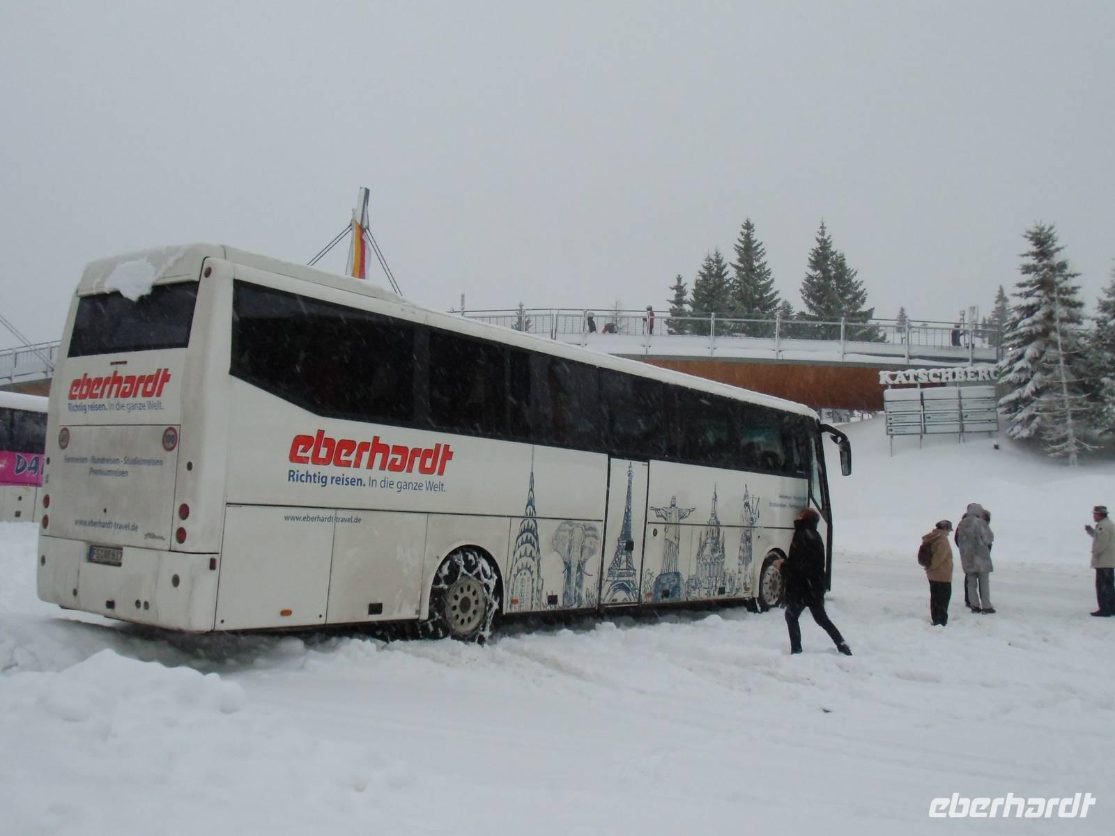 Zunächst warfen wir einen Blick auf die römischen Ausgrabungsstätte "Arguntum" mit ihren zwei Jahrtausende alten Mauerresten und besuchten dann in Rangersdorf die "Zeitfabrik", ein in einem alten Kärntener Bauernhaus untergebrachtes Museum, in dem viel über den Alltag der alpenländischen Bewohner in früheren Zeiten zu erfahren war. Der weitere Weg führte uns dann an Gmünd in Kärnten vorbei, einer der historisch interessantesten Städte Österreichs, hinauf zum Katschberg. Hier ging der Regen in Schneeregen und Schnee über und machte die Straße im Nu eiseglatt. Unsere unerschrockene Busfahrerin Stefanie Möbius wuchs beim Anlegen der Schneeketten über sich selbst hinaus. Auf dem Katschberg selbst standen wir dann in dreißig Zentimeter Neuschnee. Überraschung am Abend im Hotel: traditionell erschien der "Kramputz" mit furchterregender Maske zum Weihnachtskehraus.