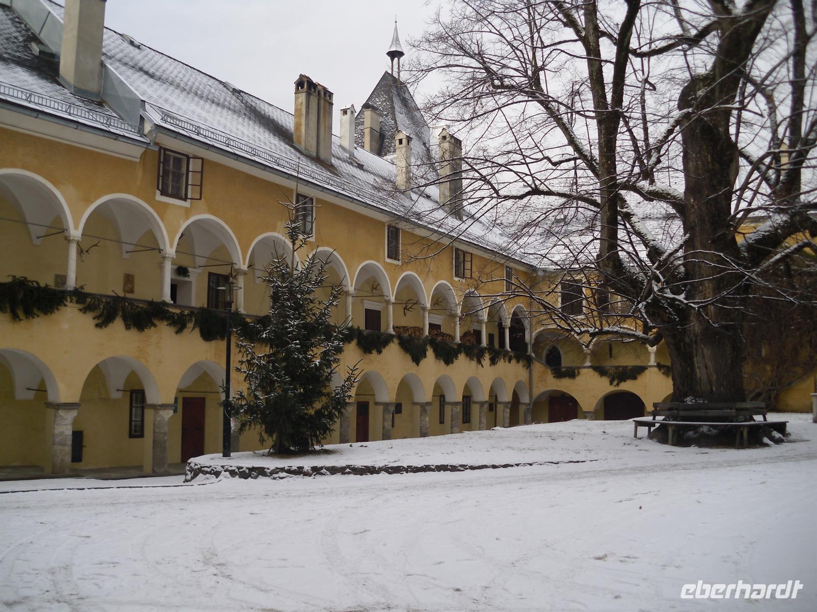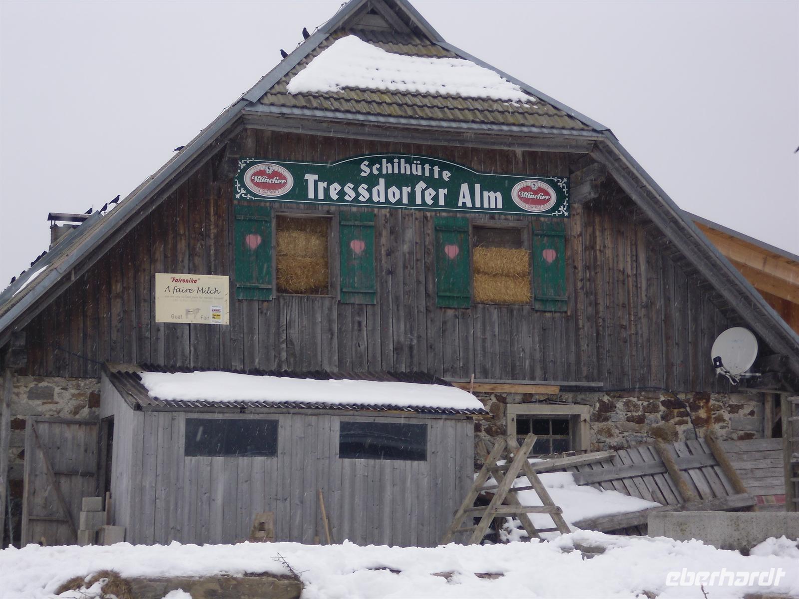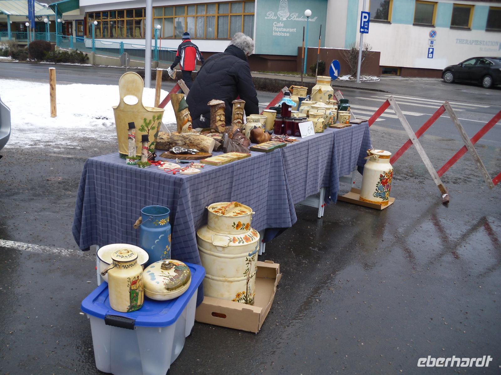 Nach einem sehr guten Frühstück geht heute Morgen unsere Fahrt nach Tröpolach. Wir parken unseren Bus in Nähe der Liftstation ab und zu Fuß gehen wir bis zur Liftstation der Millenniumbahn. Ingrid hat für alle Karten organisiert und nun geht es mit etwas Einsatz der Ellenbogen hinein in die umlaufende Bahn. Wir fahren zunächst bis hinauf zur Endstation auf 1919 m ü. d. M. Ja und hier werden wir vom Flockenwirbel in weiß empfangen ? es schneit und das freut alle, Schnee ist auch hier Mangelware geworden. Nach Schauen, Fotografieren und klettern zum Gipfelkreuz geht es für uns zur Tressdorfer Alm, hier hat das Reisebüro Eberhardt Plätze für alle reservieren lassen. Bei Jagertee, Schnitzel mit Pommes und Suppe und Salat genießen wir unsere Mittagseinkehr. Gestärkt verlassen wir die Höhe und mit der Millenniumbahn fahren wir hinab zur Talstation und in kurzer Zeit sind wir zurück am Bus. Hier wartet schon Peter, unser Buschauffeur, auf uns mit Kaffee, Glühwein und Lebkuchen. Angekommen in Weißensee gibt es doch