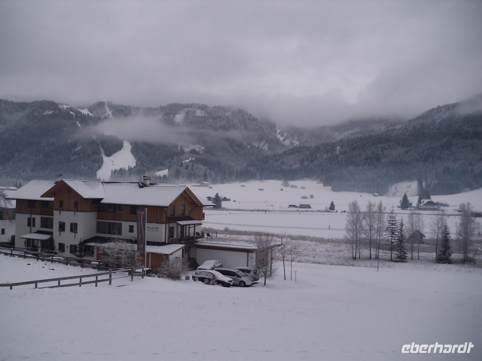 Sterne Bus mit letzter Kaffee Pause in Eben haben wir bis zu unserer Ankunft in Weißensee im Arlberger Hof. Nach dem Zimmerbezug und dem Bekanntmachen mit unseren Weihnachtsgästen treffen wir uns zum gemeinsamen Abendessen. Peter, der Chef des Hauses, stellt uns seine Mitarbeiter vor. Nach dem sehr gutem Essen treffen wir nur Wenige zum Verdauungsspaziergang im Ort und am See. Heute wird nicht spät zu Bett gegangen, denn so ein Anreisetag ist anstrengend und macht müde. Die gute Winterluft lässt uns alle schnell in die Kissen fallen.