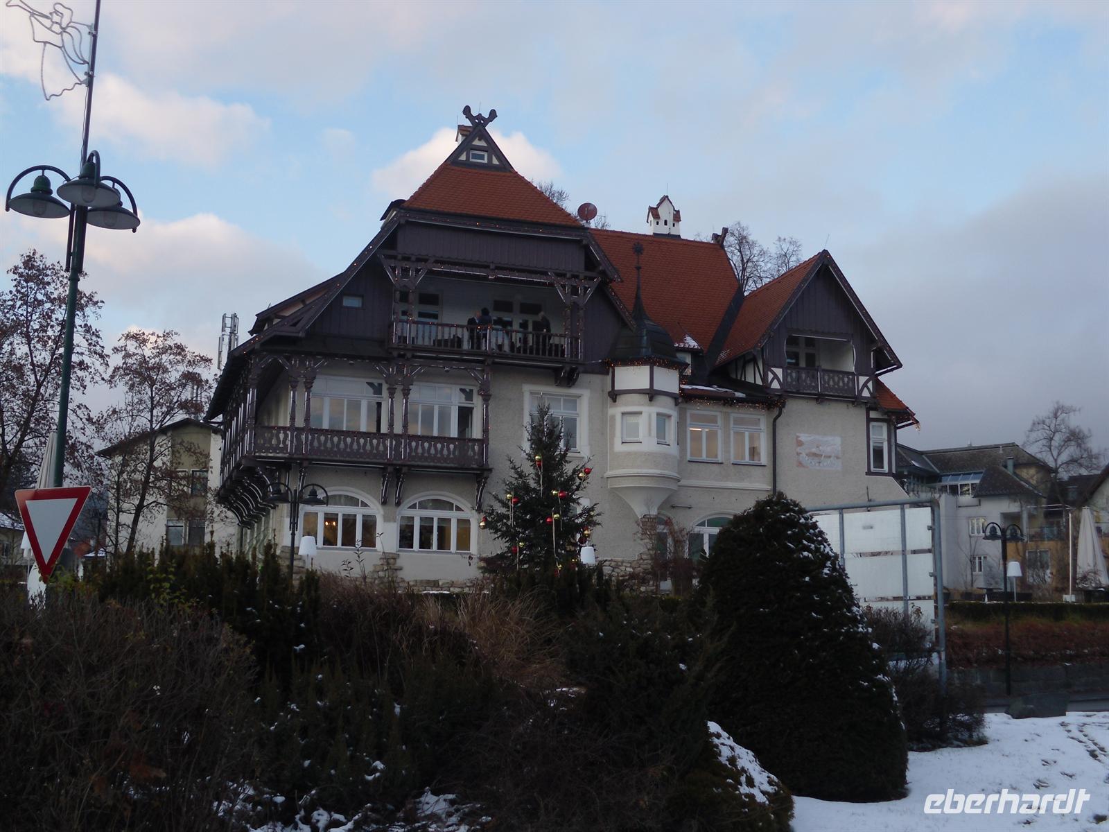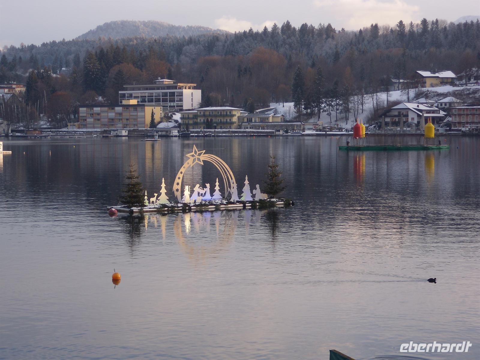 einem zünftigen Obstler überrascht werden, ja Eberhardt travel gibt uns Gästen einen aus. Gelegenheit für ein obligatorisches Gruppenbild gibt es hier oben auch. Am Nachmittag bummeln wir noch in Velden am Wörthersee, das Casino und auch das Schloss am Wörthersee schauen wir uns näher an. Peter erwartet uns am Bus mit Kaffee und Glühwein. Gut gestärkt treten wir die Rückfahrt nach Weißensee an, hier erwartet uns am Abend wieder ein sehr schmackhaftes Menü. Eine Veranstaltung am See, das Perchten ? Gestalten mit furchterregenden Masken und am Rücken mit großen Glocken, sollen böse Geister des Winters austreiben, besuchen viele von uns am Abend. Ein herrliches Specktakel, das wir hautnah miterleben.