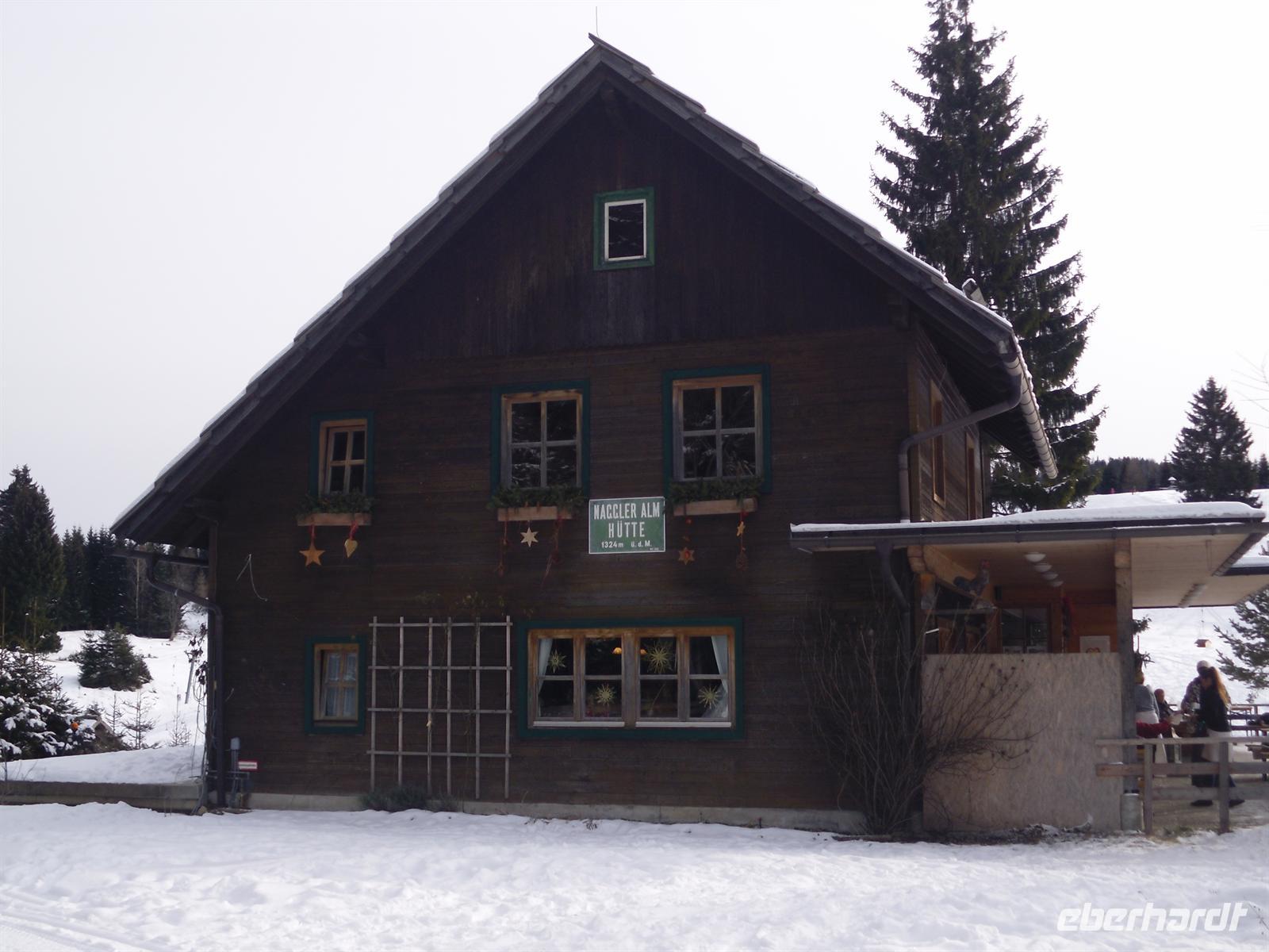 Gemeinsam mit Oma Friedel wandern wir vom Hotel aus entlang am See bis hin zur Talstation. Hier gehen wir immer zu zweit mit dem Sessellift nach Oben. Bei Sonnenschein und guter Sicht auf den Weißensee und die Bergwelt umwandern wir die Naggler Alm. Auf 1350 m Höhe bekommen wir in der Alm eine fantastische Brettl jause mit typisch Kärntner Produkten, wie Käse, Schinken und luftgetrockneter Wurst und dazu einen Obstler serviert. Vor der Hütte schießen wir noch unser Gruppenfoto mit herrlichem Blick hinüber zum Nassfeld. Gemeinsam mit Oma Friedel wandern wir bei Sonne durch den Winterwald, immer wieder schaut der zugefrorene Weißensee heraus. Oma Friedel präsentiert uns auf Wunsch einen zünftigen, Kärntener Jodler ? wir sind alle begeistert. Unterwegs treffen wir auf Schlittenfahrer, die dem