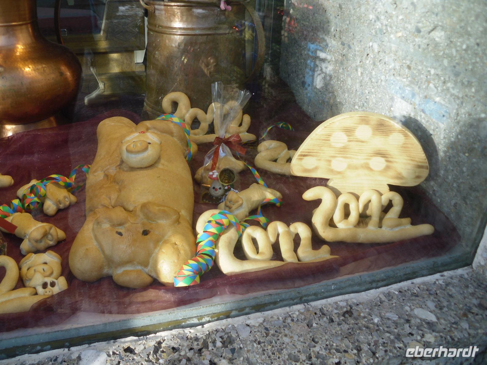 Die Masken sind geschnitzt und dazu verwendet man Kastanien, Linde oder Zirpen Holz und Anzüge aus Schaf ? und Ziegenfell tragen die Burschen und Mädchen, die in Gruppen organisiert sind.