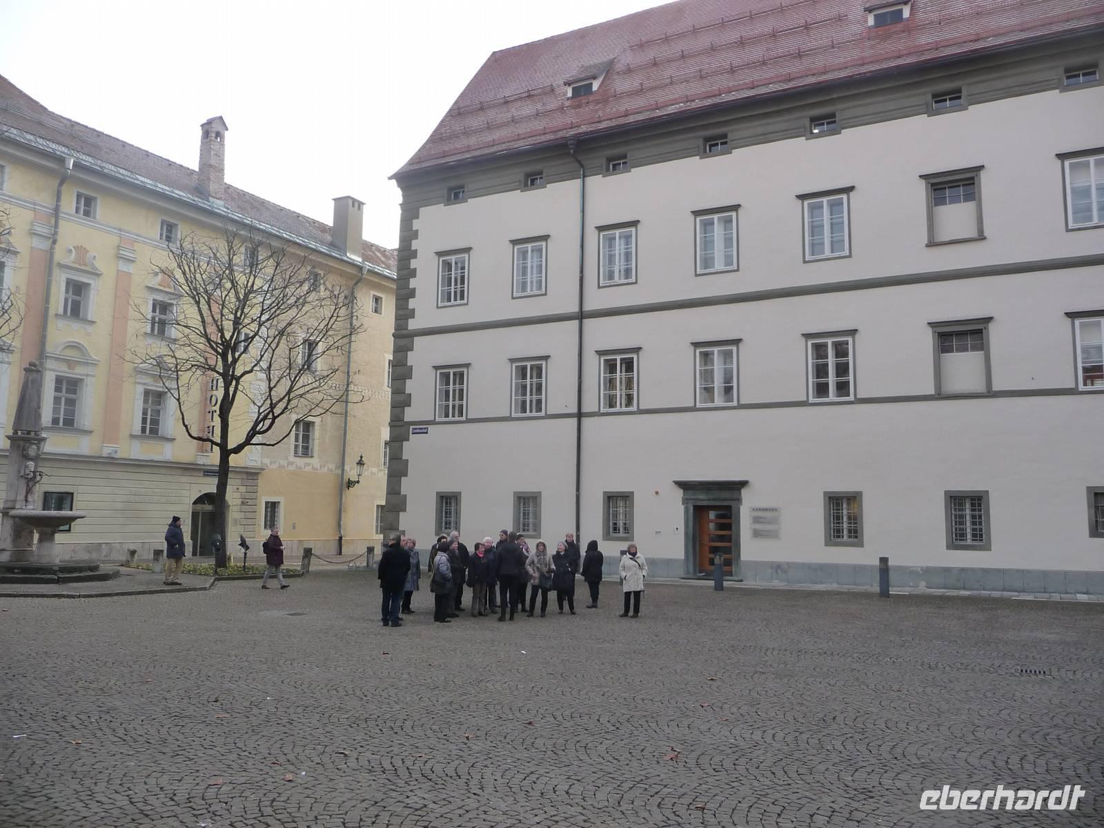 Zurück in Villach, nunmehr wieder auf 500m über Seehöhe, ist der Stadtspaziergang mit Reiseleiter angesagt. Hier lebt noch der Weihnachtsmarkt in vollen Zügen und wir begeben uns in die weit ruhigere Stadtpfarrkirche, St. Jakob, die bereits 1526 die erste protestantische Kirche Österreichs war.