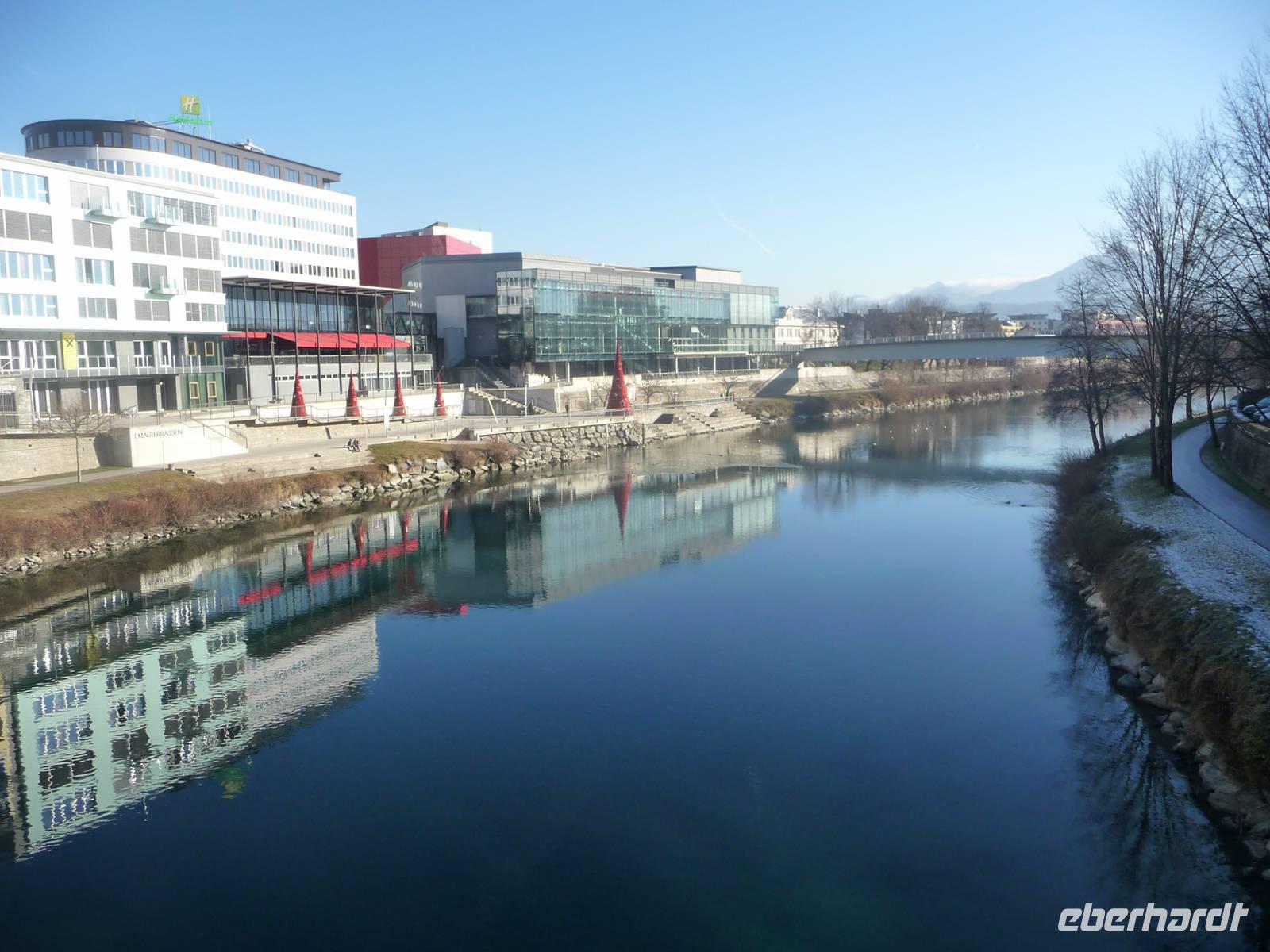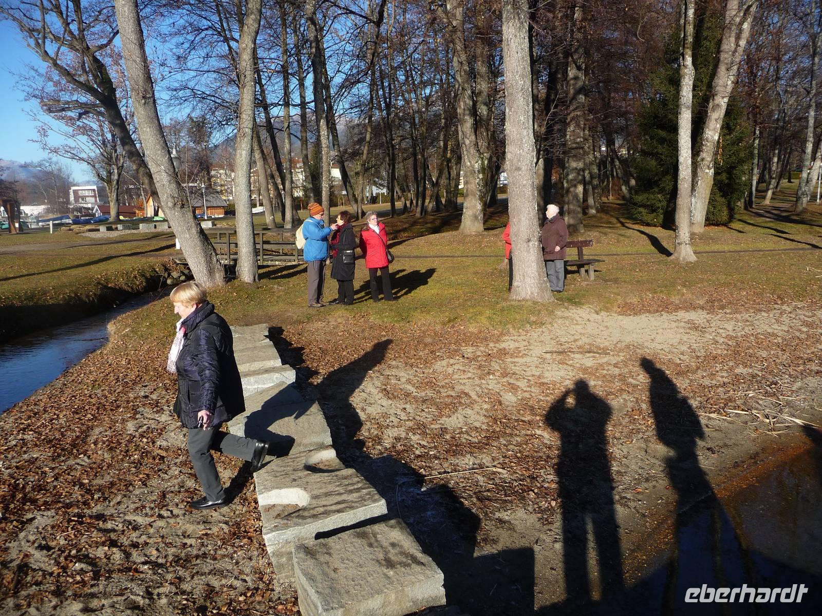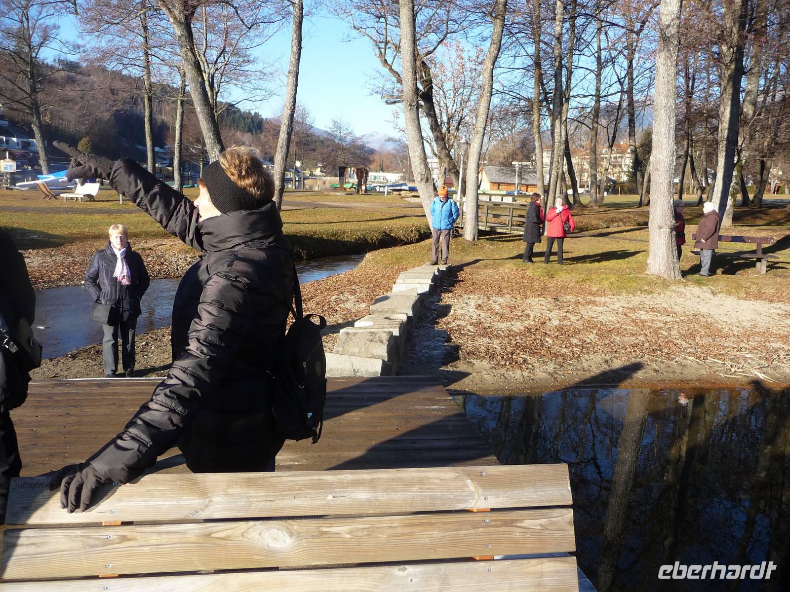 Zum Mittagessen geht es über die Draubrücke zum Brauhof. Wer wollte, konnte nun noch etwas Freizeit an der Drau mit schönem Ausblick zu den entfernt liegenden Karawanken bei weiterhin grandiosem Sonnen-Winter-Wetter genießen.