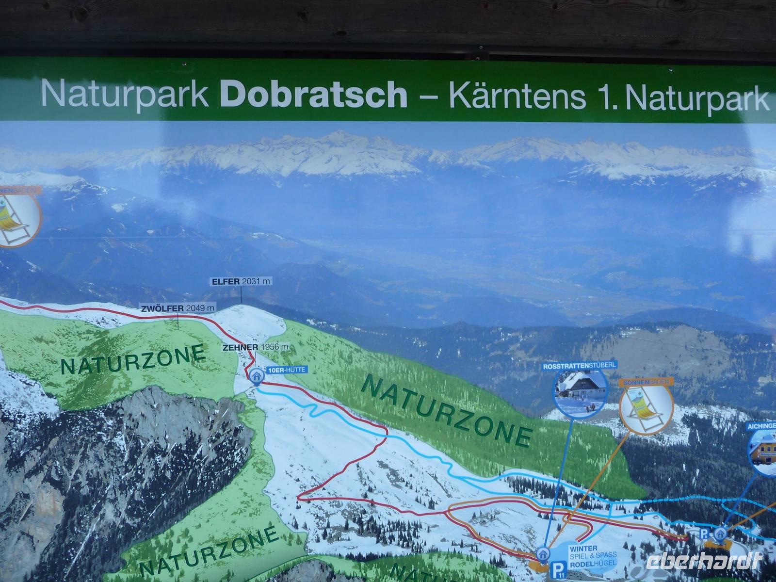 Heute geht es durchs untere Drautal nach Villach. Durch Villach hindurch fahren wir zu einer erstrangigen touristischen Attraktion, zu der über 16 km langen Villacher Alpenstrasse, die 1202 Höhenmeter überwindet (immerhin 4x Eiffelturm !) und die es erst seit 1965 gibt. Geplant war eine solche Strasse bereits 1896, da eine Auffahrt zum Aussichtsgipfel Dobratsch schon damals als eine äußerst reizvolle Überlegung zur "Hebung des Fremdenverkehrs" galt. Unterwegs fahren wir an mehreren Aussichtsplattformen vorbei, um schließlich beim höchsten Parkplatz "Rosstratte" in 1732m Höhe einen atemberaubenden Blick auf die Julischen Alpen und die Karawanken zu haben.