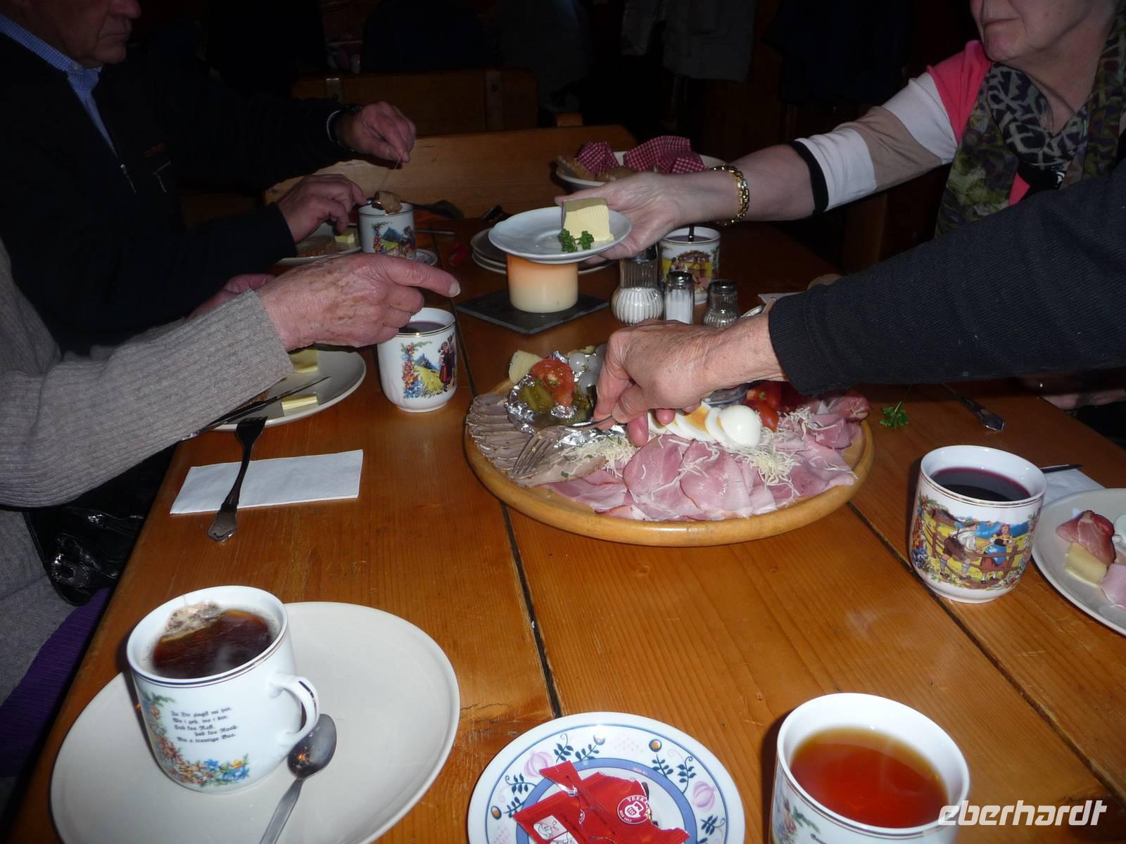 Ins Hotel zurückgekehrt erwartet uns das angekündigte gemütliche Kaffeetrinken mit ofenwarmem Apfelstrudel.
