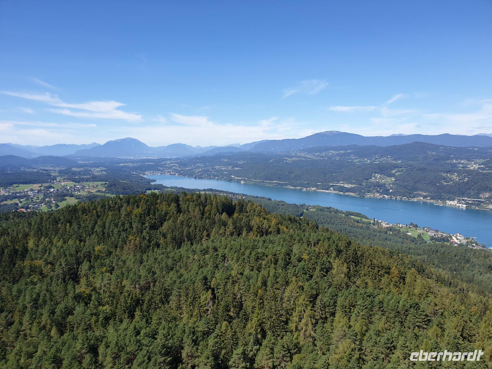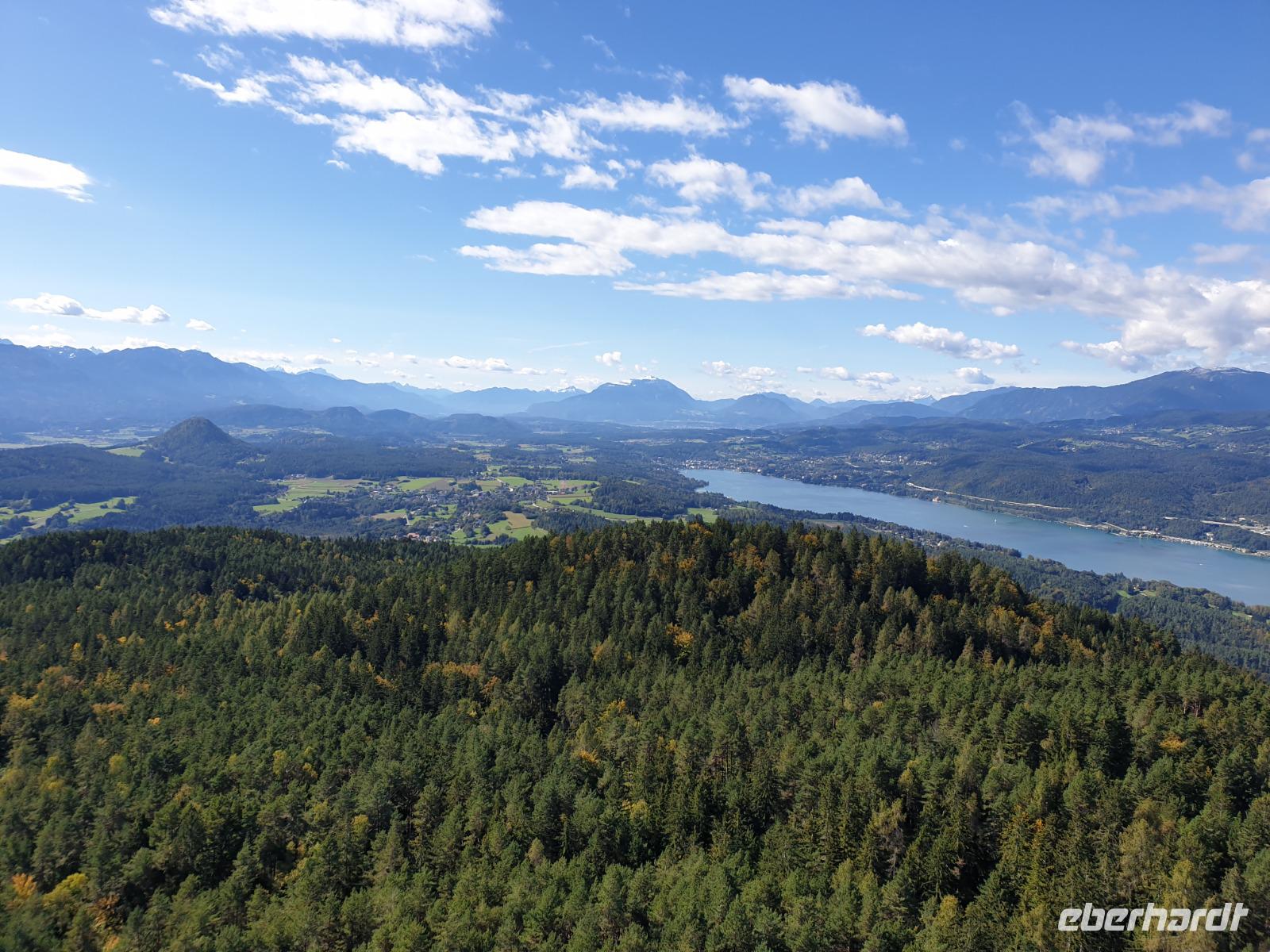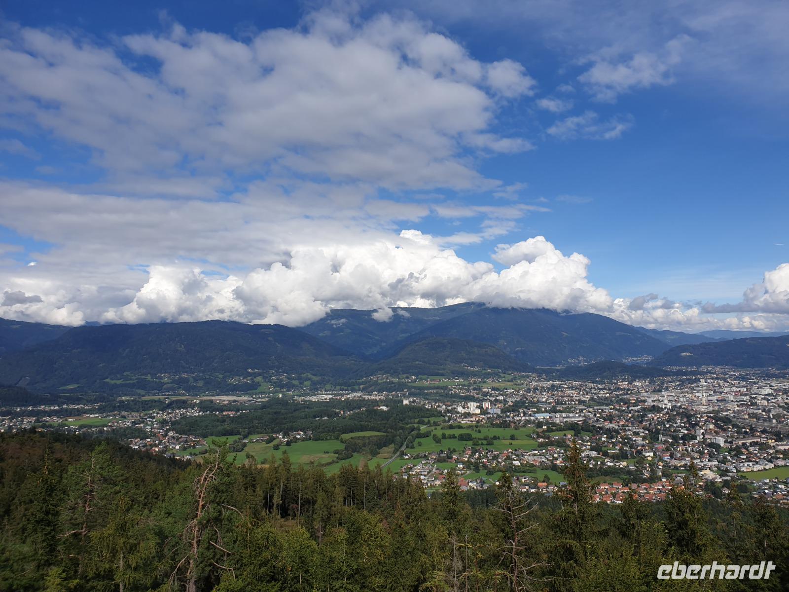 Alpe. Immer wieder wechselnde Ausblicke auf Villach, die umgebende Seenlandschaft,