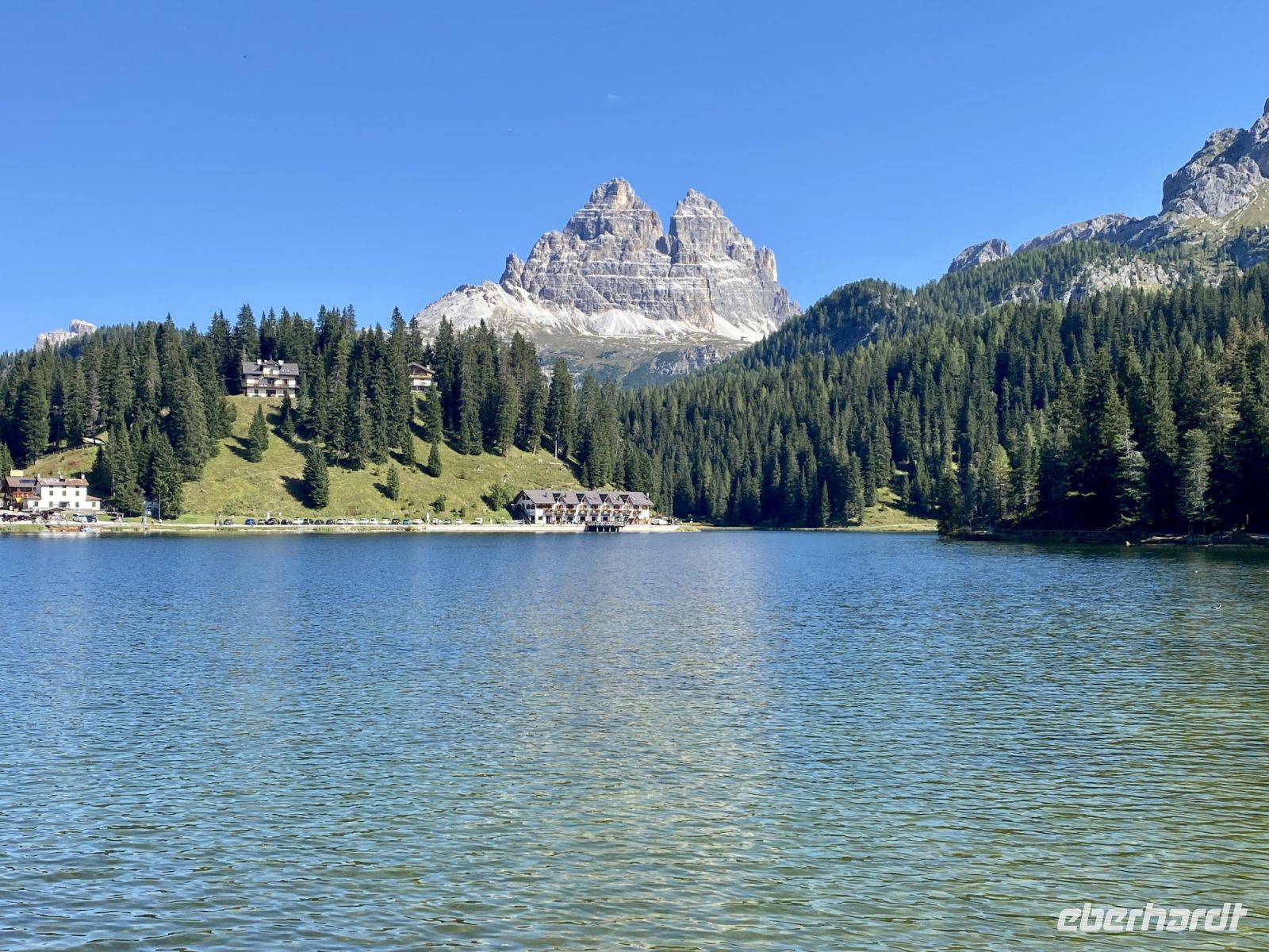 Nach einem reichhaltigen Frühstück beginnen wir heute unsere erste Erlebnistour durch das Dreiländereck. Doch bevor es losgeht lernen wir noch unsere fröhliche Reiseleiterin Christa kennen, die uns in den nächsten Tagen ihre Heimat etwas näherbringen wird. Gut gelaunt starten wir so dann in diesen Tag. Unser erstes Ziel ist der wohl bekannteste Gebirgsstock der Dolomiten – die Drei Zinnen. Sie befinden sich in den Sextner Dolomiten, die die nordöstlichste Gebirgsgruppe der Dolomiten darstellen. Die Drei Zinnen mit ihrer unverkennbaren Form bestehen aus der Großen Zinne (2999 m) in der Mitte, der Kleinen Zinne (2857 m) und der Westlichen Zinne (2973 m). Um einen guten Blick auf die Drei Zinnen genießen zu können, geht es für uns zum Misurinasee. Aber schon auf den Weg dorthin legen wir einen kurzen Fotostopp ein, um ein erstes Bild der drei Spitzen einzufangen, die als Wahrzeichen der Sextner Dolomiten im Hochpustertal gelten. Am Misurinasee angekommen genießen wir vom Ufer aus einen schönen Blick auf die legendären Zinnen, die sich auf der Wasseroberfläche des Sees spiegeln. Uns bleibt noch etwas Zeit diese Aussicht zu genießen und die ersten Postkarten zu schreiben, bevor wir zum Mittagessen aufbrechen. In einem urigen Restaurant erwartet uns eine köstliche Südtiroler Spazialität – Schlutzkrapfen. Die feinen Teigtaschen ähneln ein bisschen den italienischen Ravioli, sind hier traditionell aber mit Spinat, Topfen und Parmesan gefüllt und schmecken einfach köstlich. Mit vollem Bauch brechen wir am Nachmittag auf zu unserem letzten Highlight an diesem Tag. Es geht für uns in die Hauptstadt Osttirols, nach Lienz. Das gemütliche Städtchen besticht mit einem kleinen Altstadtkern. Neben einem Hauptplatz, auf dem sich auch die Liebburg - das heutige Rathaus – befindet, gibt es auch einige kleine Gassen und gemütliche Cafés. Bei strahlendem Sonnenschein und angenehmen Temperaturen lassen wir den Nachmittag hier bei einem Tässchen Kaffee und einem leckeren Stück Kuchen gemütlich ausklingen, bevor wir unseren Weg zurück zum Hotel antreten.