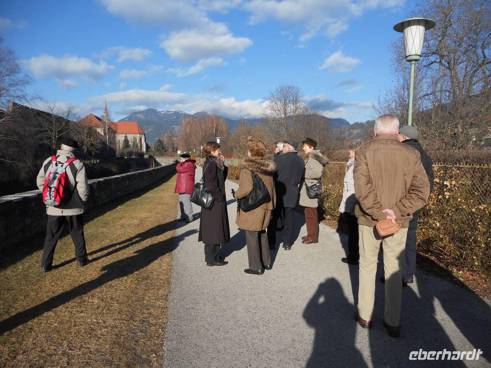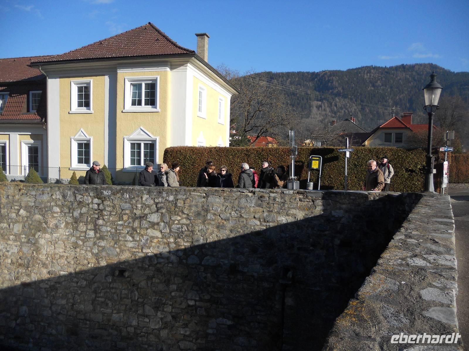 Heute geht es wieder in nördliche Richtung, zur ältesten Stadt Kärntens nach Friesach. Mit einer örtlichen Stadtführerin erleben wir die reizvolle Altstadt mit ihren vielen Türmen, Kirchen und Klöstern. In Anbetracht des mittelalterlichen Wehrgrabens, der noch heute wasserführend ist, fühlt man sich wirklich um Jahrhunderte zurückversetzt. Und bei diesen Wintertemperaturen war der Wassergraben auch weitgehend zugefroren. Im berühmten Cafè „Craigher" konnten wir dem Tortenangebot kaum wiederstehen. Zumindest selbstgemachte Schokolade konnten wir kaufen - ein weiteres gutes Geschenk für die Lieben daheim.Am frühen Nachmittag fuhren wir dann zurück, denn wer will schon das Christkind und die Bescherung verpassen? In angenehmer Atmosphäre bereiteten uns die Hausherren vom Hotel „Post" einen schönen Weihnachtsabend, mit Selbstgebackenem und mit einem Frucht-Glühwein, mit Musik und Geschichten und mit kleinen Geschenken vom Christkindl persönlich. Das anschließende 4-Gänge-Menü rundete den Abend noch bestens ab. Wer wollte, ging noch mit zur Christmette um 22.00 Uhr. Der Veldener Kirchenchor klang wirklich sehr gut, das freudig Singen hat sicher allen sehr gut getan, und der gemeinsame Heimweg ebenso.