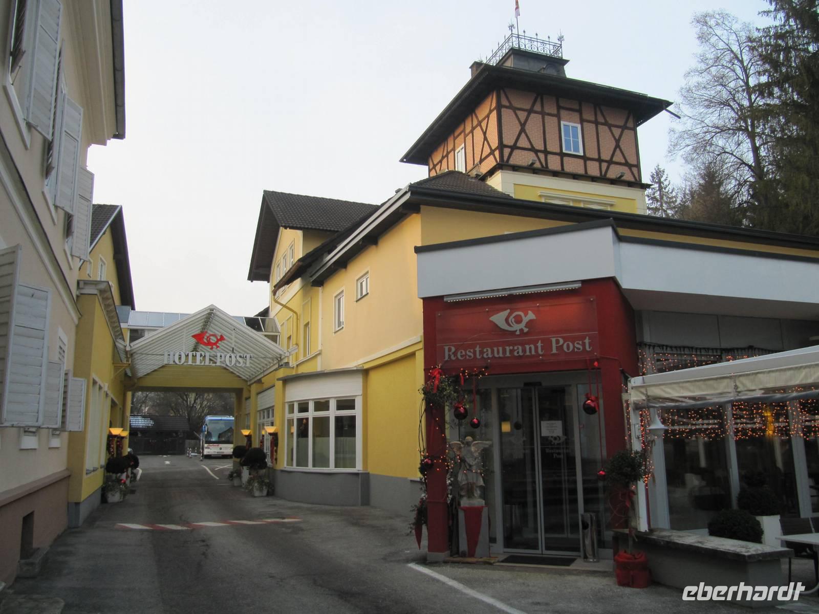 Von Dresden bis an den Wörthersee haben wir reichlich 800 km Fahrstrecke vor uns. Wir kommen prima voran, und so erreichen wir den mondänen Ort Velden am Wörthersee bereits gegen 17.00 Uhr. Die Zeit bis zum Abendessen können wir noch gut nutzen und zum „Veldener Advent" gehen, denn heute ist er den letzten Tag geöffnet. Alles ist so herrlich beleuchtet, und die vielen Besucher treffen sich gemütlich beim Glühwein. Im Hotel „Post" werden wir anschließend ganz herzlich begrüßt: mit einem Glas Sekt und einem leckeren Abendessen.