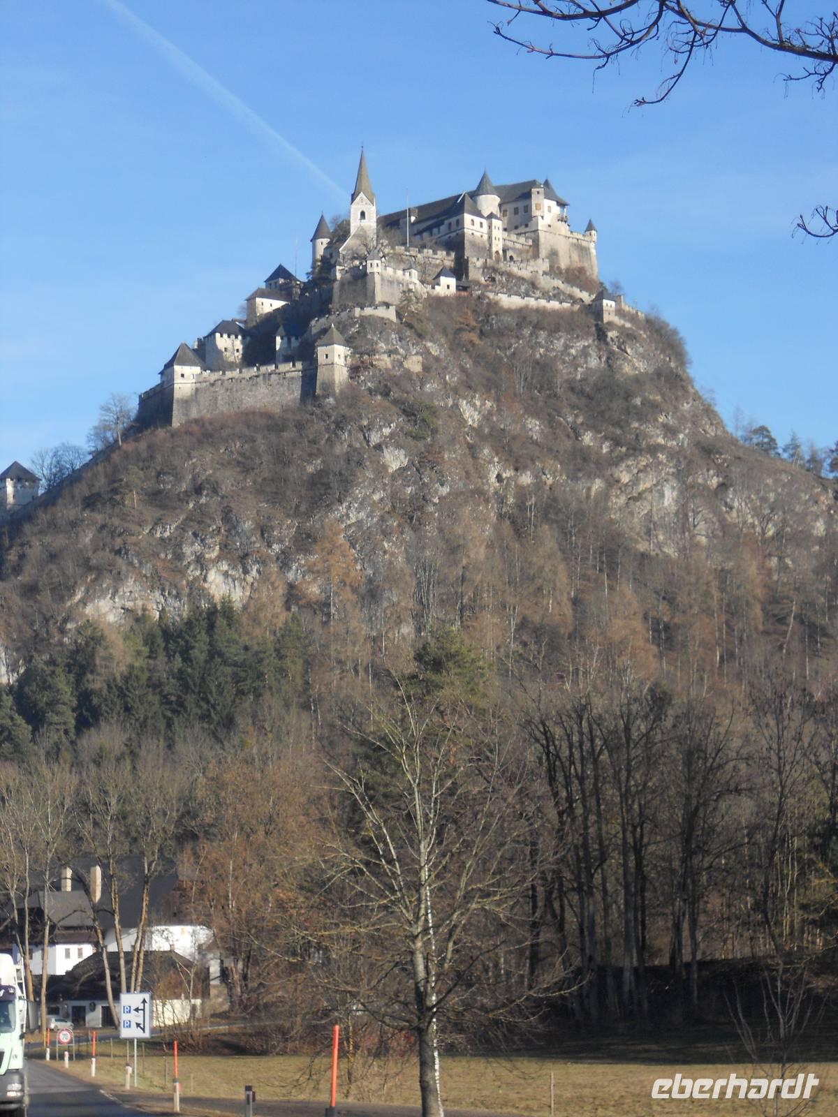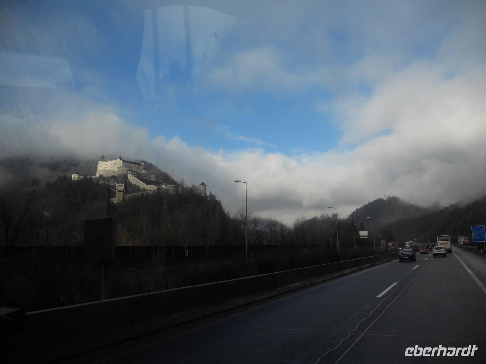 Nach sehr reichlichem Frühstück starten wir unseren ersten Ausflug um 9 Uhr, bei ganz viel Nebel. An dieses typische Phänomen müssen wir uns noch gewöhnen müssen. Doch schon bald klart es richtig gut auf, bleibt aber kalt. Wir fahren durch das Gurktal bis zum gleichnamigen Ort Gurk - warum auch immer das „e" am Ende fehlt, kann uns niemand überzeugend erklären. Aber ein Dom von überraschender Größe erwartet uns, mit prächtiger Innenausstattung. Vor allem der riesige Hauptaltar, mit Figuren und viel viel Gold....das dazugehörige Fastentuch, mit welchem der Altar von Aschermittwoch bis Ostersonntag verhüllt wird, ist das größte und älteste seiner Art in ganz Österreichs: es ist 80 qm groß und über 550 Jahre alt! Ein meisterlich bemaltes Textil, das wir regelrecht bestaunen. Die anschließende Domführung mit Krypta beenden wir gern im kleinen Dom-Laden: hier ist es nicht nur schön warm, hier gibt es auch den bekömmlichen „Gurktaler Alpenkräuter" zur Verkostung und auch zu Kaufen. Ein erstes gutes Reise-Mitbringsel aus Kärnten! Auf dem Heimweg Richtung Klagenfurt besuchen wir noch die bekannte Burg Hochosterwitz. Die Burganlage wurde auf einem ca. 150 m hohen Berg festungsartig errichtet. Wir machen eine schöne Fotopause am Fuße des Berges, dazu gibt es noch Mittag und einen heißen Glühwein. In der Landeshauptstadt Klagenfurt interessiert uns dann vorrangig der Weihnachtsmarkt. Er findet auf dem Neuen Markt und am Domplatz statt. Auch hier gibt es natürlich Glühwein und viele Naschereien. Und den gefürchteten Lindwurm, der von einem tapferen Kärntner Bauern besiegt wurde, welcher fortan „Herkules" genannt wurde. Das spannende für uns: der Künstler der Herkulesfigur war Michael Hönel, ein Sachse, was wieder beweist: „Die Sachsen sind doch überall"!