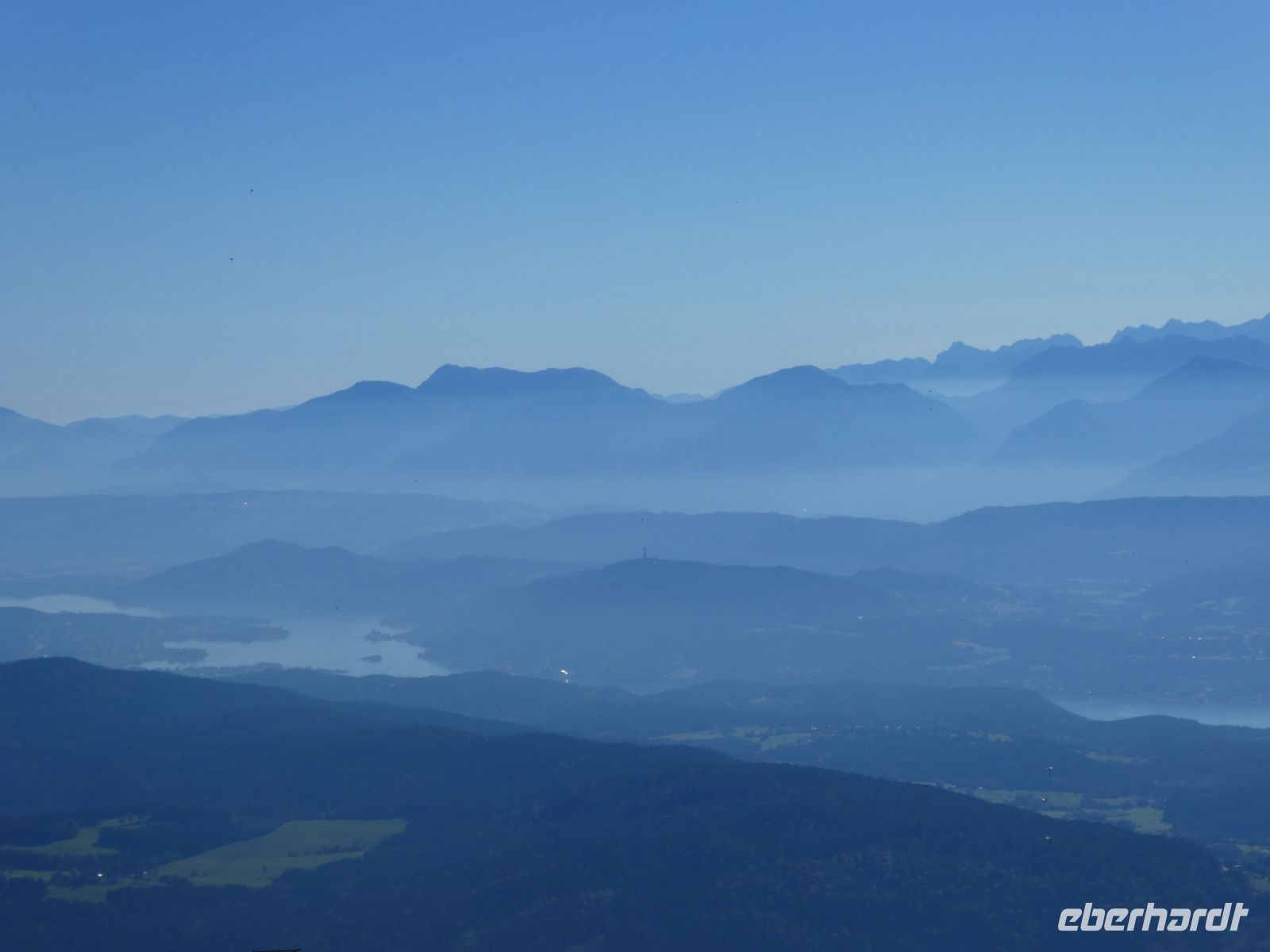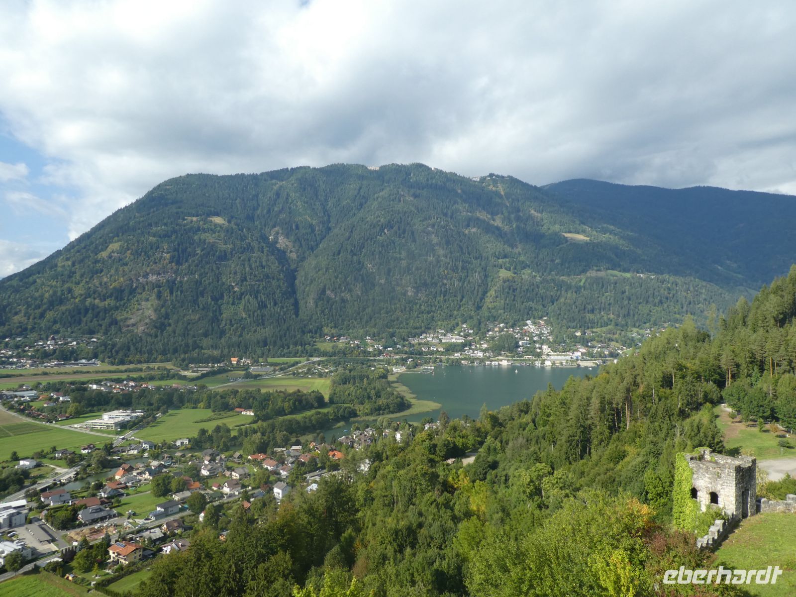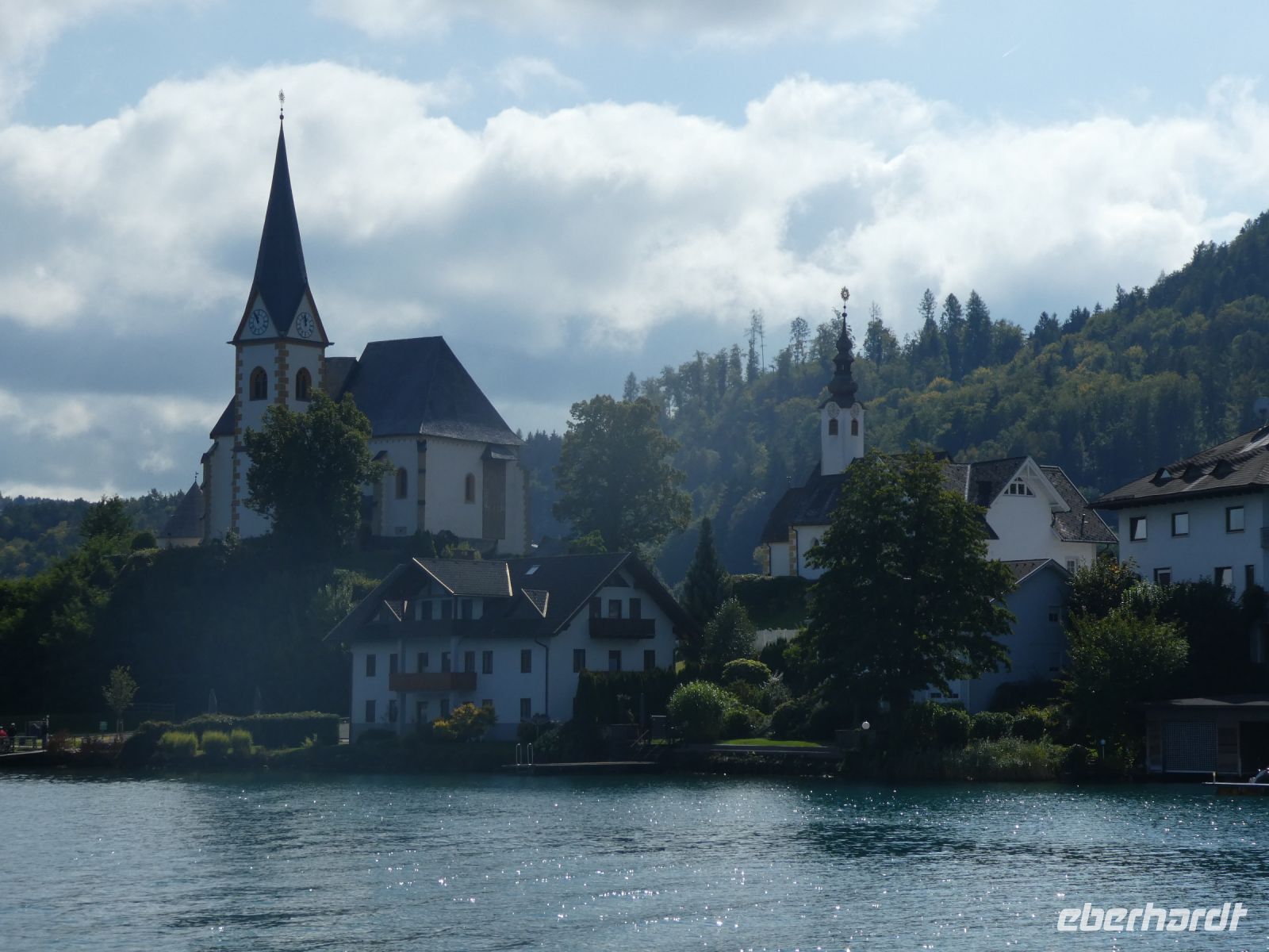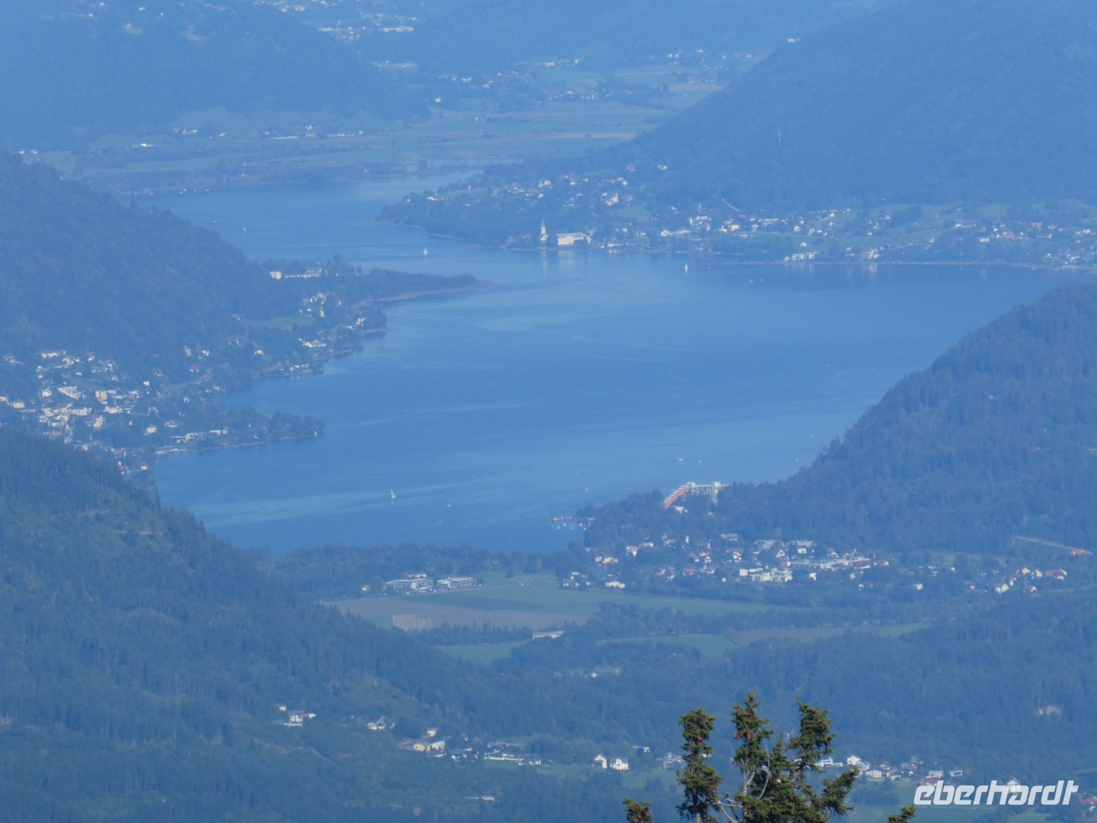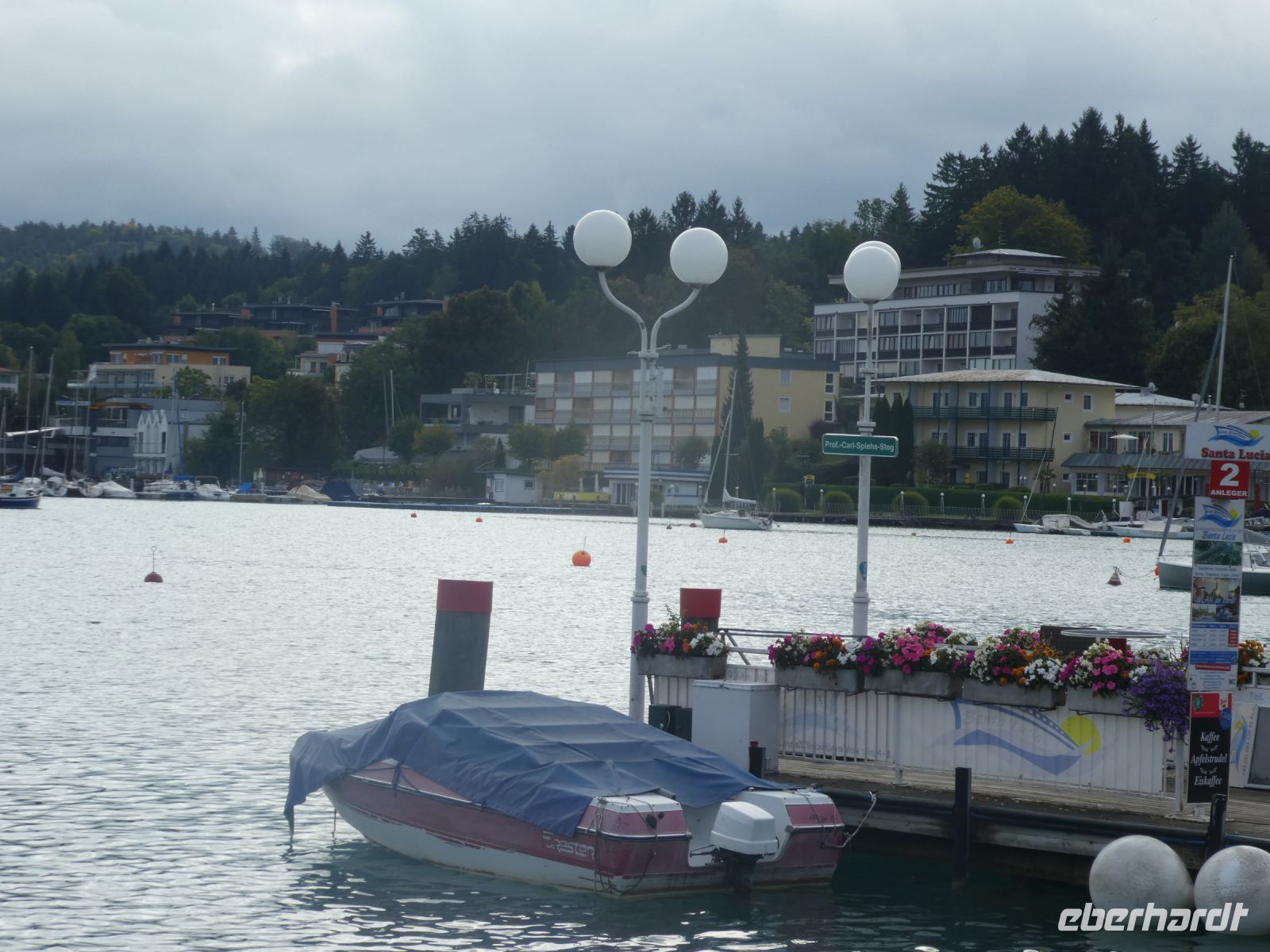 Ein Blick aus dem Fenster verhieß schönes Wetter. Also auf zum Wörthersee. Über die Süduferstraße erreichten wir den wohl bekanntesten Ort Velden. Wir hatten noch Zeit für einen Bummel entlang des Sees und für die ersten Fotos vom Hotel am Wörthersee. Bekannt wurde es durch den Film mit Roy Black "Ein Schloss am Wörthersee". Von weitem sahen wir schon die Santa Lucia mit der wir unsere Rundfahrt unternahmen. Der Kapitän persönlich gab Kommentare zur Entstehung des Wörthersees und erzählte die eine oder andere Geschichte über die Bewohner am Wörthersee. In Maria Wörth legte das Schiff an, um die Pfarrkirche Maria Wöhrt und die Winterkirche zu besichtigen. Zurück in Velden schaute ich noch einmal in die Webcam der Gerlitzen und die Sicht gleich null. Deshalb beschlossen wir auf der Burg Landskron den Affenberg zu besuchen. Dort leben in einem großen Gehege 170 Japanmakaken wie in Freiheit. Während der Führung erfuhren wir interessantes über das Leben der Tiere und ihre Gewohnheiten. Wie klug die Tiere sind wurde uns anhand verschiedener Tricks gezeigt. So konnten wir die Affen auch beim Schwimmen beobachten. Sehenswert war auch die Ruine der Burg Landskron. Nach einem kurzen Aufstieg erwartete uns ein schöner Blick auf den Ossiacher See, nach Villach und die umliegende Bergwelt.