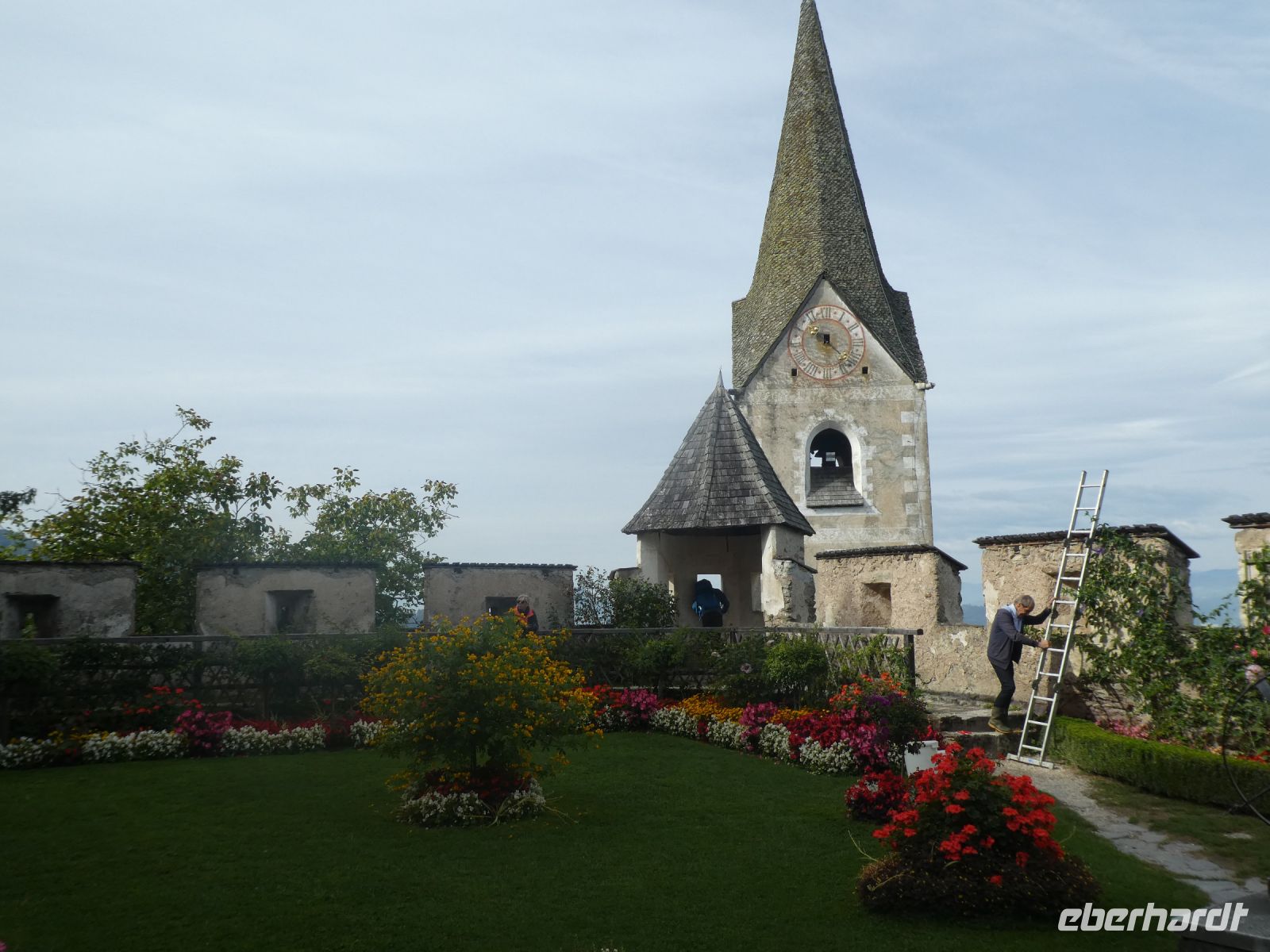 Eine der schönsten Burgen von Kärnten stand auf dem Programm, die Märchenburg Hochosterwitz. Sie ist seit 1576 noch im Privatbesitz der Familie Khevenhüller. Schon von weitem war die romantische Burg zu sehen. Es gibt zwei Möglichkeiten die Burg zu erklimmen entweder bequem mit dem Schrägaufzug oder zu Fuß. Dabei liefen wir durch die 14 Burgtore, die zum Schutz der Burg errichtet wurden. Dadurch ist die Burg nie erobert wurden. Nach jedem Tor erwartete uns ein anderer schöner Blick in die Umgebung. Vorbei an der Kapelle mit dem Rosengarten erreichten wir die Hochburg. Dort besichtigten wir die Ahnengalerie und die Waffenkammer. Nach dem Besuch der Burg fuhren wir nach Klagenfurt in die Hauptstadt Kärntens. Wir unternahmen einen Rundgang durch die Stadt und besichtigten im Landhaus den Wappensaal. Neben verschiedenen Wandfresken sind 665 Wappen der verschiedenen Kärntner Landstände zu sehen. Nebenan befindet sich der Plenarsaal des Kärntner Landtages, der ebenfalls mit Fresken ausgestattet ist. Durch die Fußgängerzone liefen wir vorbei am Wörthersee Mandl, der der Sage nach für die Entstehung des Wörthersees verantwortlich ist, zum Neuen Platz. Dort befindet sich der Lindwurm das Wahrzeichen der Stadt Klagenfurt. Ein Besuch im Dom Hll. Petrus und Paulus durfte auch nicht fehlen. Anschließend hatten wir Freizeit zum Bummeln, Einkaufen oder zum Einkehren. Ein weiterer Höhepunkt stand auf dem Programm der Besuch des Pyramidenkogel, der mit 100 m Höhe, höchste aus Holz erbaute Aussichtsturm weltweit. Die sportlichen erklommen ihn zu Fuß und die anderen Gäste nutzten den Fahrstuhl. Uns erwartete ein Rundumblick auf den Wörthersee, den Keutschacher See und die umliegende Berge. Einige mutige nutzten die Rutsche nach unten. Von
