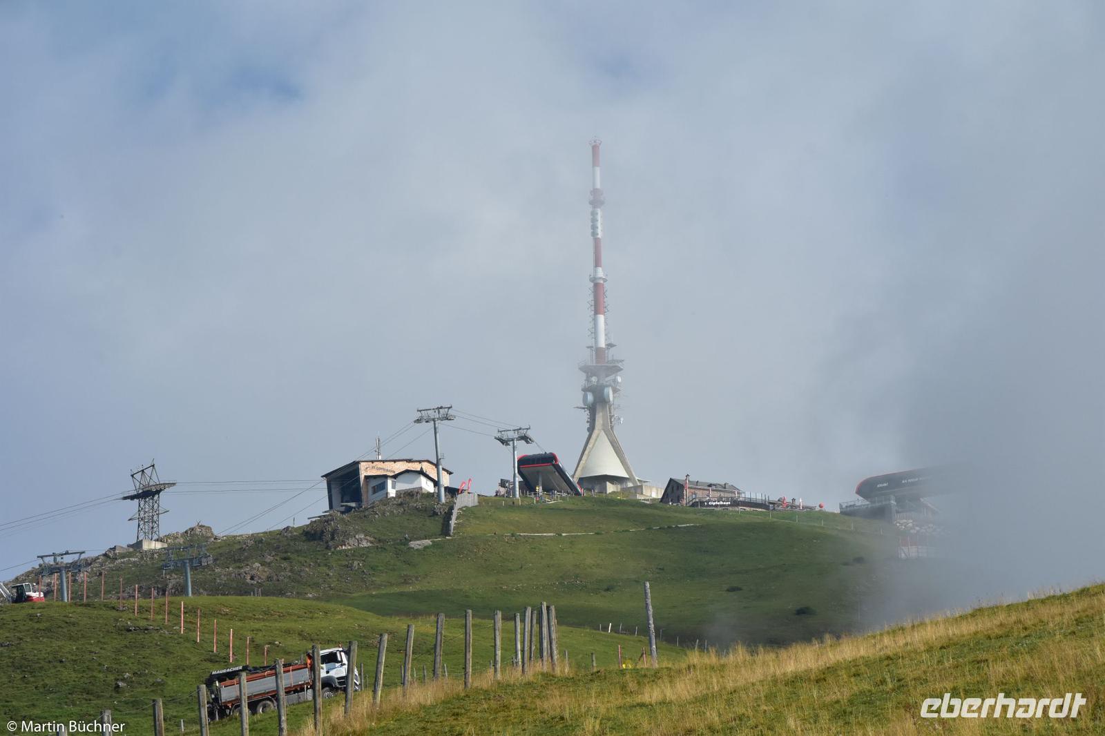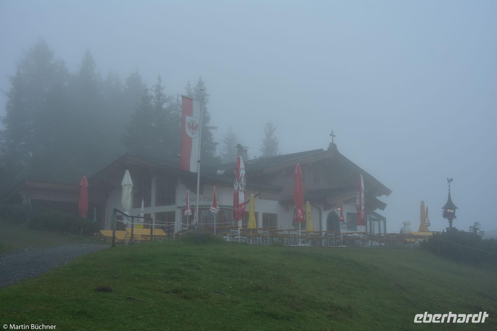 Leider ist die Sicht, bedingt durch dichten Nebel, sehr dürftig. Nach einer gemütlichen Einkehr ins bekannte Hahnenkamm-Stüberl kehren wir zurück ins Tal.