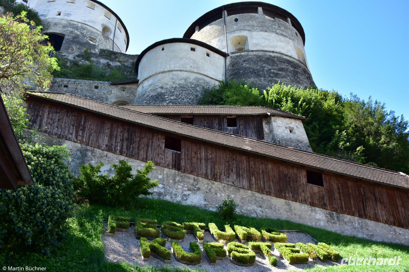 Zu Fuß wie in alten Zeiten oder bequem und gemütlich mit dem Panorama-Aufzug erreichen wir die Festung. Eine Vielzahl von Ausstellungen bieten sich dem Betrachter, von der Orgel, über Waffen, Geschichte Tirols und der Festung bis hin zur Folterkammer wird sehr viel geboten. Der Blick über die Stadt und das Inntal inklusive.